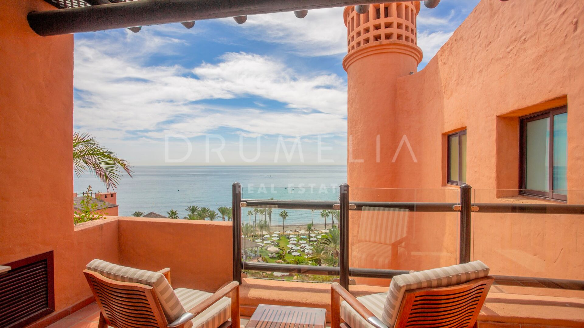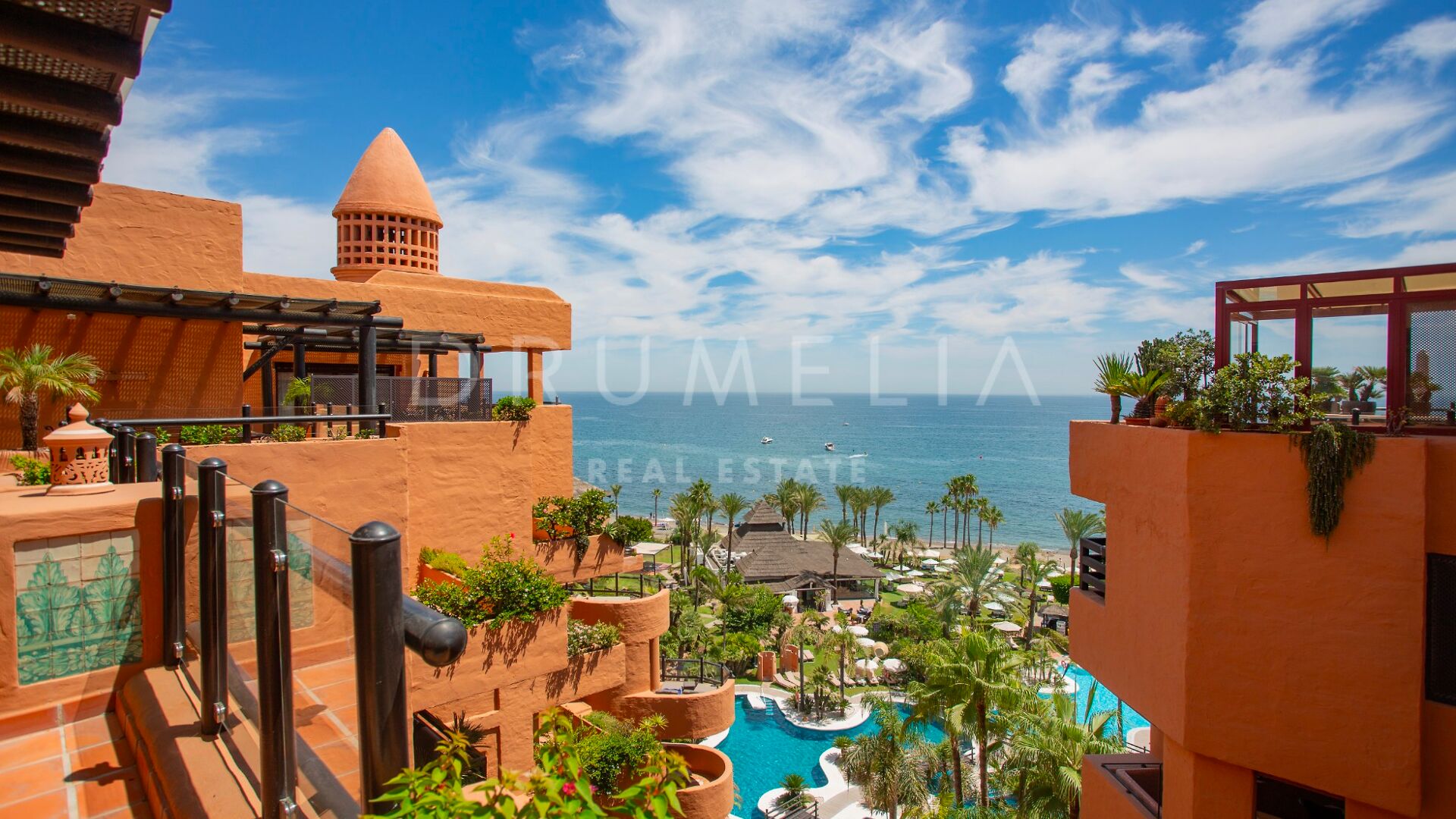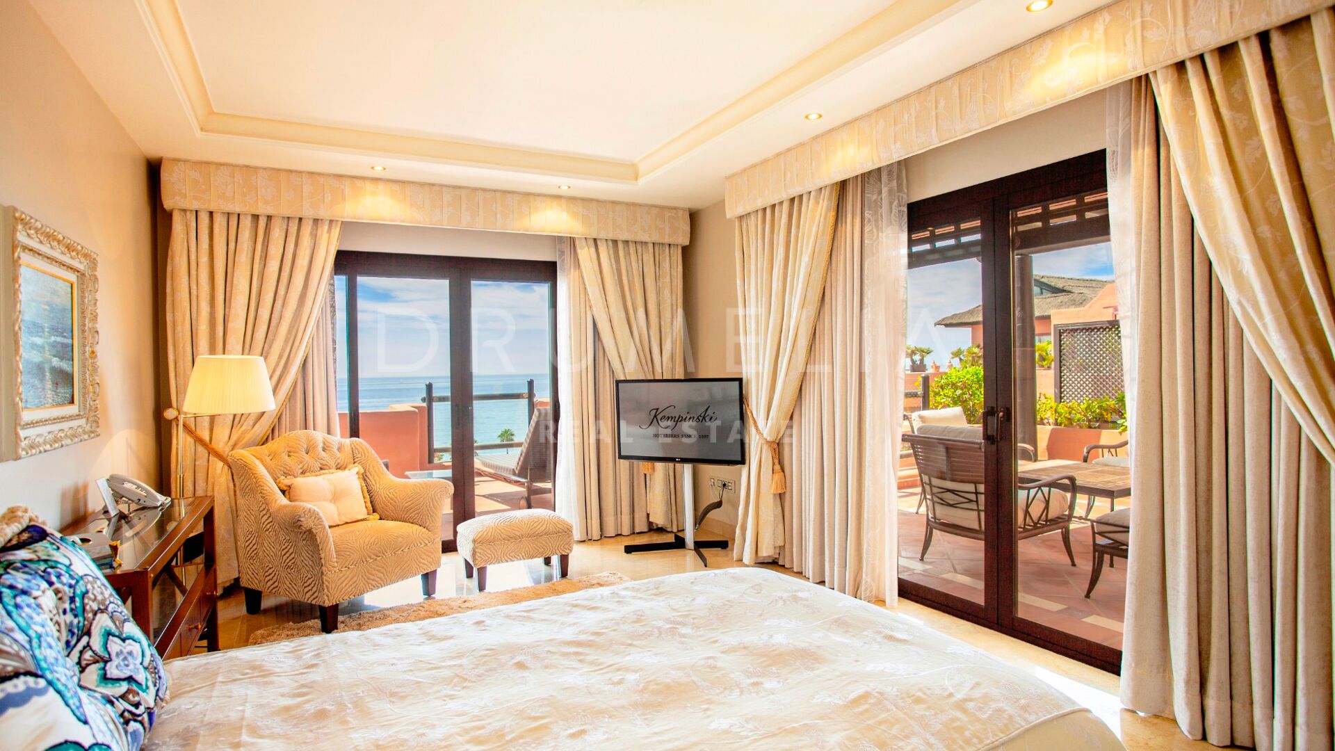 Discover unparalleled elegance and comfort in this extraordinary penthouse situated in the exclusive Kempinski Hotel Bahia, Estepona. This award-winning, five-star beachfront resort is enveloped in 45,000 square meters of lush subtropical gardens, offering first-class amenities including three swimming pools (one indoor and heated), a fitness centre, spa, beach club, and several gourmet restaurants and bars.