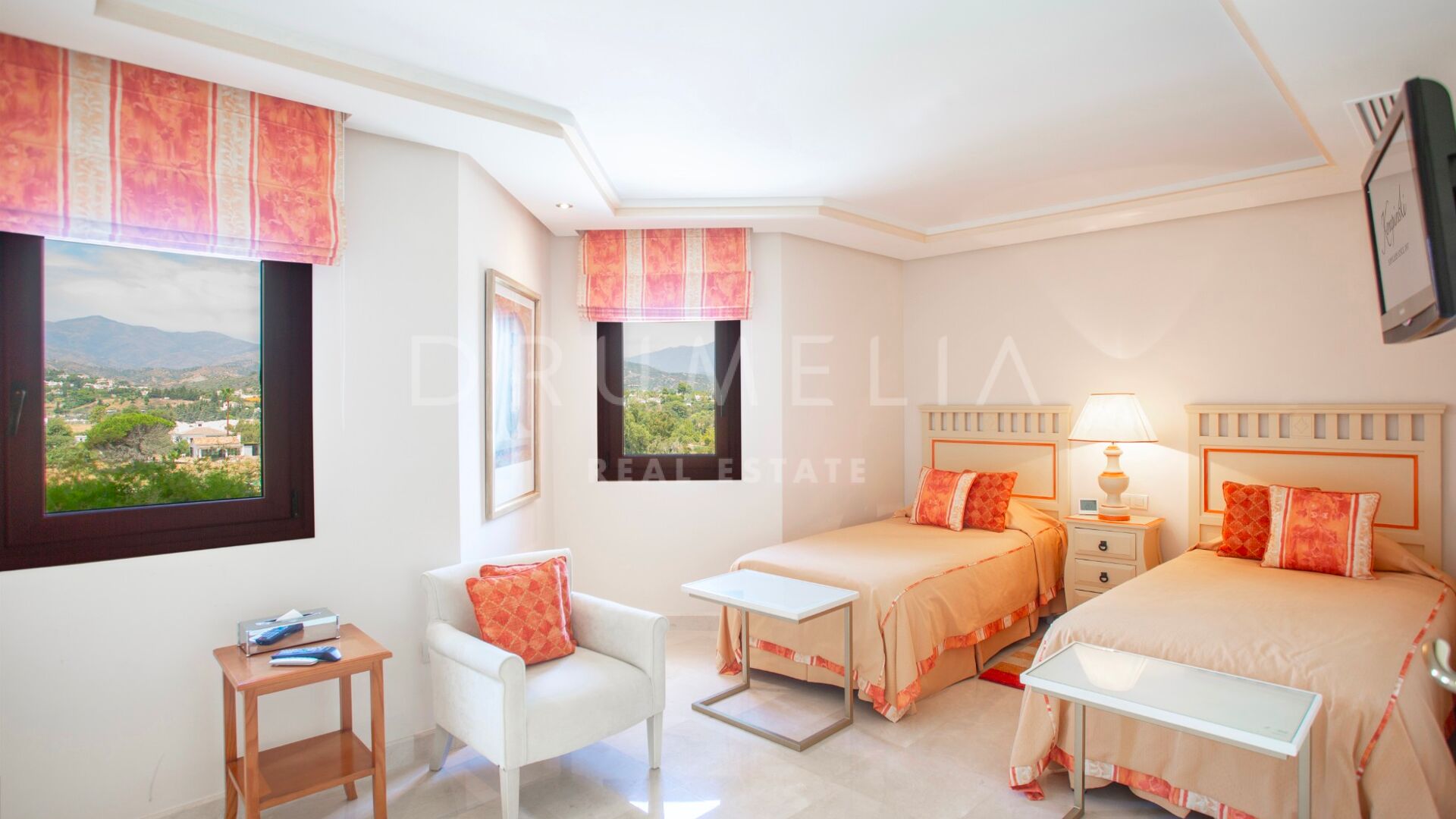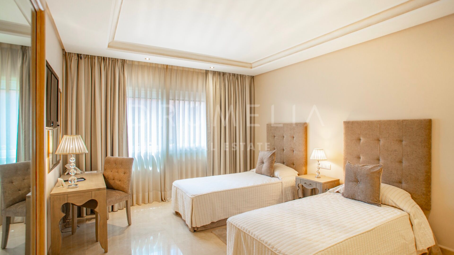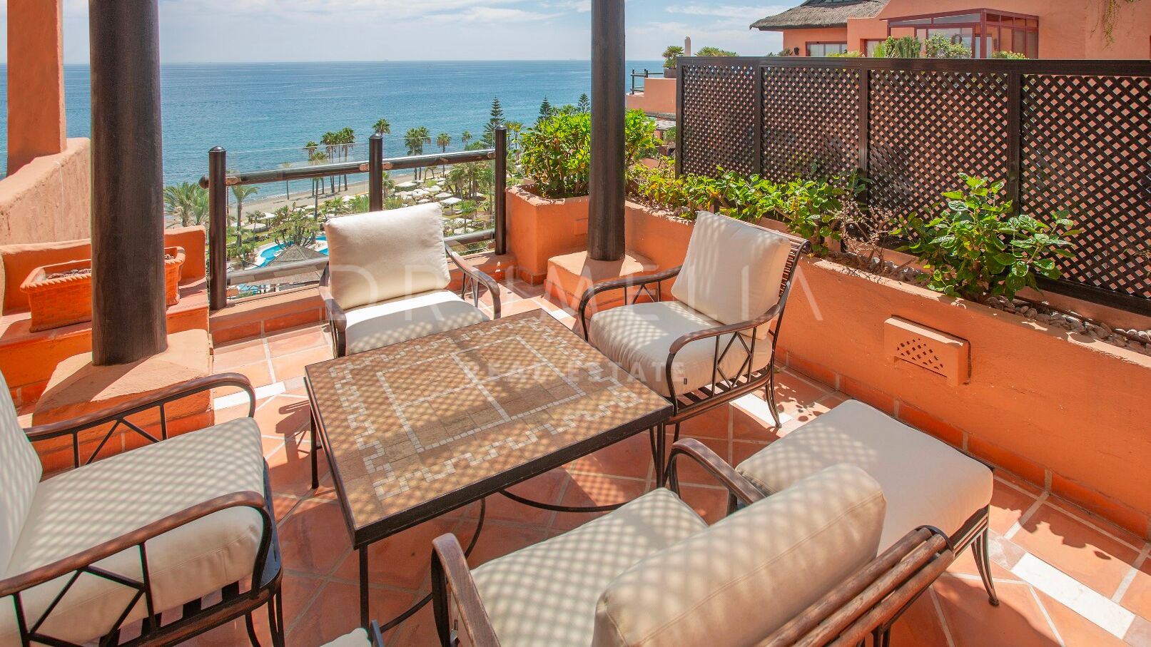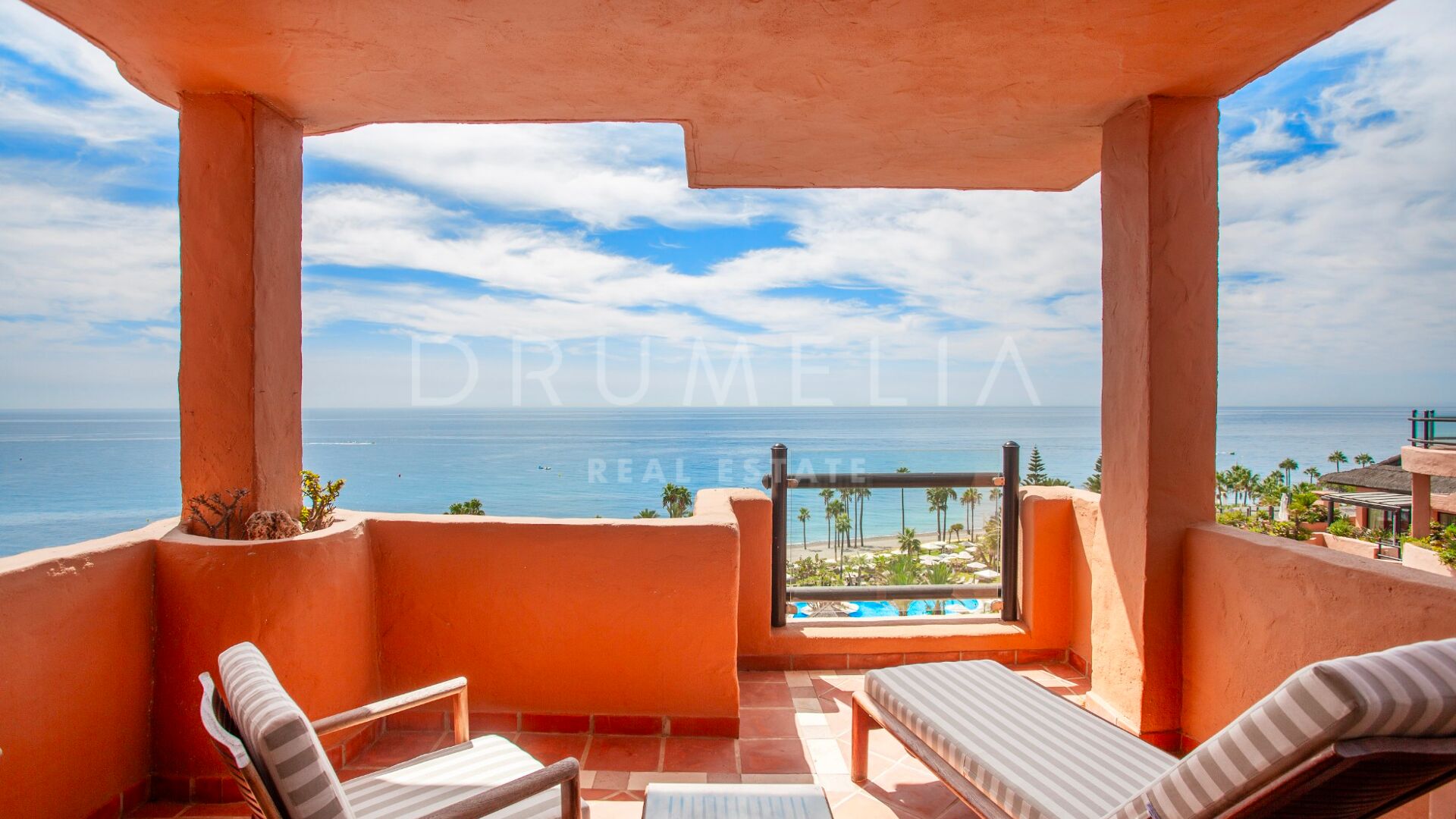 Discover unparalleled elegance and comfort in this extraordinary penthouse situated in the exclusive Kempinski Hotel Bahia, Estepona. This award-winning, five-star beachfront resort is enveloped in 45,000 square meters of lush subtropical gardens, offering first-class amenities including three swimming pools (one indoor and heated), a fitness centre, spa, beach club, and several gourmet restaurants and bars.