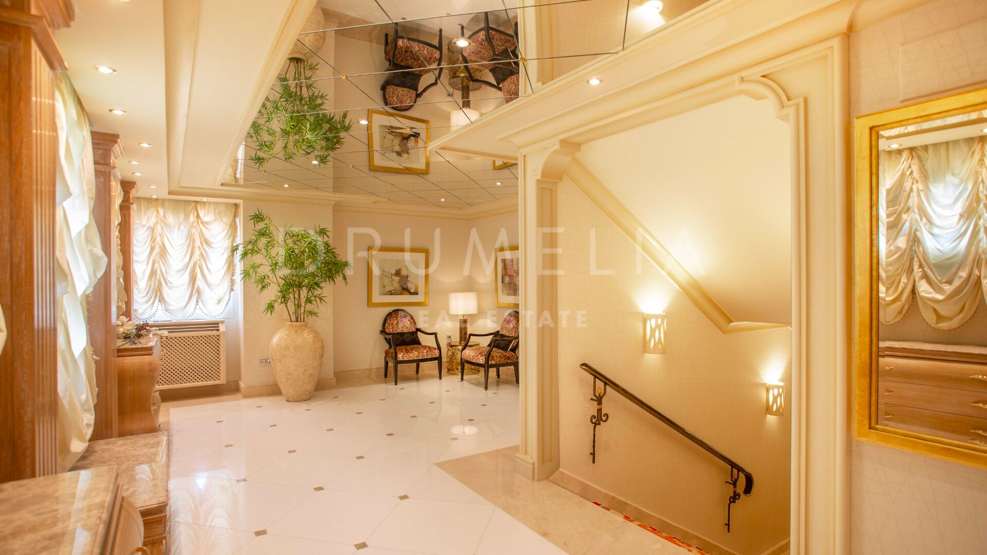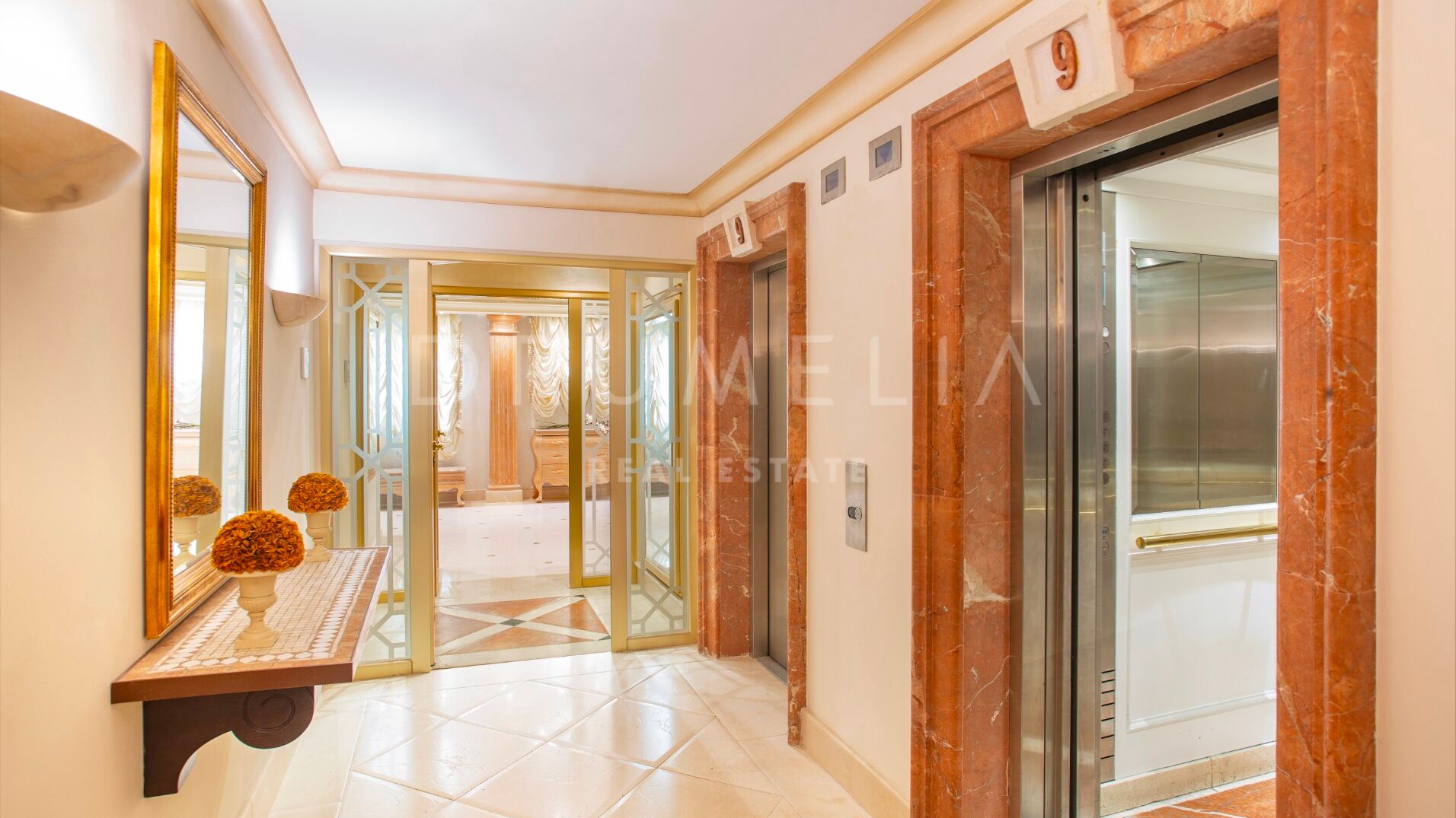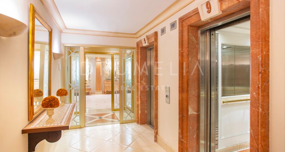 Located on the ninth floor, this expansive dwelling is among the most prestigious within the resort, featuring private lift access, an elegant entrance hall, and a grand living area that exudes opulence and splendor. Lavish décor, exquisite furnishings, and breathtaking sea views from the numerous windows enhance the vast living space, creating an awe-inspiring atmosphere of luxury and serenity.
