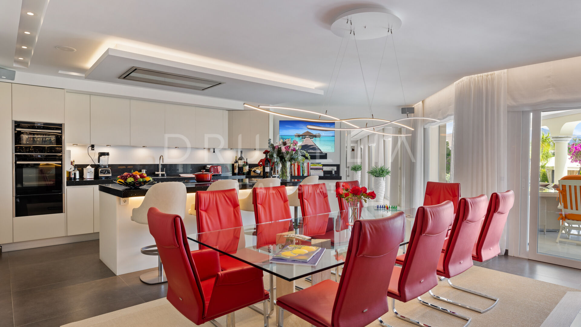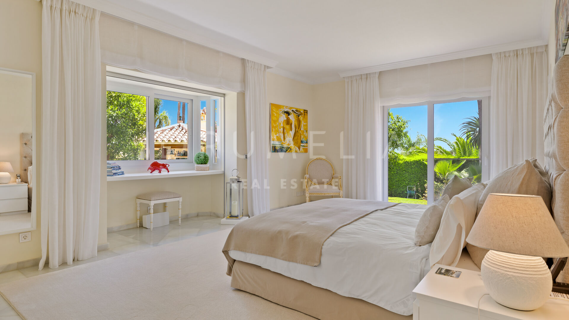 This wonderful home in Nueva Andalucia comes for sale in a good condition, with optional high-end furniture, Jacuzzi, satellite TV, double-glazing, fitted wardrobes, glass doors and many other features. It is equipped with an air-conditioning system, underfloor heating (partial), energy- efficient LED lights and alarm system. The elegant neutral colours scheme with bright accents creates a soothing and very stylish atmosphere.