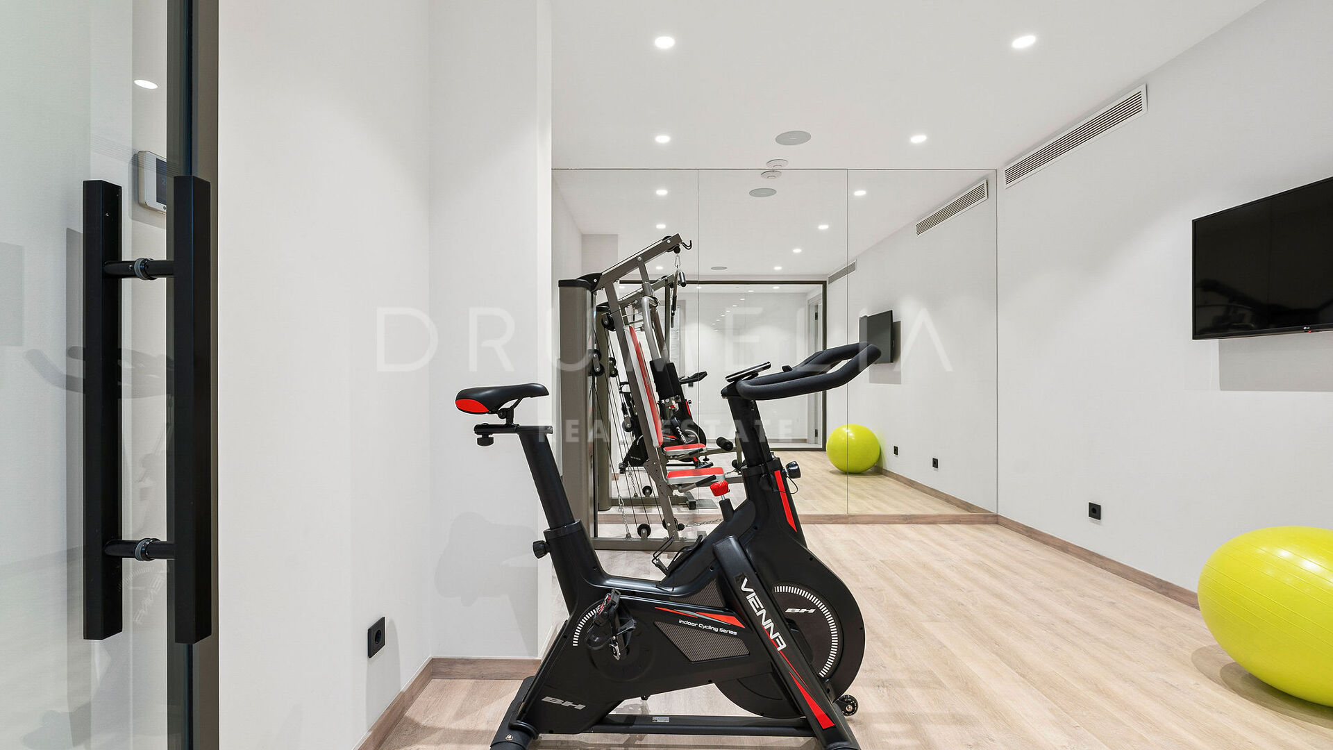 With a built area of 770 m² on a 1,000 m² plot, the villa faces south and enjoys spectacular views over the golf course and La Concha mountain. The contemporary design features clean lines, large windows, and high-quality materials. Inside, open spaces include an elegant living room, dining area, and a fully equipped minimalist kitchen. The property offers 4 bedroom suites, including a master suite with a private terrace. The lower level features an entertainment room, gym, and a glass-enclosed wine cellar.