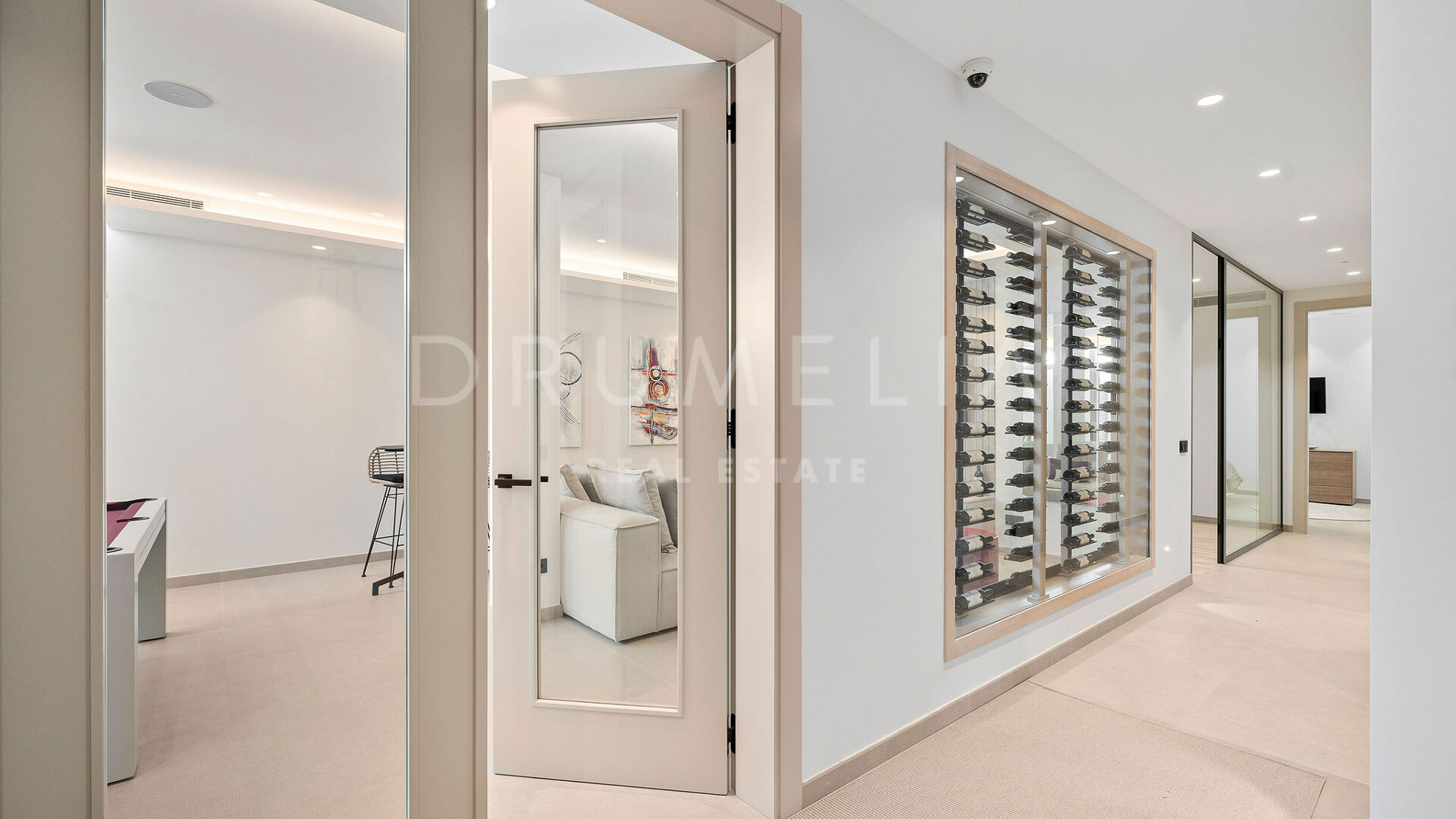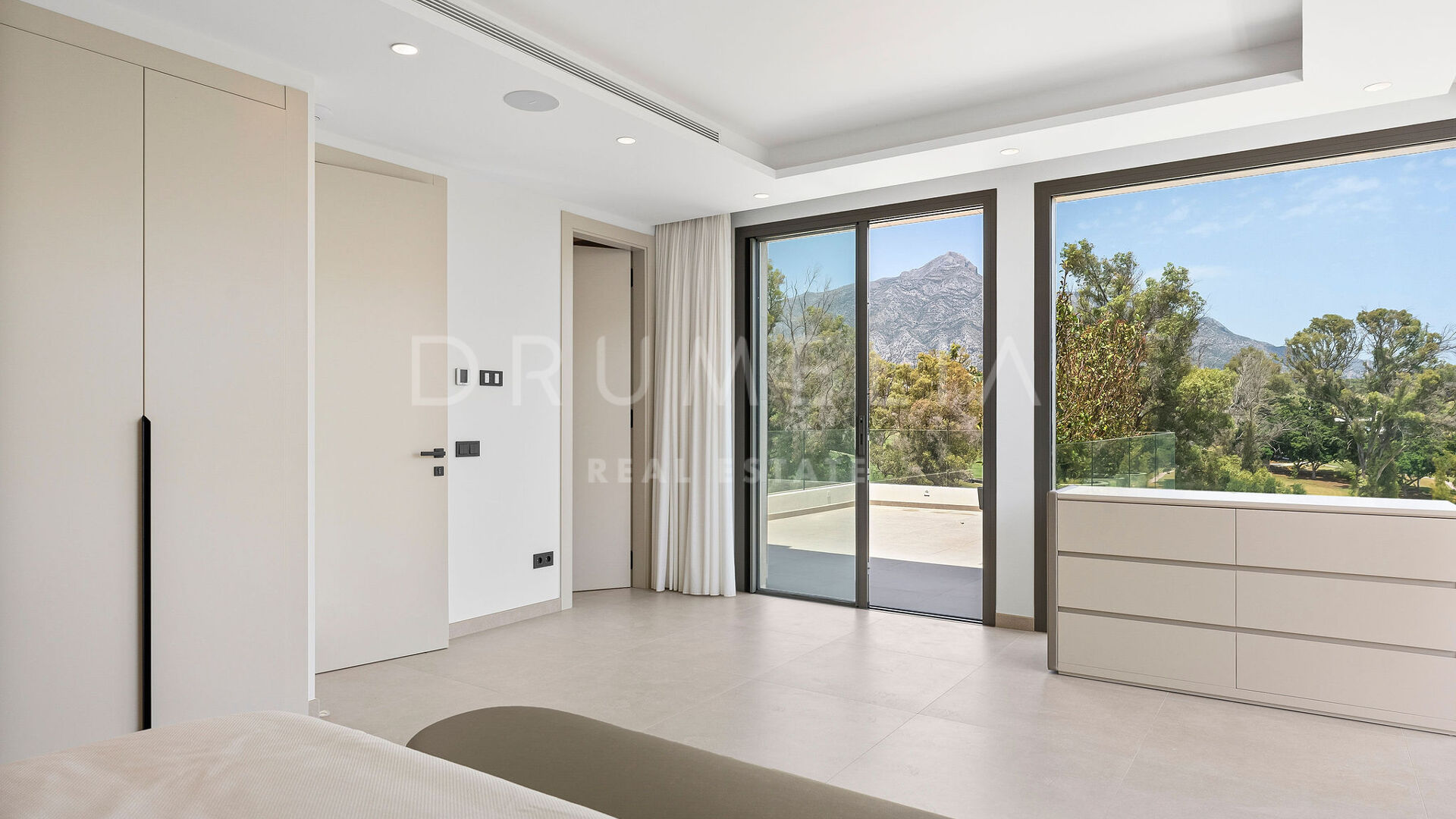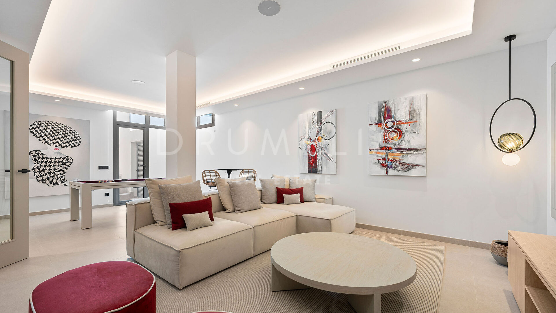 Outdoors, the villa provides large terraces, chill-out and dining areas surrounding an L-shaped swimming pool. It comes fully furnished by Marbella Furniture Gallery and equipped with home automation, underfloor heating, air conditioning, sound system, and alarm. A closed garage for two vehicles and a storage room complete this modern and elegant residence — an ideal home for those seeking contemporary sophistication in the heart of Marbella’s Golf Valley.
