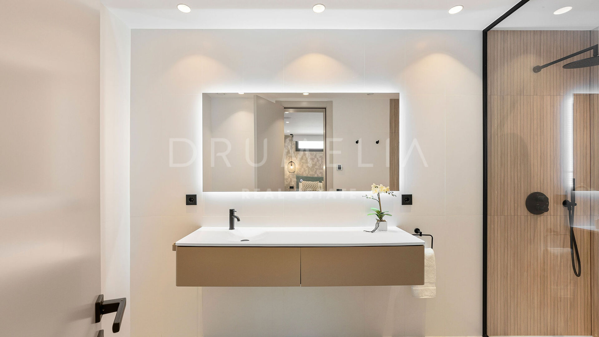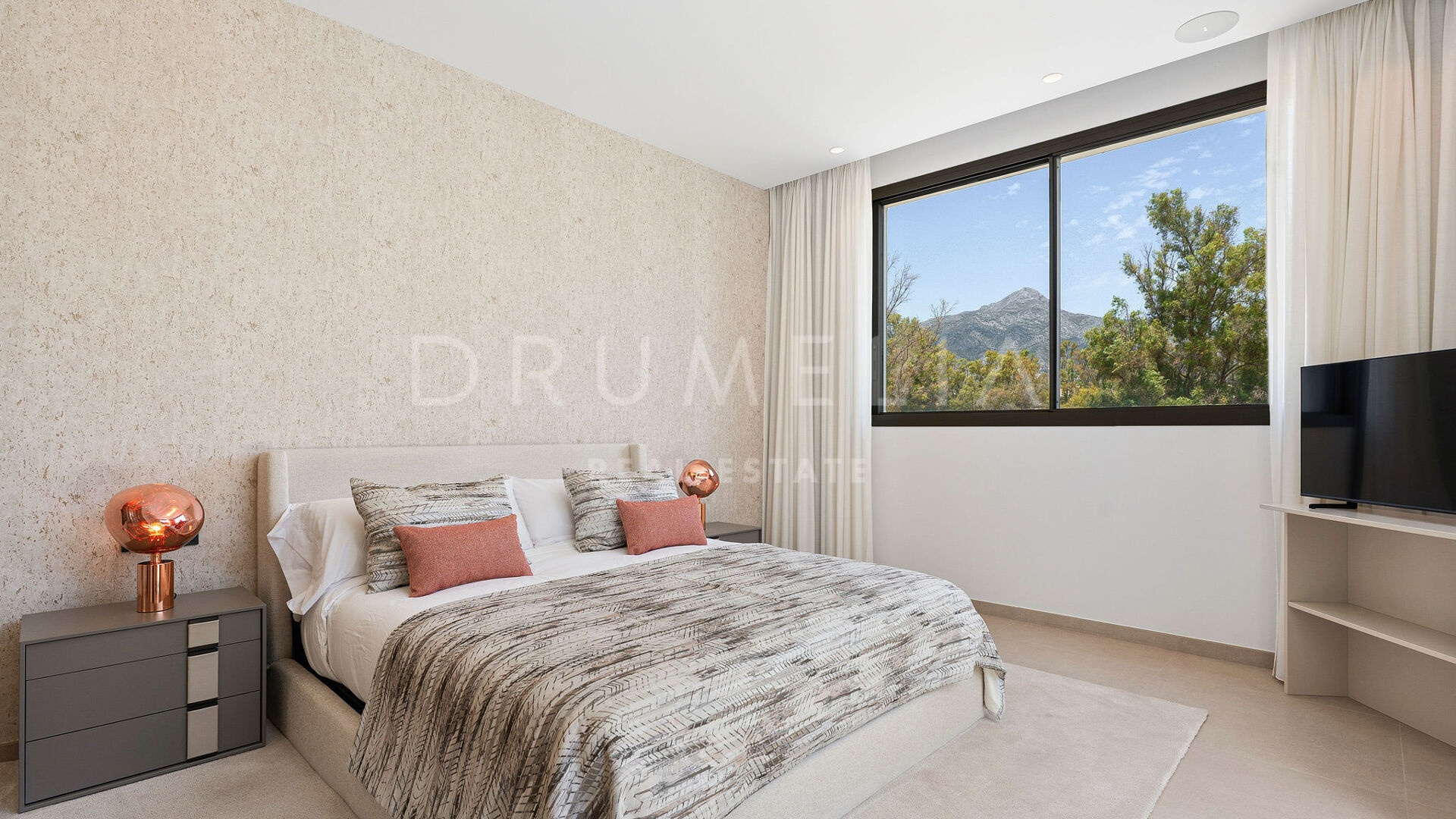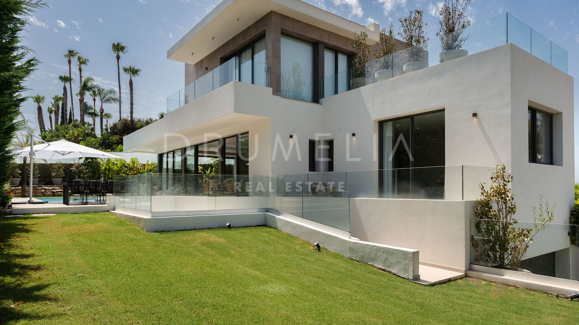 Outdoors, the villa provides large terraces, chill-out and dining areas surrounding an L-shaped swimming pool. It comes fully furnished by Marbella Furniture Gallery and equipped with home automation, underfloor heating, air conditioning, sound system, and alarm. A closed garage for two vehicles and a storage room complete this modern and elegant residence — an ideal home for those seeking contemporary sophistication in the heart of Marbella’s Golf Valley.