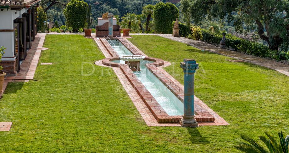 The meticulously landscaped gardens feature fruit trees, fountains, ponds, sculptures, and a charming 360-degree view hobby house, perfect for painting or relaxation. This estate is a rare blend of luxury, natural beauty, and serene privacy, ideal for those seeking an upscale retreat close to Marbella.