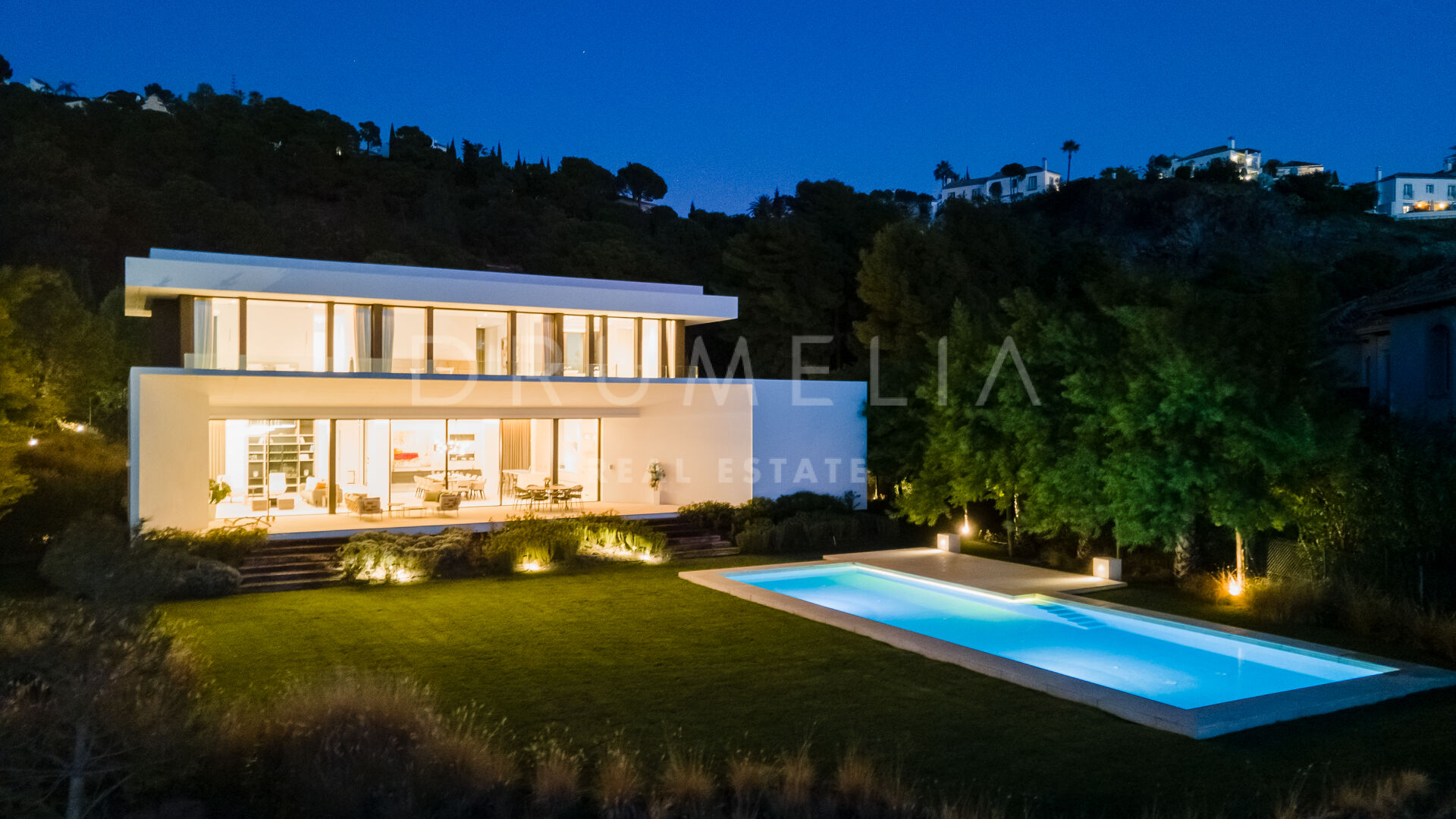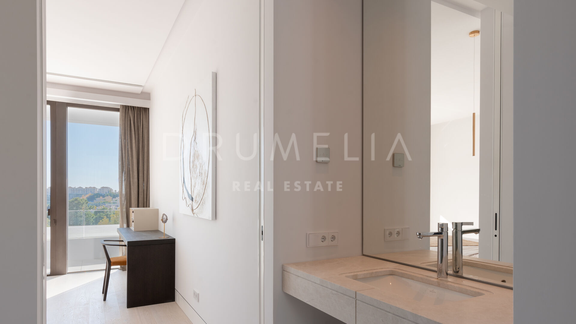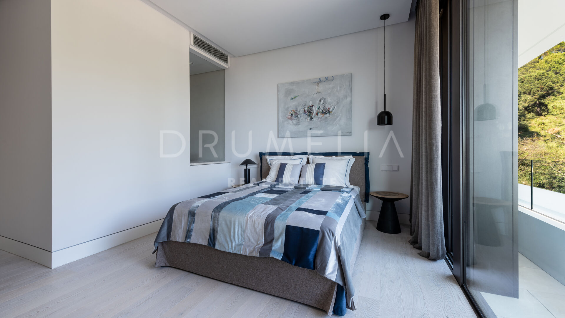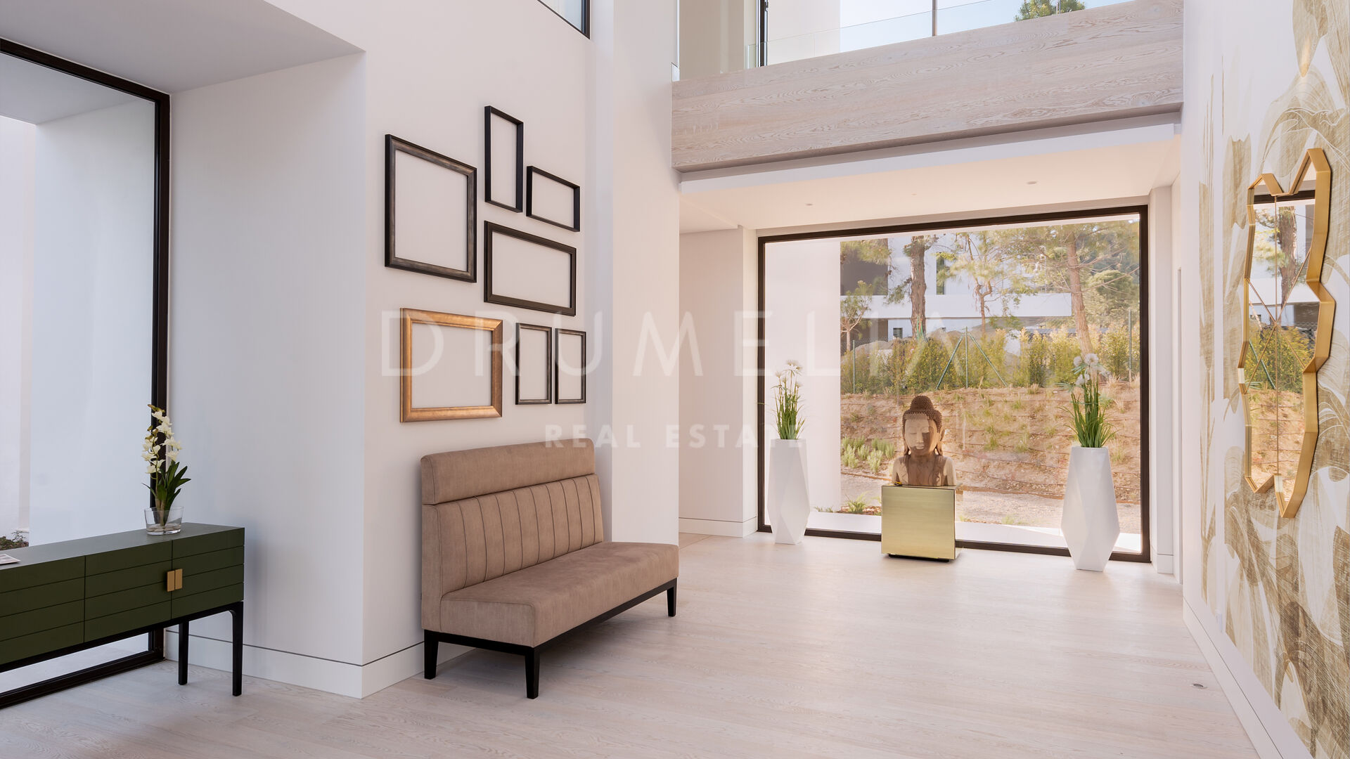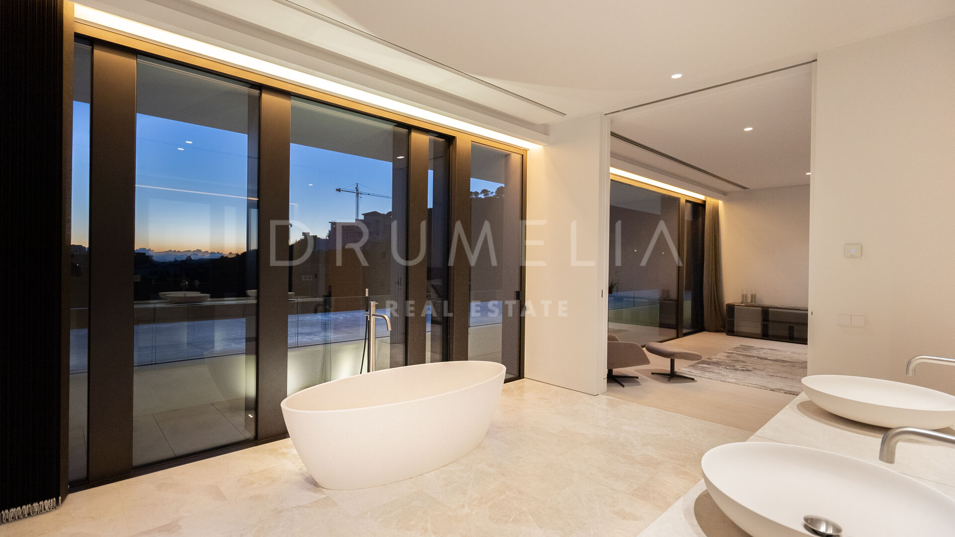 Recently built, gated with a checkpoint entrance La Reserva de Alcuzcuz is a very secure, green and spectacular residential development a short drive from the golf courses, sandy beaches, the mecca of glamour, chic parties, luxury brands and celebrities Puerto Banus and the resort towns of Marbella and San Pedro. Due to its elevated position, it boasts breath-taking unobstructed panoramic sea views towards Gibraltar and the African Coast, and to the picturesque Andalusian hills. It is quite unique, created in accordance with the criteria of sustainability, ecology and bioclimatic architecture (low operating costs through generously sized solar system, external and internal lighting with the latest energy saving technology, efficient thermal insulation with organic materials, automatic ventilation with temperature compared internally and externally in heating and cooling mode, the garden irrigation of the development working of its almost autonomous water supply).