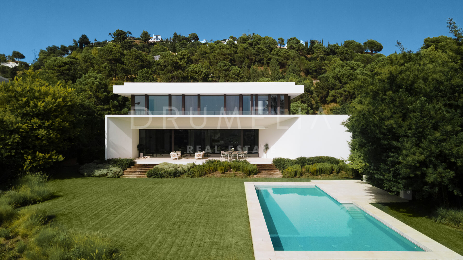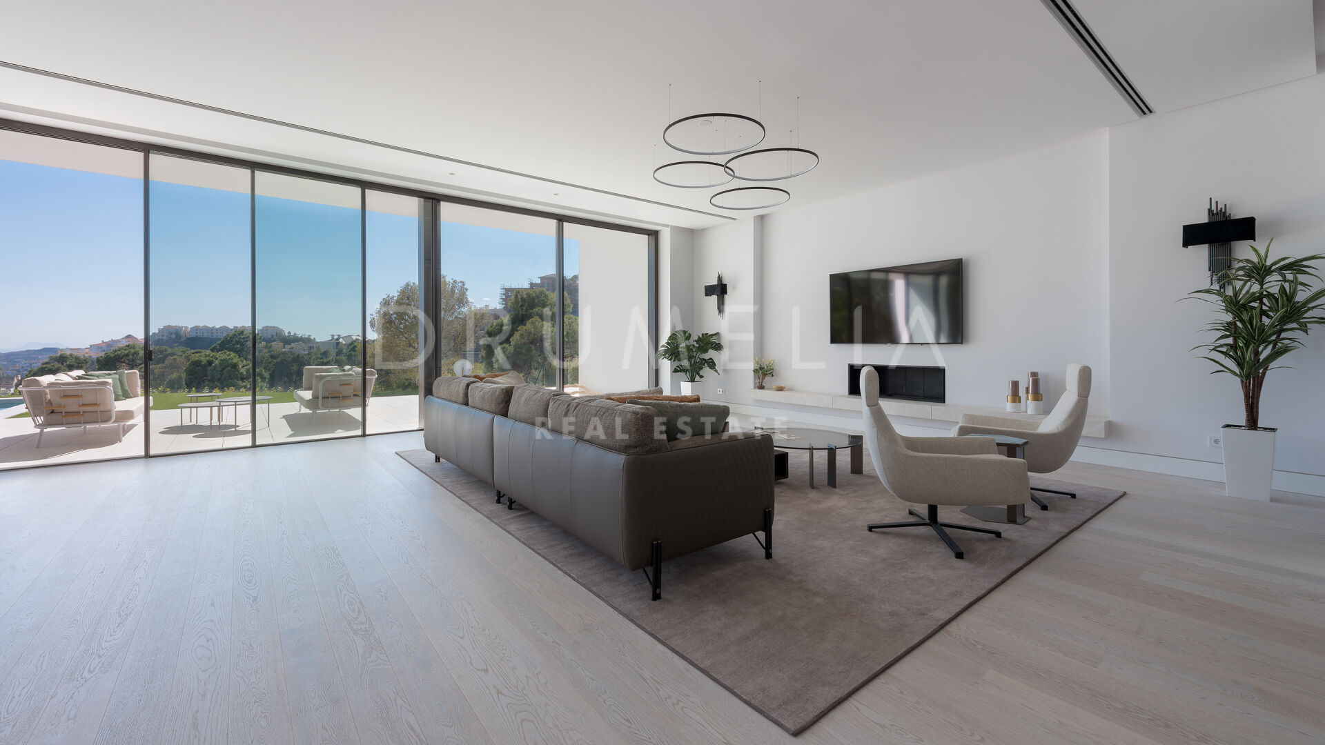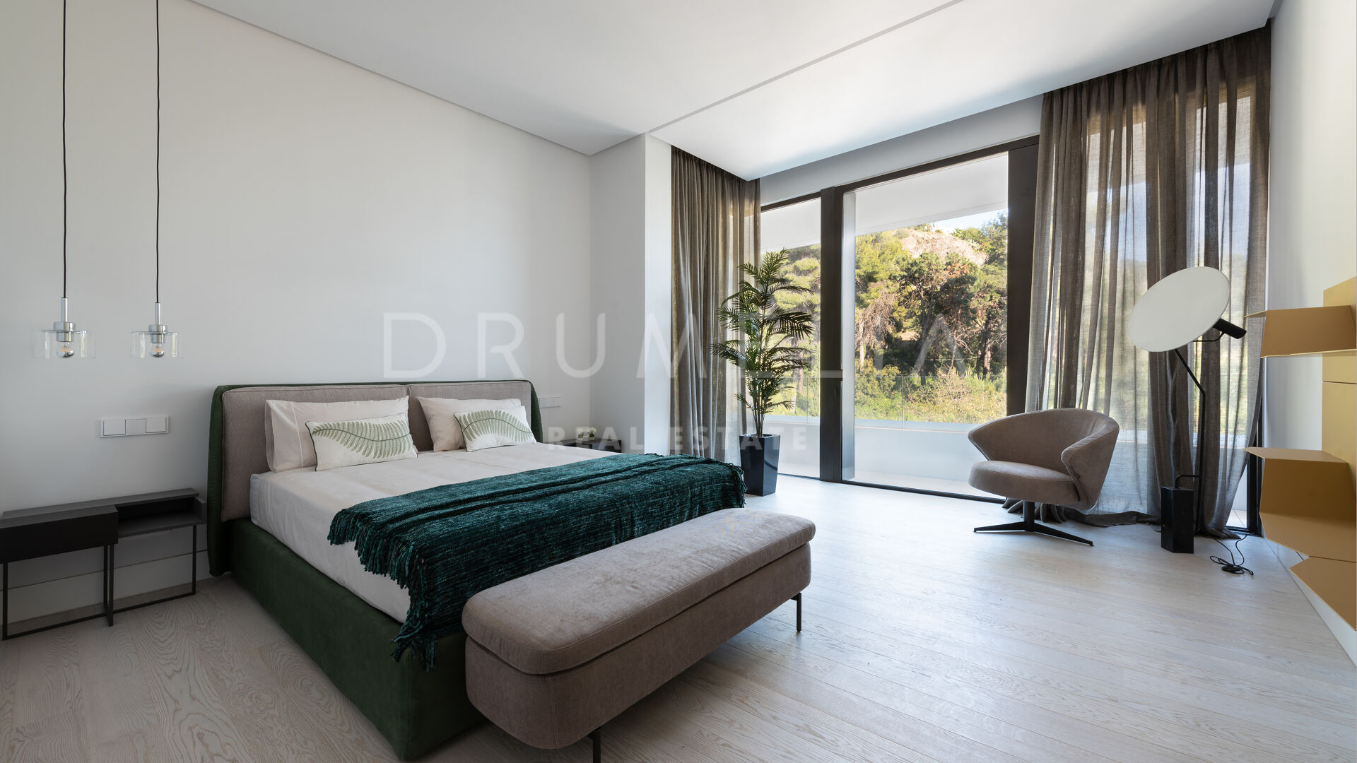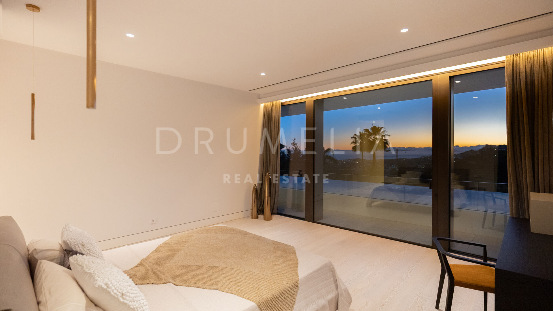 Recently built, gated with a checkpoint entrance La Reserva de Alcuzcuz is a very secure, green and spectacular residential development a short drive from the golf courses, sandy beaches, the mecca of glamour, chic parties, luxury brands and celebrities Puerto Banus and the resort towns of Marbella and San Pedro. Due to its elevated position, it boasts breath-taking unobstructed panoramic sea views towards Gibraltar and the African Coast, and to the picturesque Andalusian hills. It is quite unique, created in accordance with the criteria of sustainability, ecology and bioclimatic architecture (low operating costs through generously sized solar system, external and internal lighting with the latest energy saving technology, efficient thermal insulation with organic materials, automatic ventilation with temperature compared internally and externally in heating and cooling mode, the garden irrigation of the development working of its almost autonomous water supply).