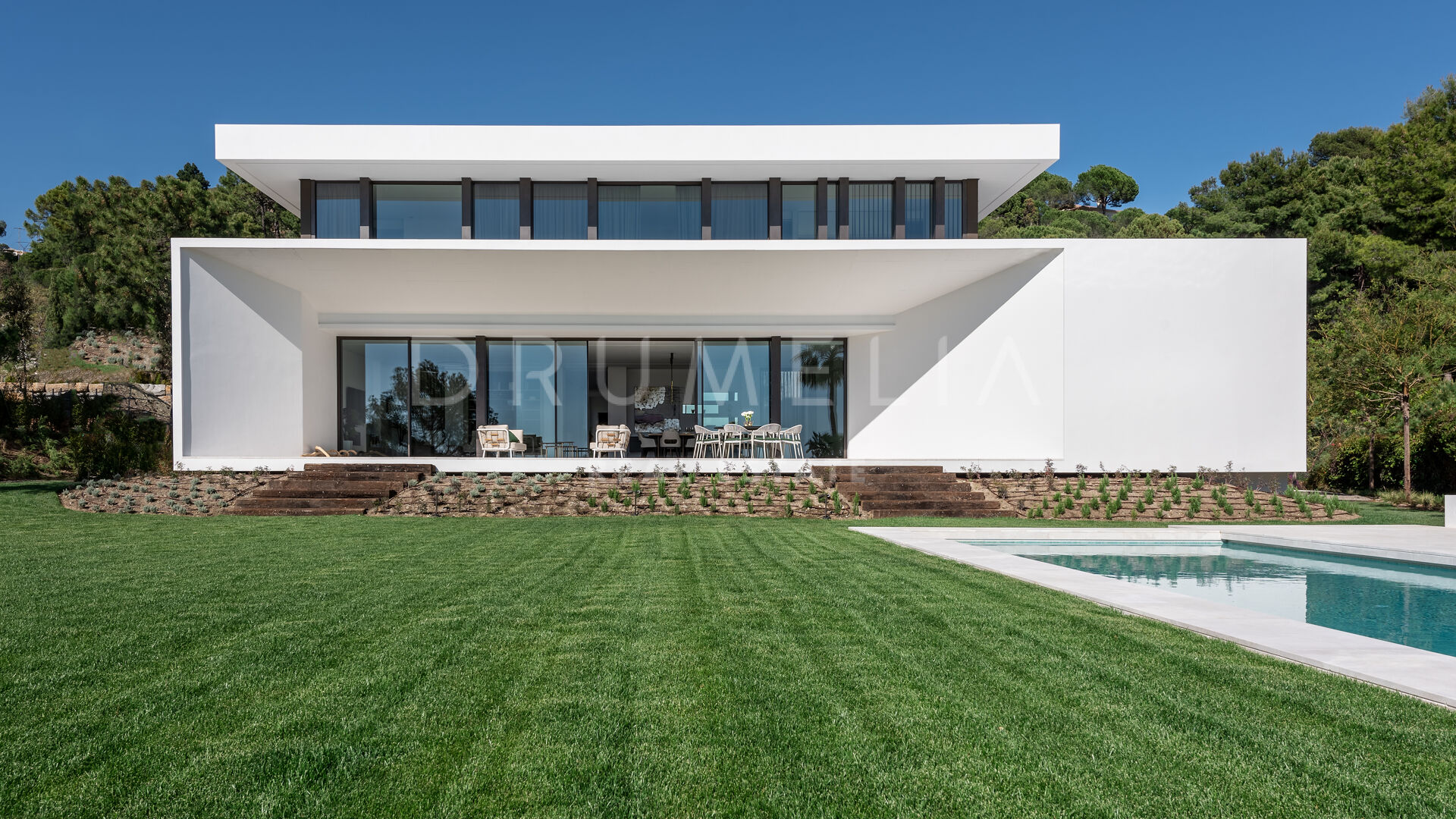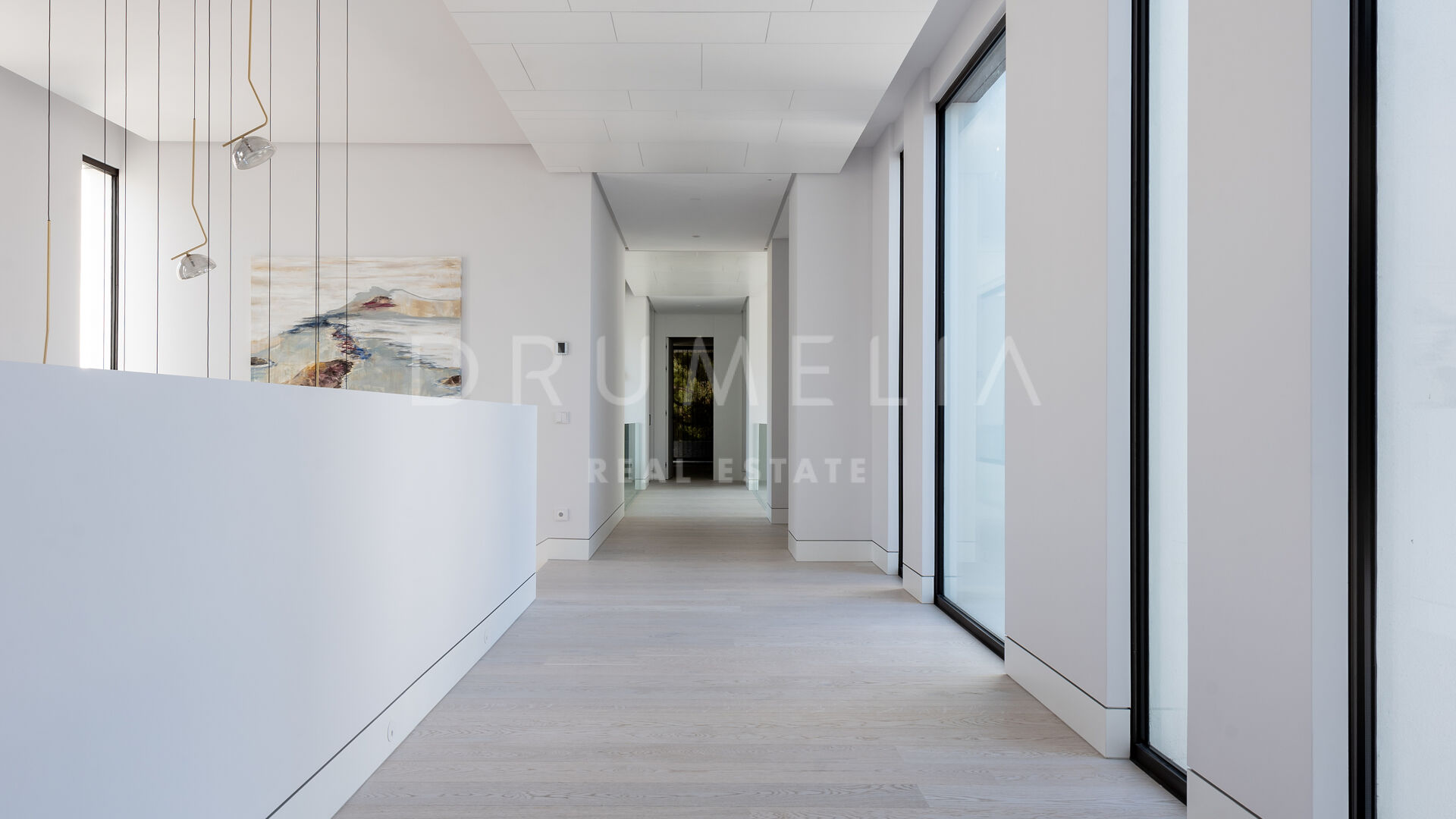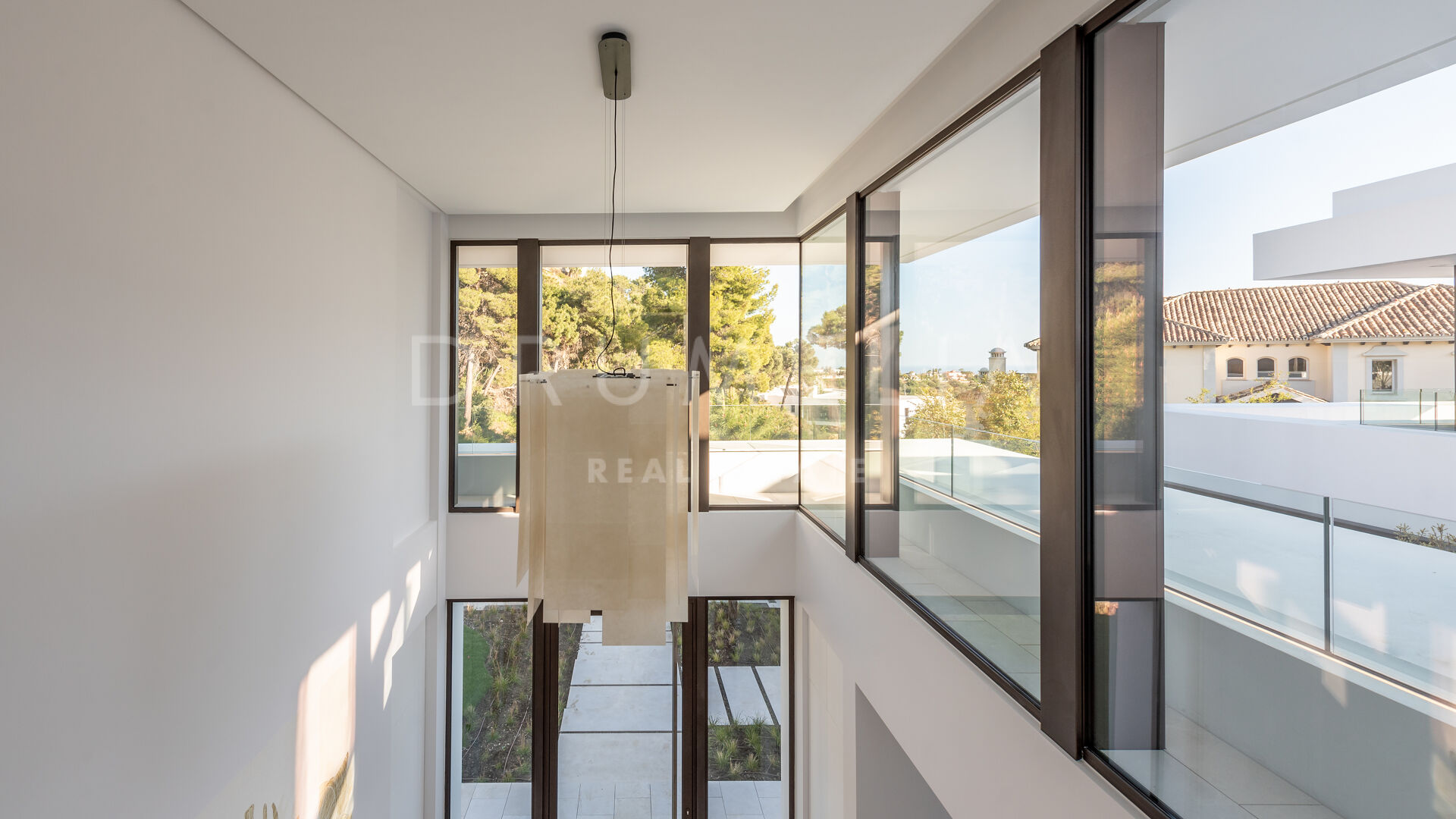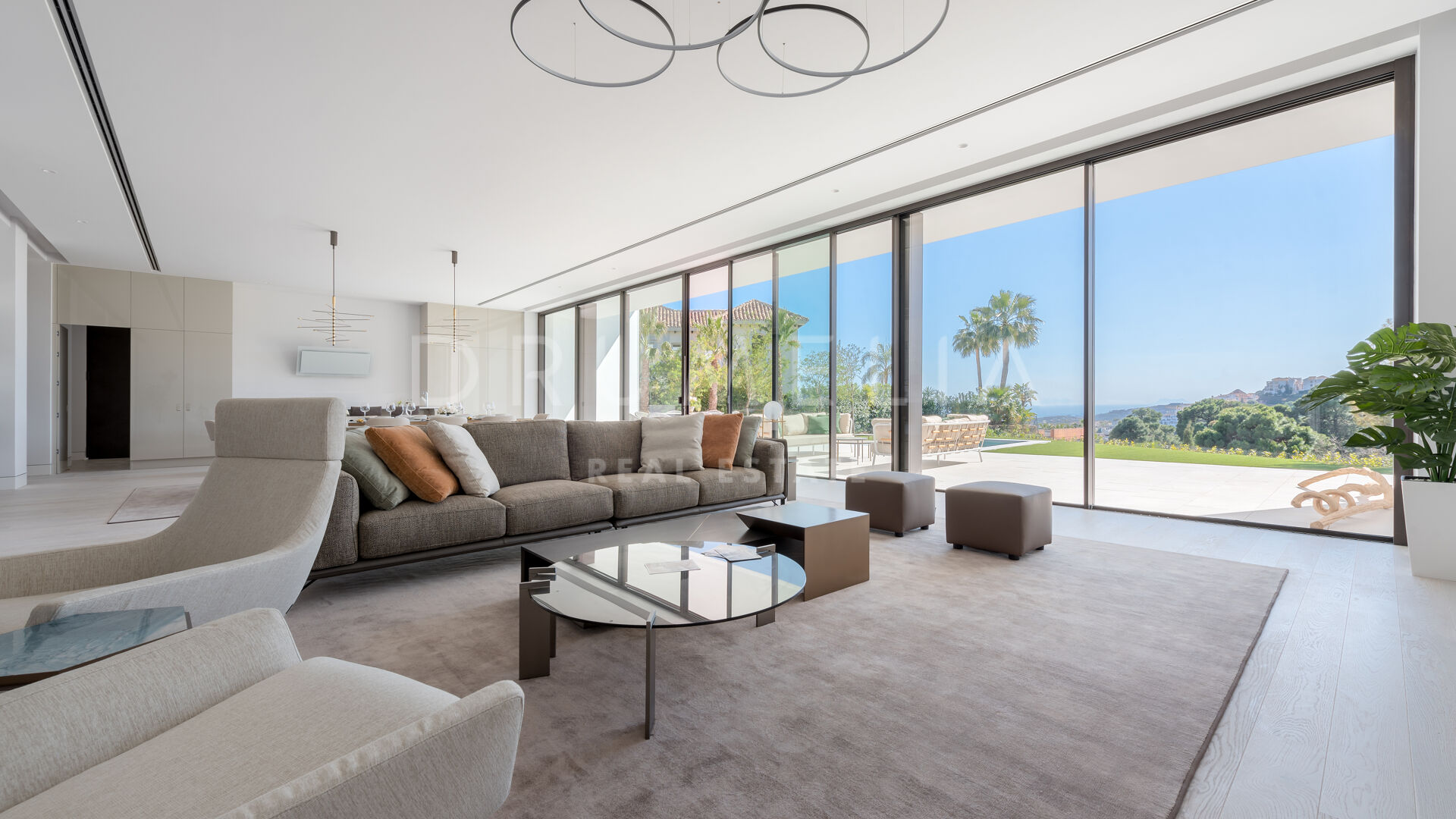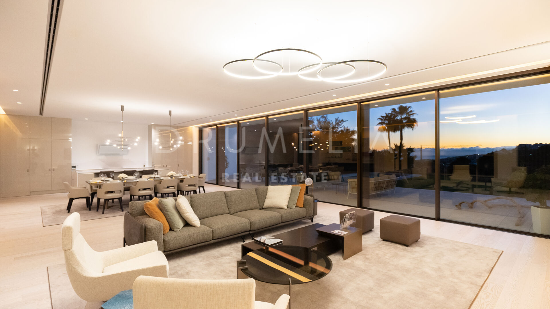 Recently built, gated with a checkpoint entrance La Reserva de Alcuzcuz is a very secure, green and spectacular residential development a short drive from the golf courses, sandy beaches, the mecca of glamour, chic parties, luxury brands and celebrities Puerto Banus and the resort towns of Marbella and San Pedro. Due to its elevated position, it boasts breath-taking unobstructed panoramic sea views towards Gibraltar and the African Coast, and to the picturesque Andalusian hills. It is quite unique, created in accordance with the criteria of sustainability, ecology and bioclimatic architecture (low operating costs through generously sized solar system, external and internal lighting with the latest energy saving technology, efficient thermal insulation with organic materials, automatic ventilation with temperature compared internally and externally in heating and cooling mode, the garden irrigation of the development working of its almost autonomous water supply).