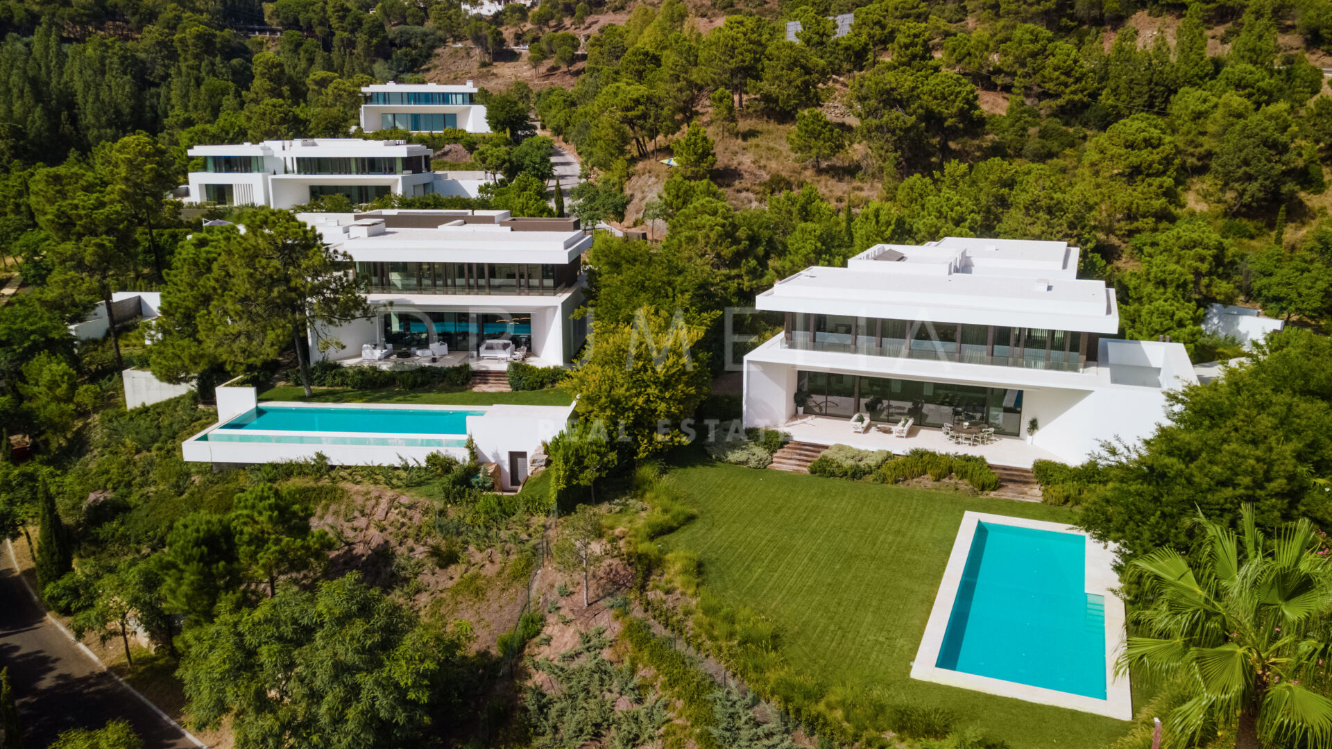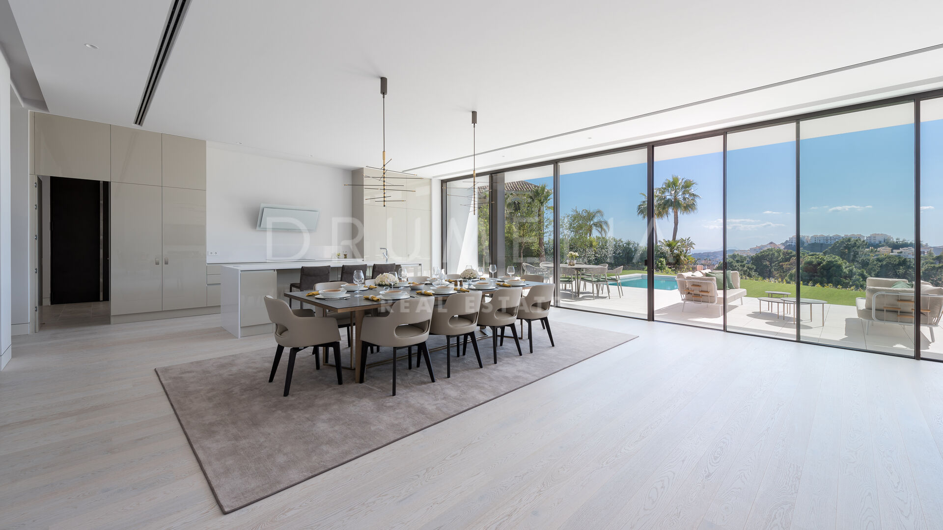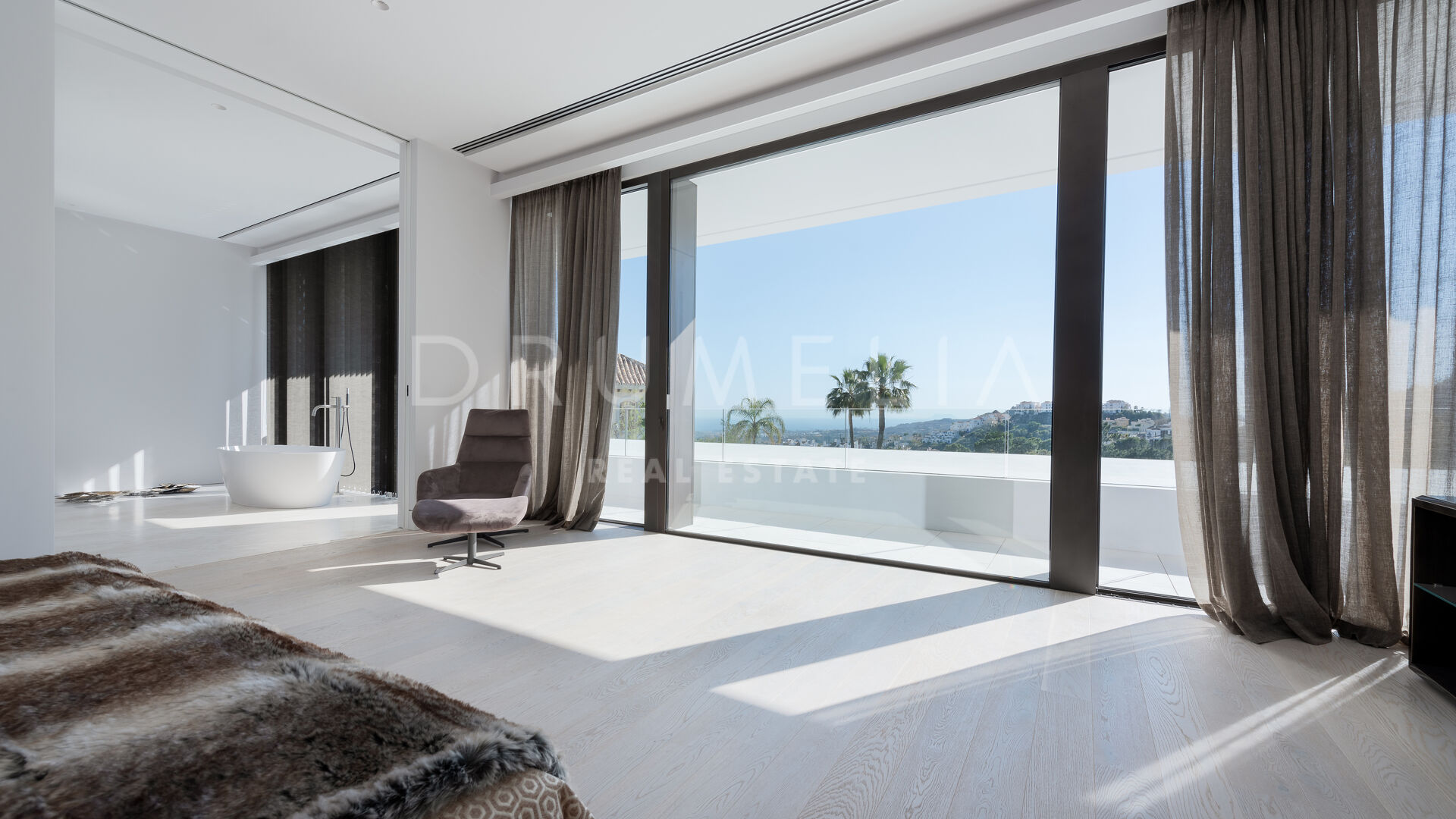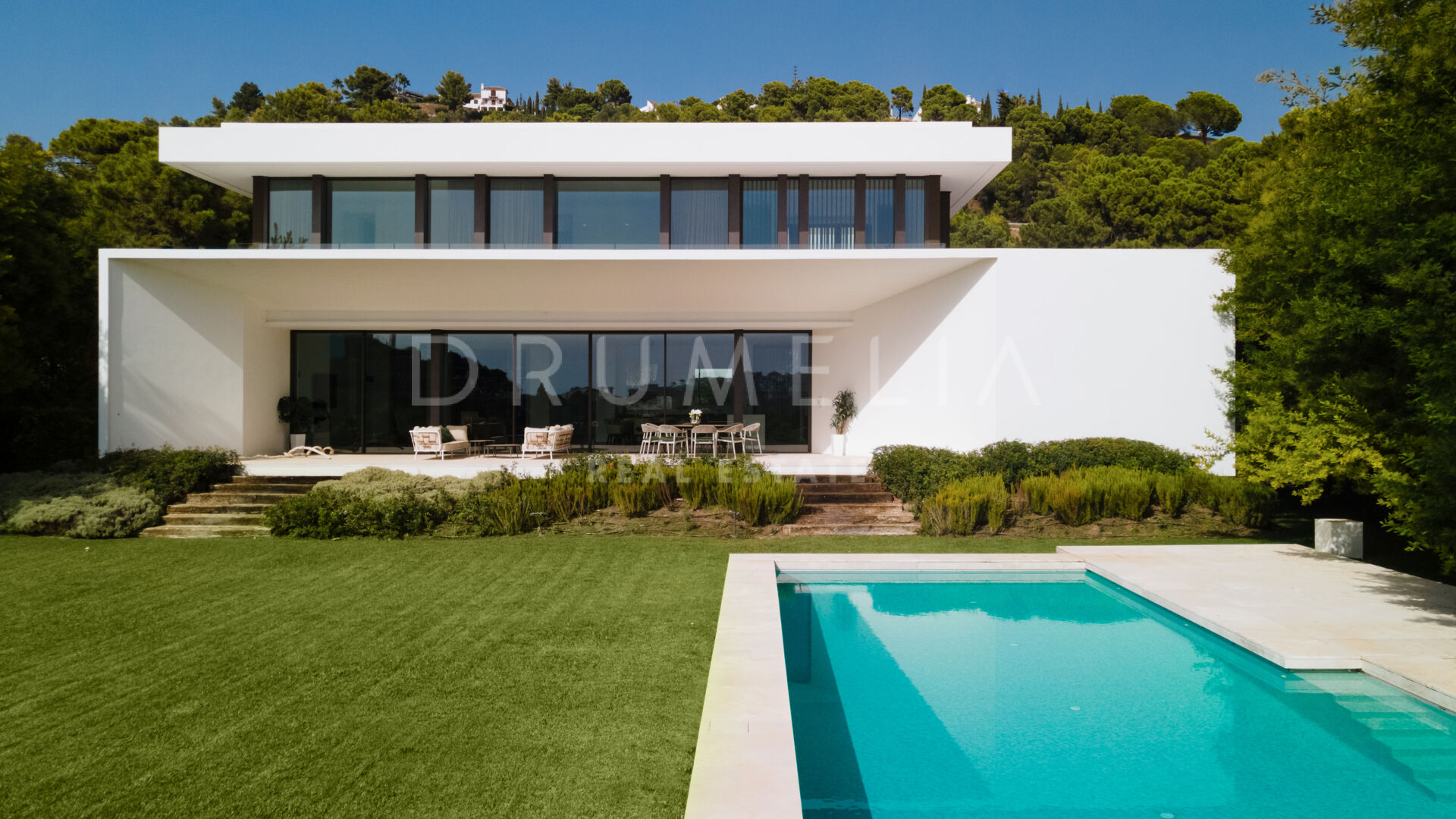 Recently built, gated with a checkpoint entrance La Reserva de Alcuzcuz is a very secure, green and spectacular residential development a short drive from the golf courses, sandy beaches, the mecca of glamour, chic parties, luxury brands and celebrities Puerto Banus and the resort towns of Marbella and San Pedro. Due to its elevated position, it boasts breath-taking unobstructed panoramic sea views towards Gibraltar and the African Coast, and to the picturesque Andalusian hills. It is quite unique, created in accordance with the criteria of sustainability, ecology and bioclimatic architecture (low operating costs through generously sized solar system, external and internal lighting with the latest energy saving technology, efficient thermal insulation with organic materials, automatic ventilation with temperature compared internally and externally in heating and cooling mode, the garden irrigation of the development working of its almost autonomous water supply).