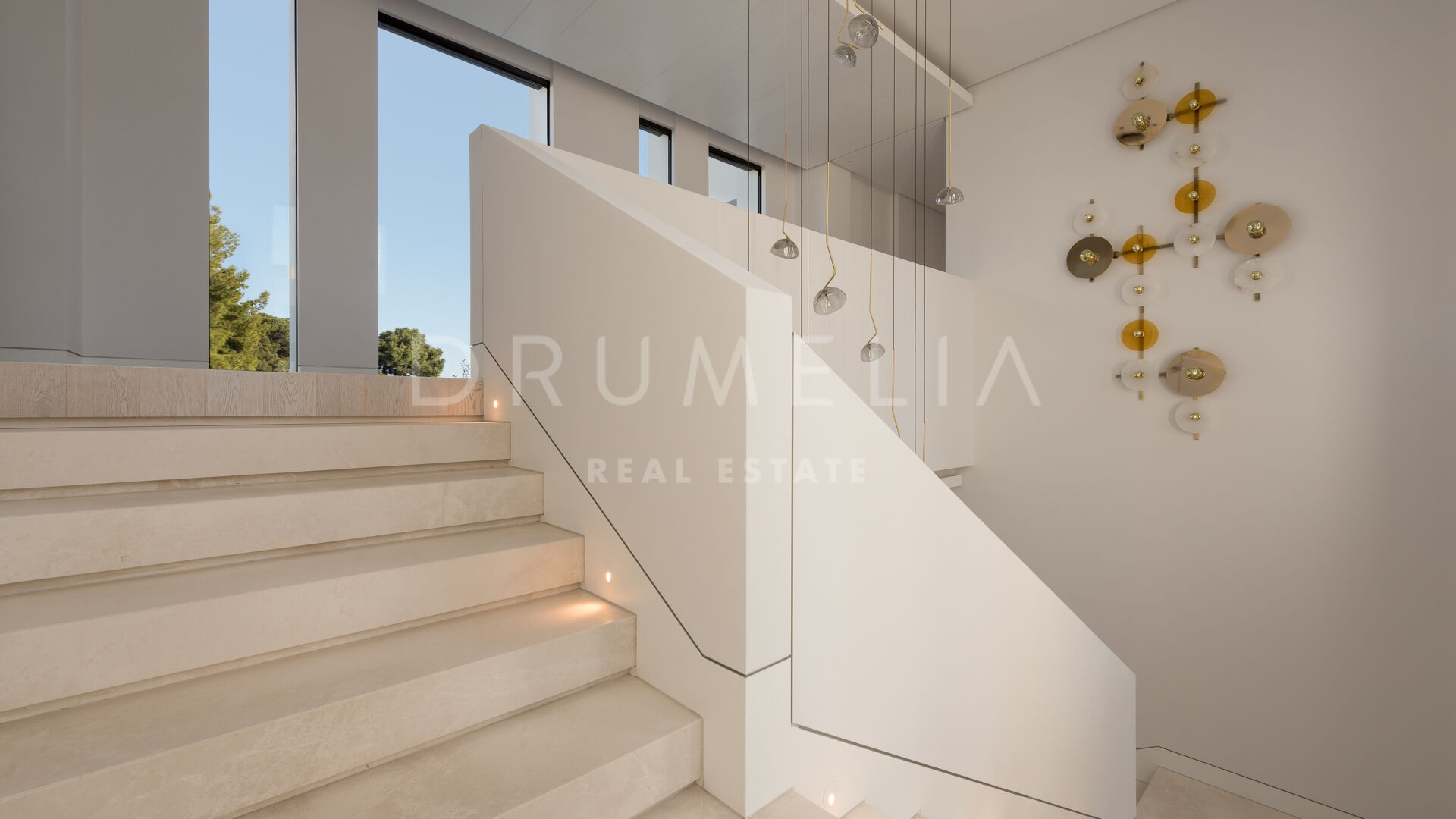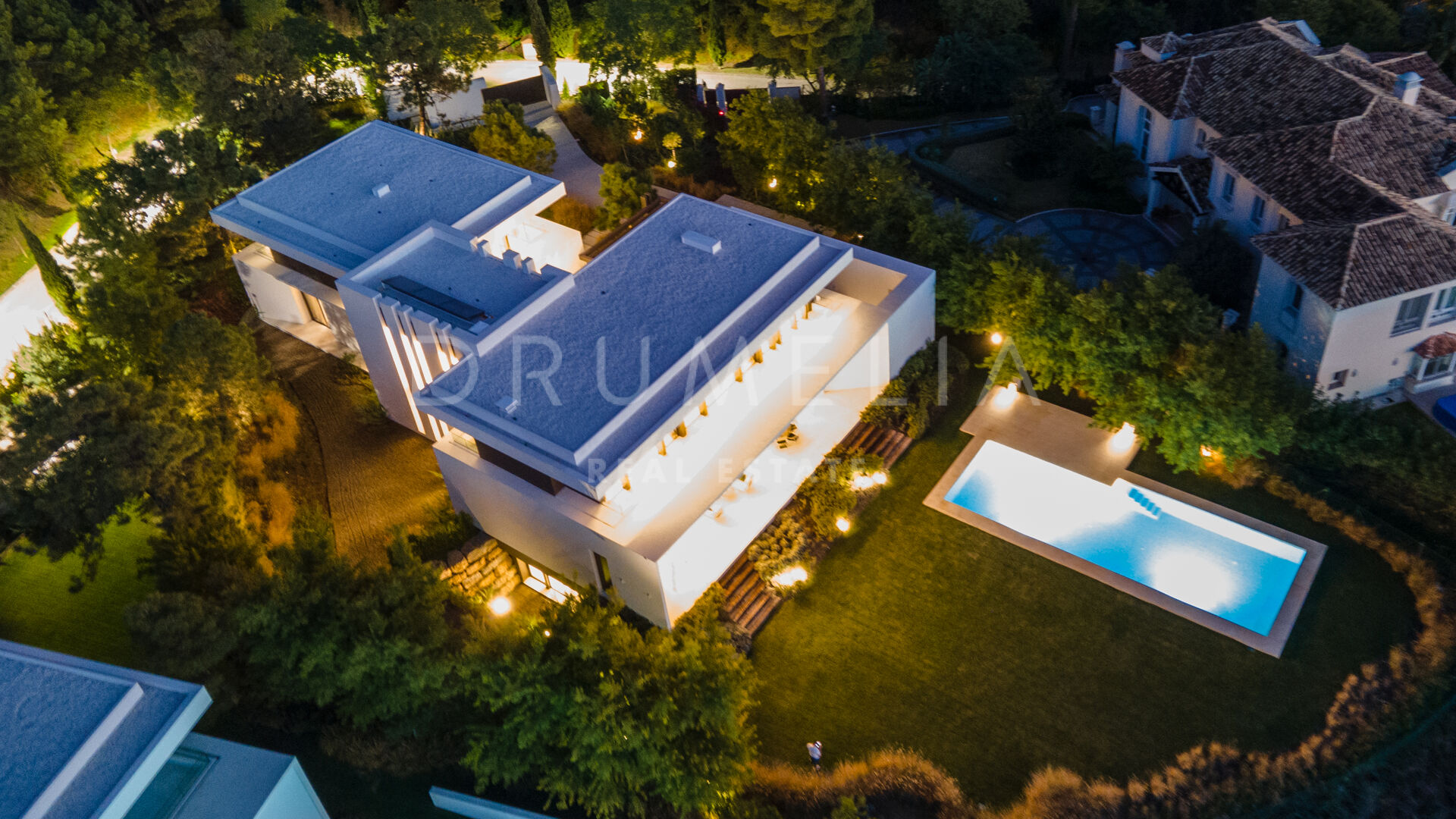 Interior design incorporates clean lines, sophisticated lighting and elegant restricted contemporary palette; exceptional designer’s furniture and decor will help to create an inspiring home for a dynamic lifestyle. Outside, the plot of 3.102 m² has it all to make the property ideal whether you want to relax al fresco, swim, sunbathe, dine romantically under the stars, enjoy BBQ or garden and pool parties.
