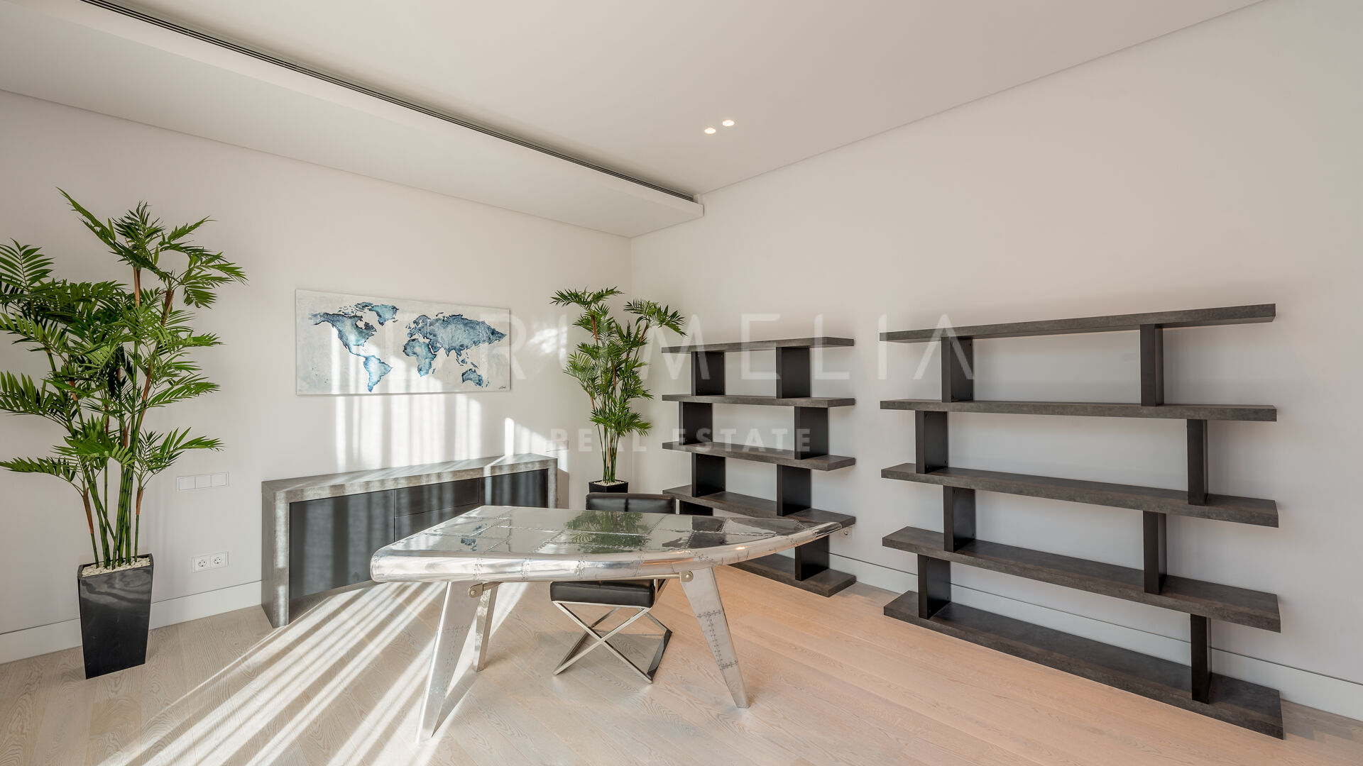 This impressive residence of 1.133 m² with the highest standards of quality, contemporary modern aesthetics, innovative features and cutting-edge technologies is the most current house of the future! It features an open plan living area that’ll wow your guests, with lounge, formal dining area, double height ceilings and huge wall-to-wall windows that flood the space with natural light and seamlessly unite the interior and exterior allowing to enjoy the tranquil majesty of nature, with surrounding Mediterranean pine forests (out of this pine wood Pinocchio was made once) and stunning panoramic views.