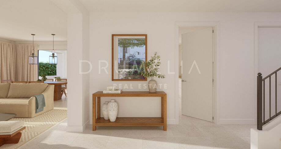 Located in the exclusive Las Villas Sotogrande residential complex, this elegant three-bedroom, three-bathroom villa captures the essence of modern Mediterranean living. Designed by the renowned architectural studio Torras y Sierra, the development combines Andalusian charm with contemporary design, set in the prestigious Sotogrande Alto area next to the La Cañada Golf Course.