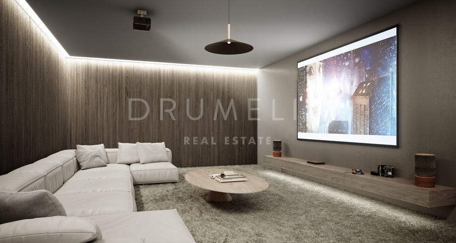 The fabulous 3-level home will feature an entrance hall, large living and dining areas with high ceilings (min. 3 meters), an open-plan fully fitted sleek kitchen, 7 serene bedrooms, 7 ultra-modern bathrooms, wine cellar, sauna, indoor pool with a cascade, lounge and pool bar, etc. The living areas will have direct access to the porches, open and covered terraces, multi-level gardens and an imposing infinity pool. You will find fitness pleasures in your own gym with nice views of the green surroundings and the Mediterranean Sea, and will relax in the solarium and yoga space. The project also includes a garage with enough parking space for 4 of your cars.