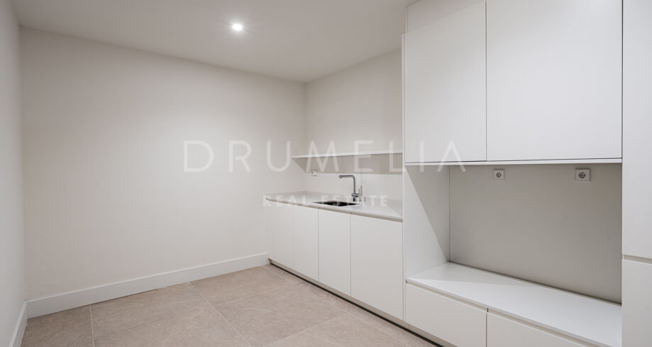 The rooftop terrace serves as a key highlight, offering open views, a Jacuzzi, and space prepared for outdoor dining and entertaining. The lower level provides flexibility for additional living areas such as a gym, cinema, or spa.