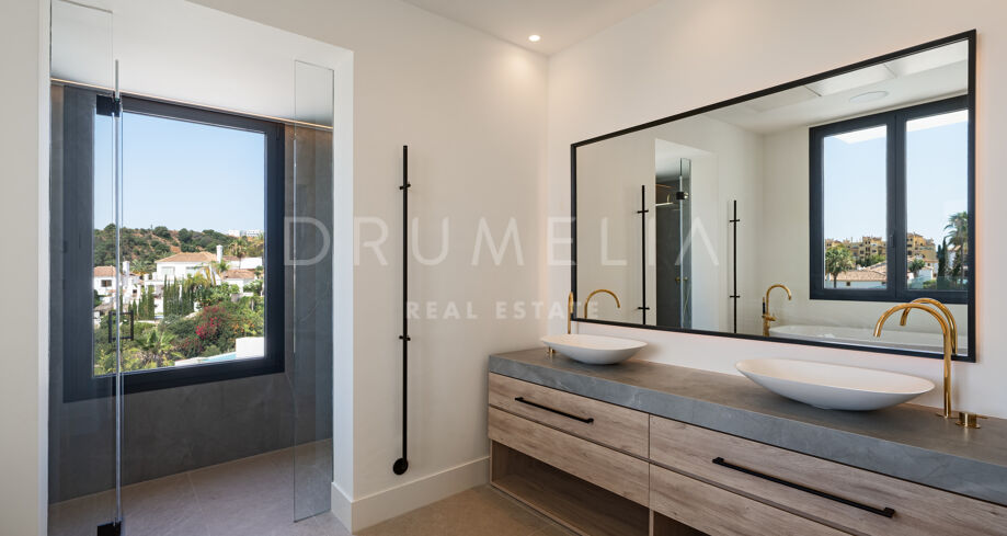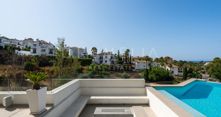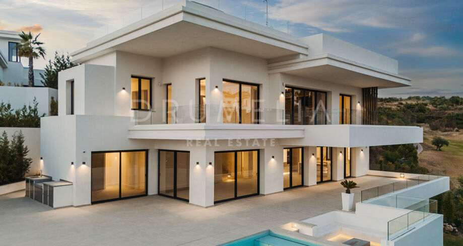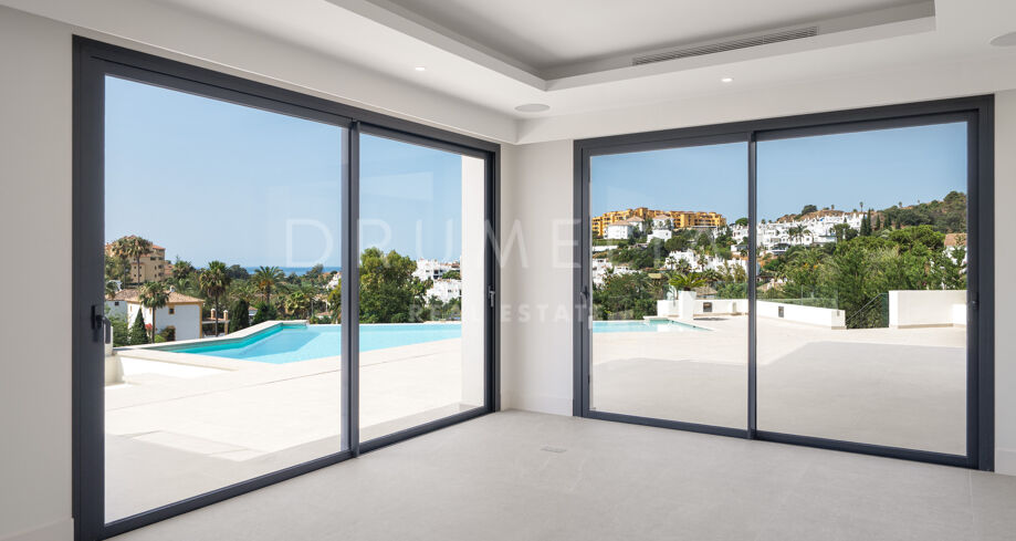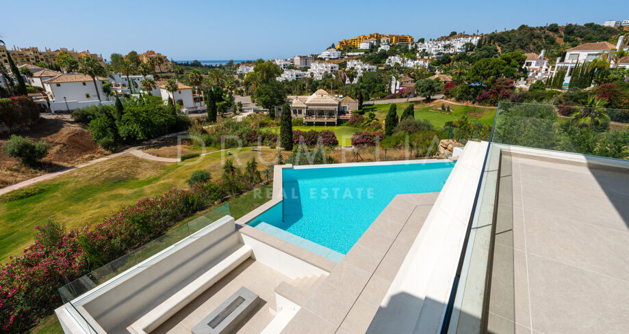 Modern Villa with Panoramic Sea & Golf Views in La Resina Golf, Estepona East