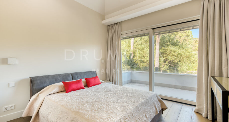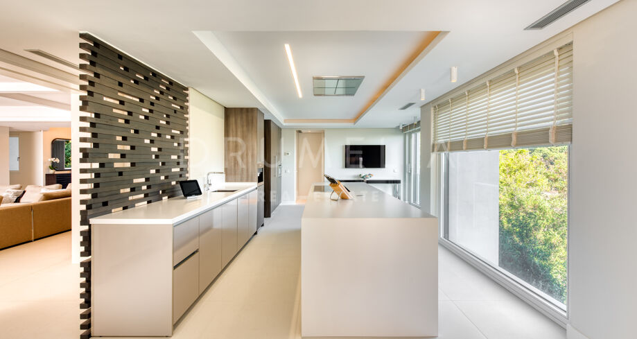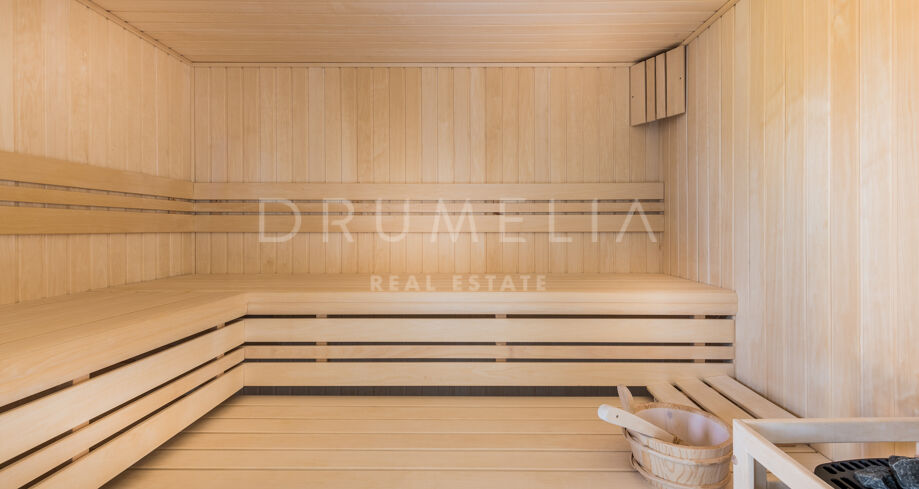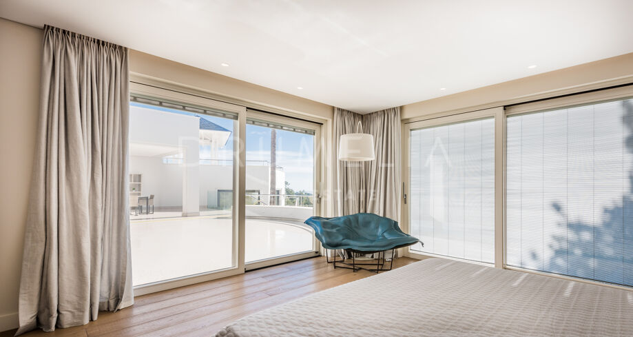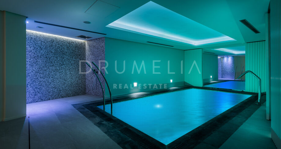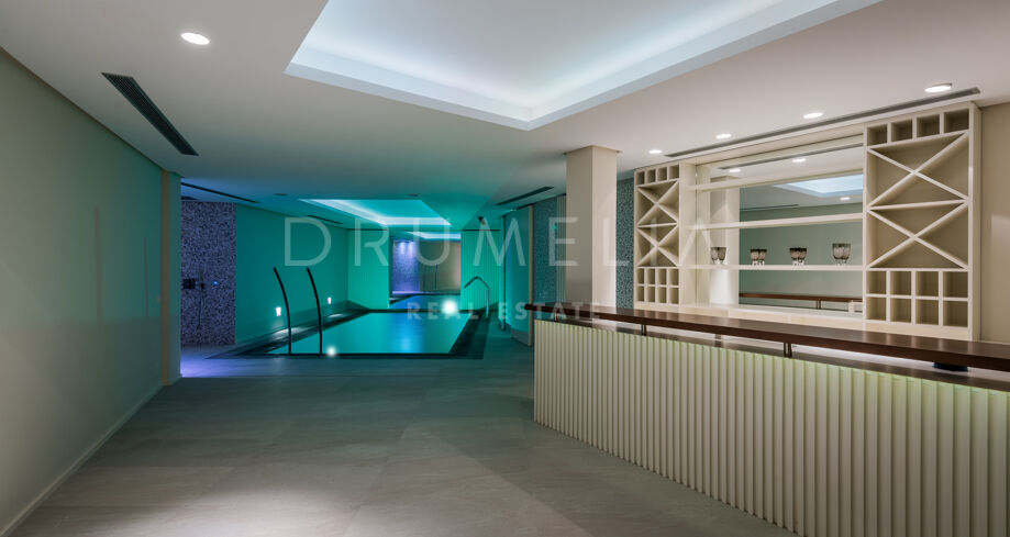 Built to the highest standards and impeccably presented, this high-end property comes for sale with many features, making sure you live luxuriously. It benefits from hot and cold air conditioning, sophisticated lighting and ceiling design, double glazing, panoramic glass doors, marble and wooden floors with underfloor heating, fitted wardrobes and a private garage. Stylish furniture pieces and accessories, and serene neutral palette bring elegance to the interior design.