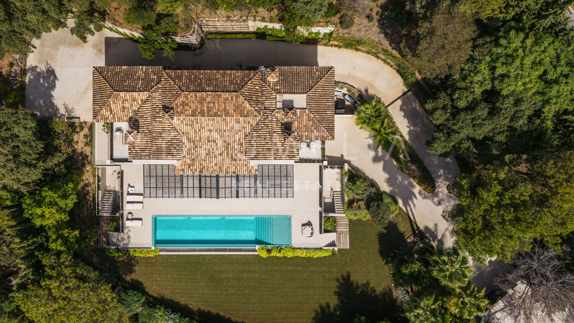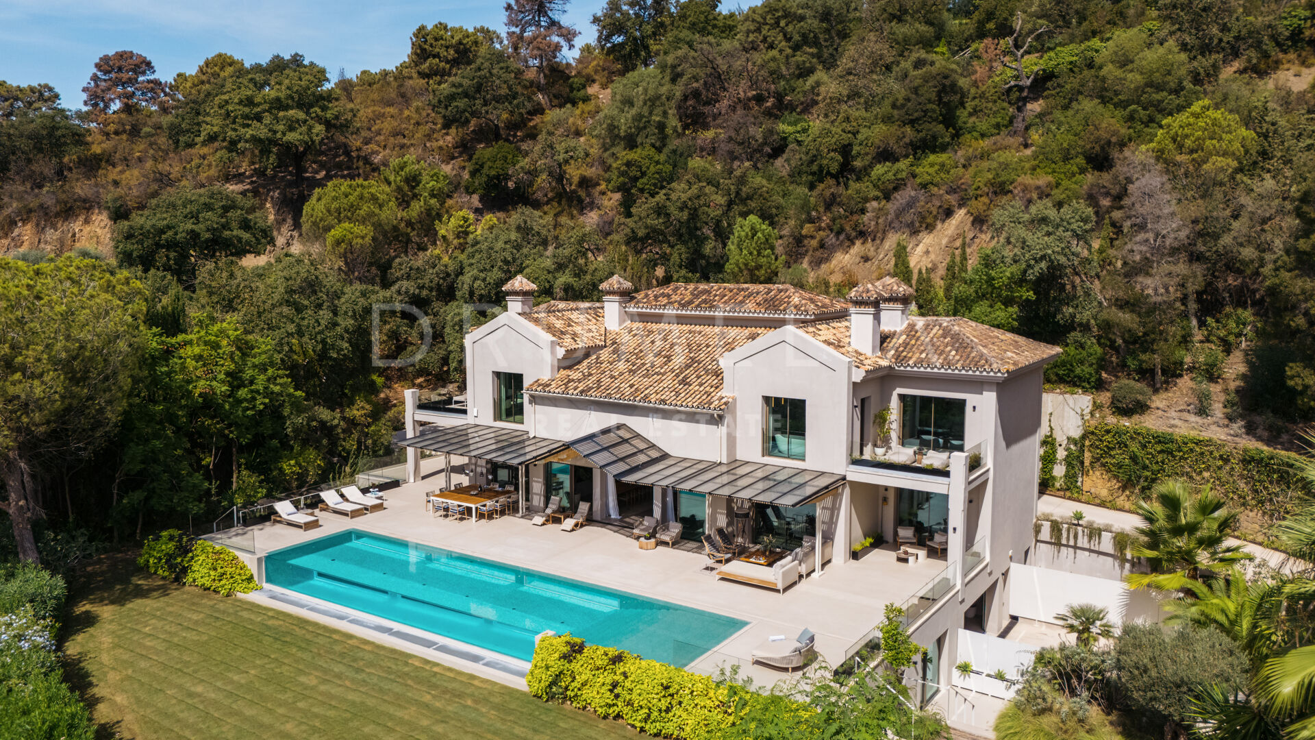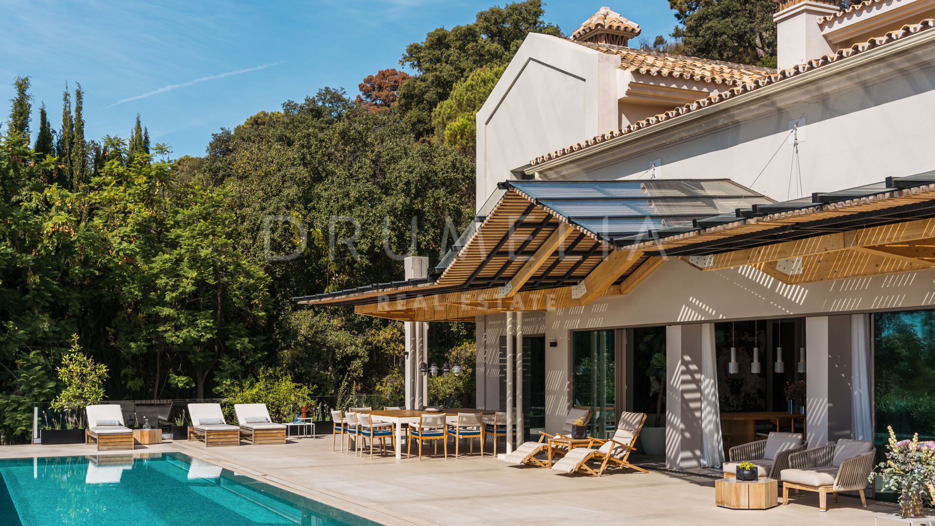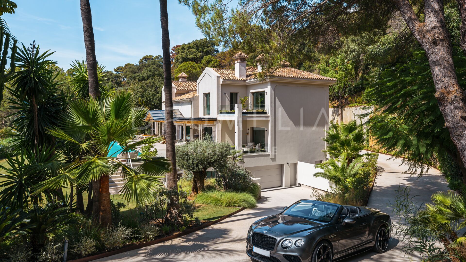 Recently renovated and decorated, this elegant house for sale is located in the highly prestigious area of La Zagaleta, in Benahavis, a private golf and country club complex, and one of the most exclusive residential estates in Europe. Surrounded by protected natural forests, the residence offers similar luxury properties and top-class sports and leisure facilities, including 2 golf courses, 2 Clubhouses with restaurants, bars, a swimming pool, various lounges, tennis and paddle courts, a heliport, and an equestrian center, all set within extensive grounds in a natural environment with 24-hour security.