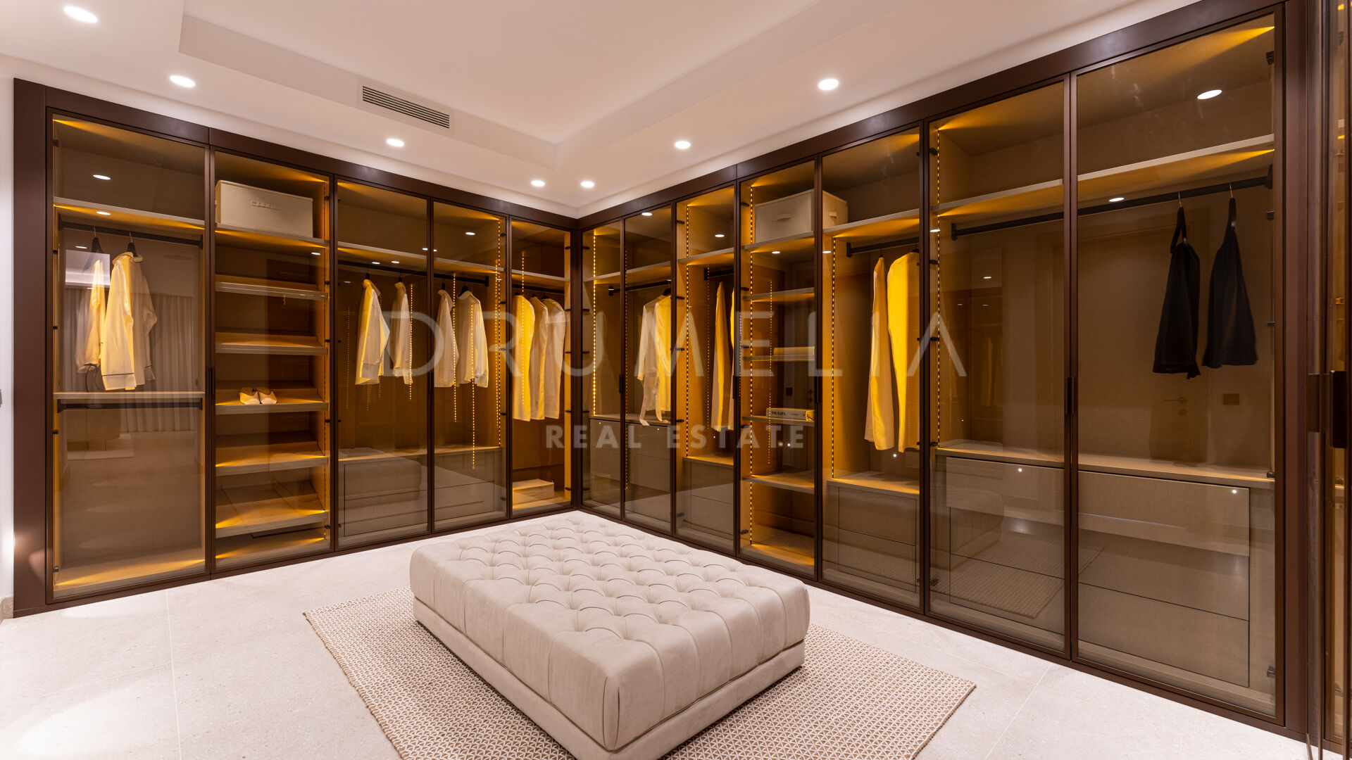 The first floor is divided into two wings: the master suite, which includes ‘his and hers’ bathrooms and walk-in wardrobes with panoramic views, and two additional guest suites, one of which has a private terrace.