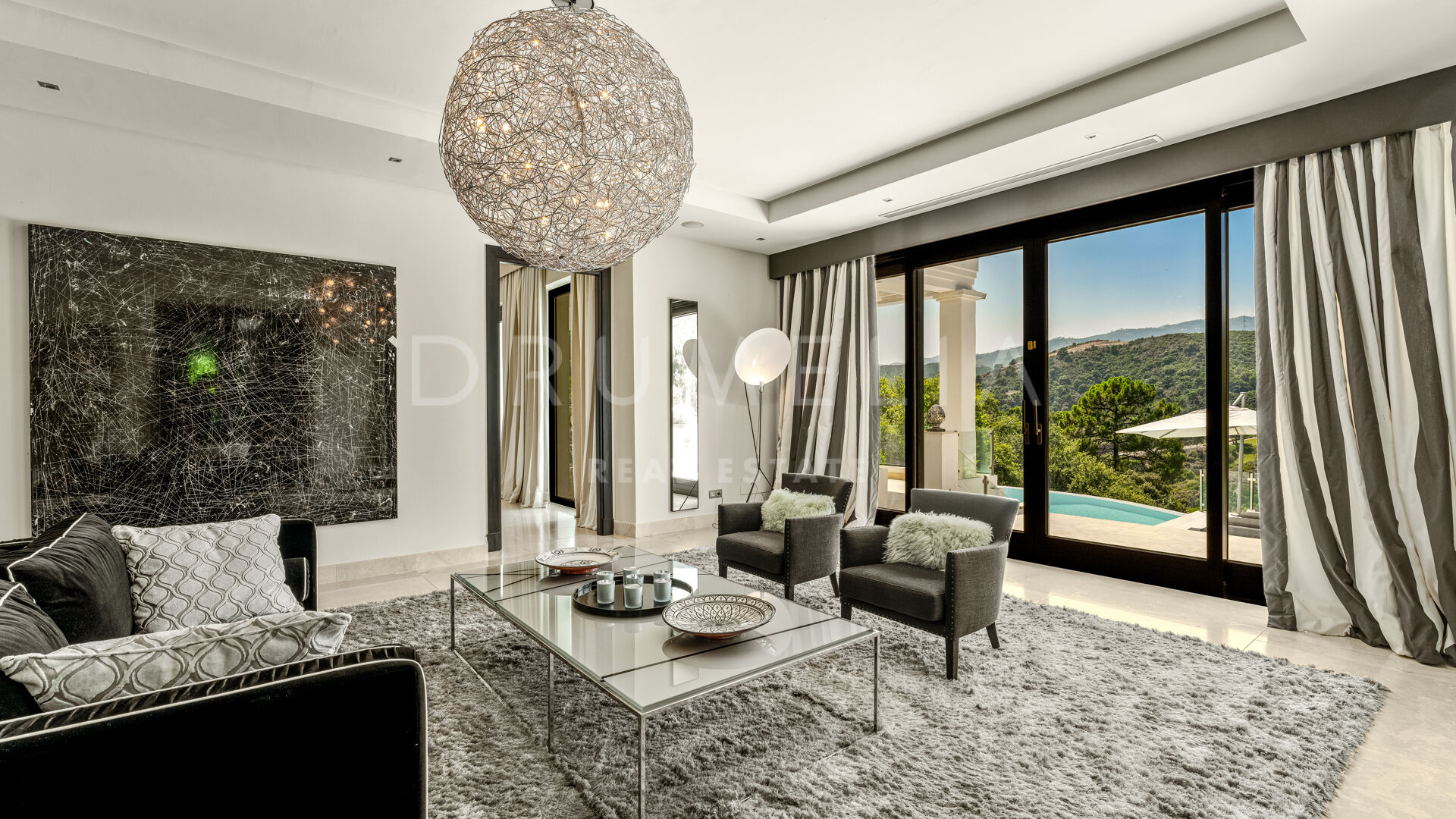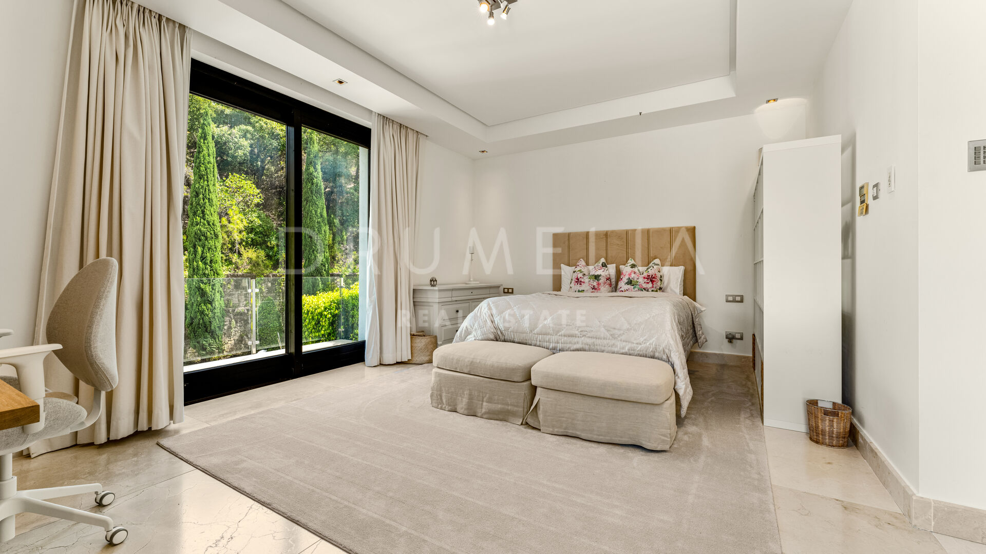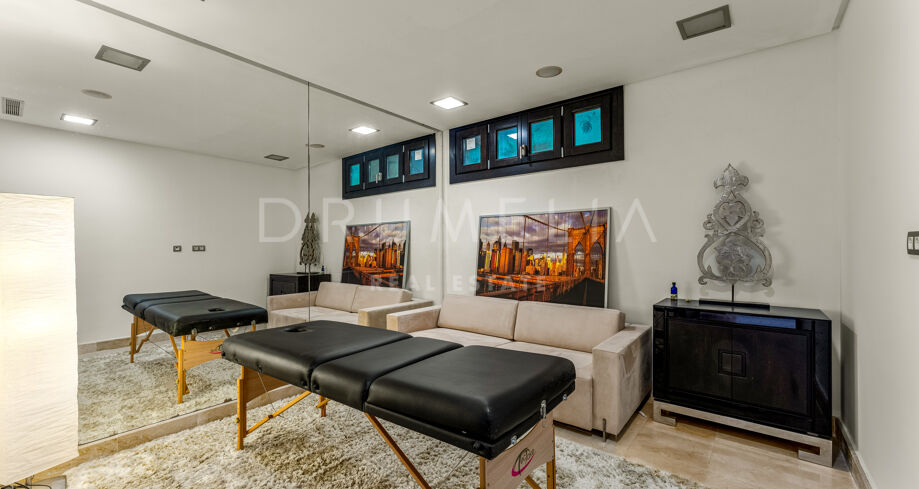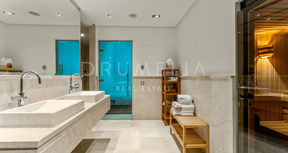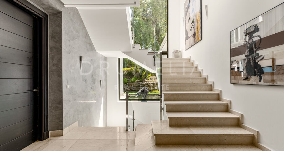 Designed with exceptional architectural vision and built to the highest standards, this modern villa in La Zagaleta combines timeless Mediterranean charm with sleek contemporary interiors by one of Marbella’s most celebrated interior designers. Featuring noble wood and marble finishes, elegant textiles, a designer fireplace, and ambient lighting, the home radiates understated luxury. Thoughtful details such as a solid Iroko wood entrance door with automated access and curated art pieces enhance the sophisticated atmosphere.