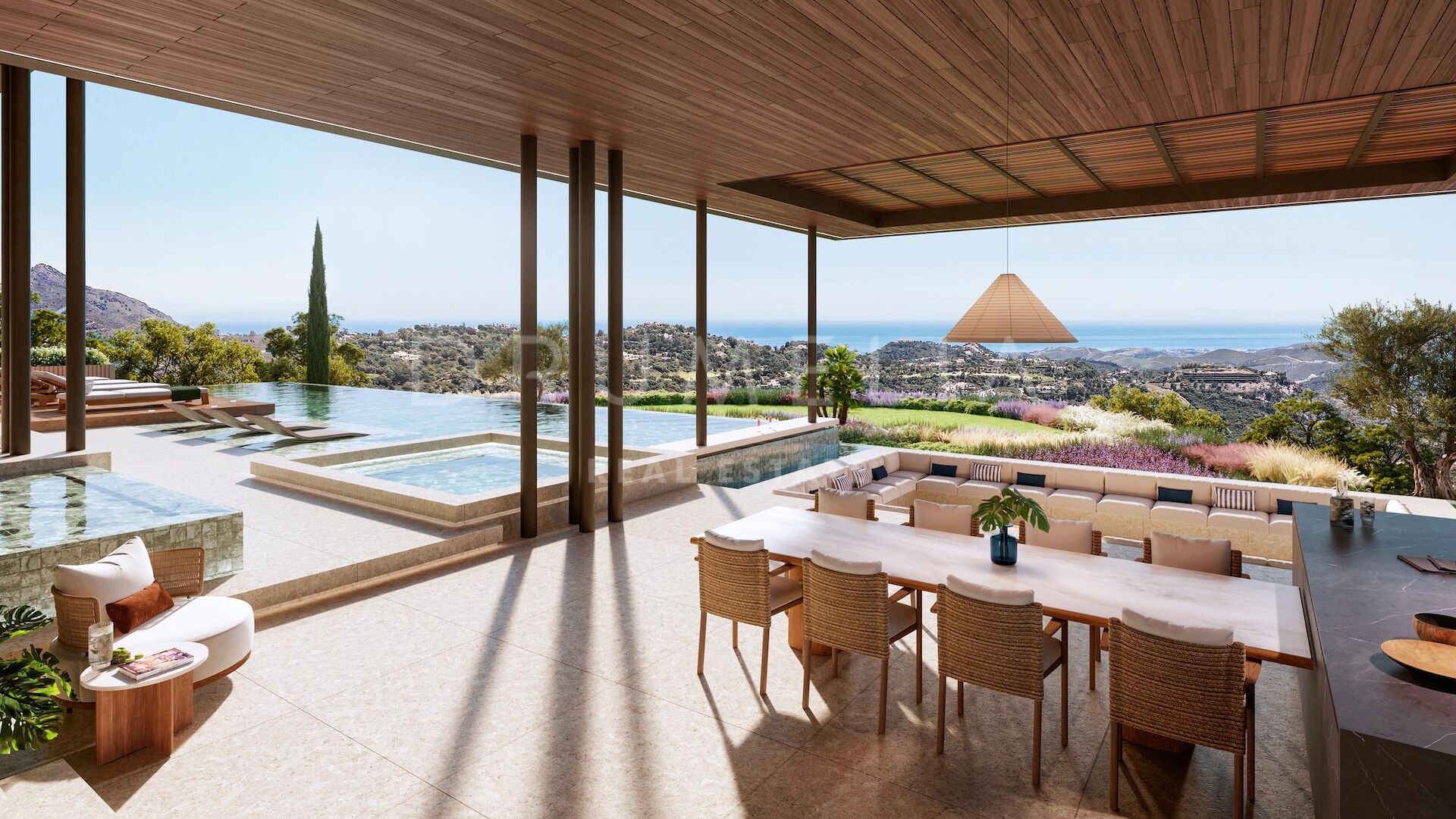 Set on a prime elevated plot of 6,491 m², this exceptional villa offers 360º views over the Mediterranean, Africa, and La Zagaleta. Designed with elegance and comfort in mind, it spans 1,527 m² of built space plus 768 m² of terraces, blending contemporary architecture with refined details.