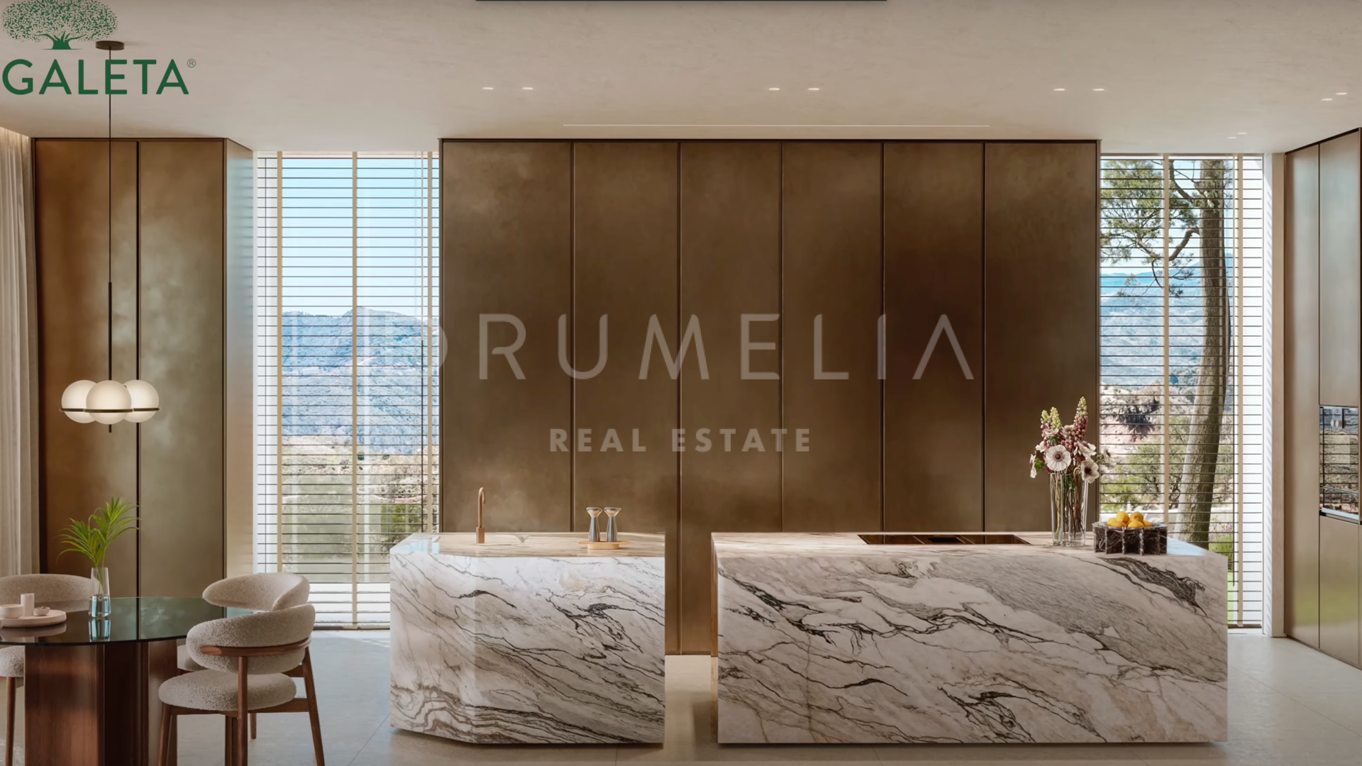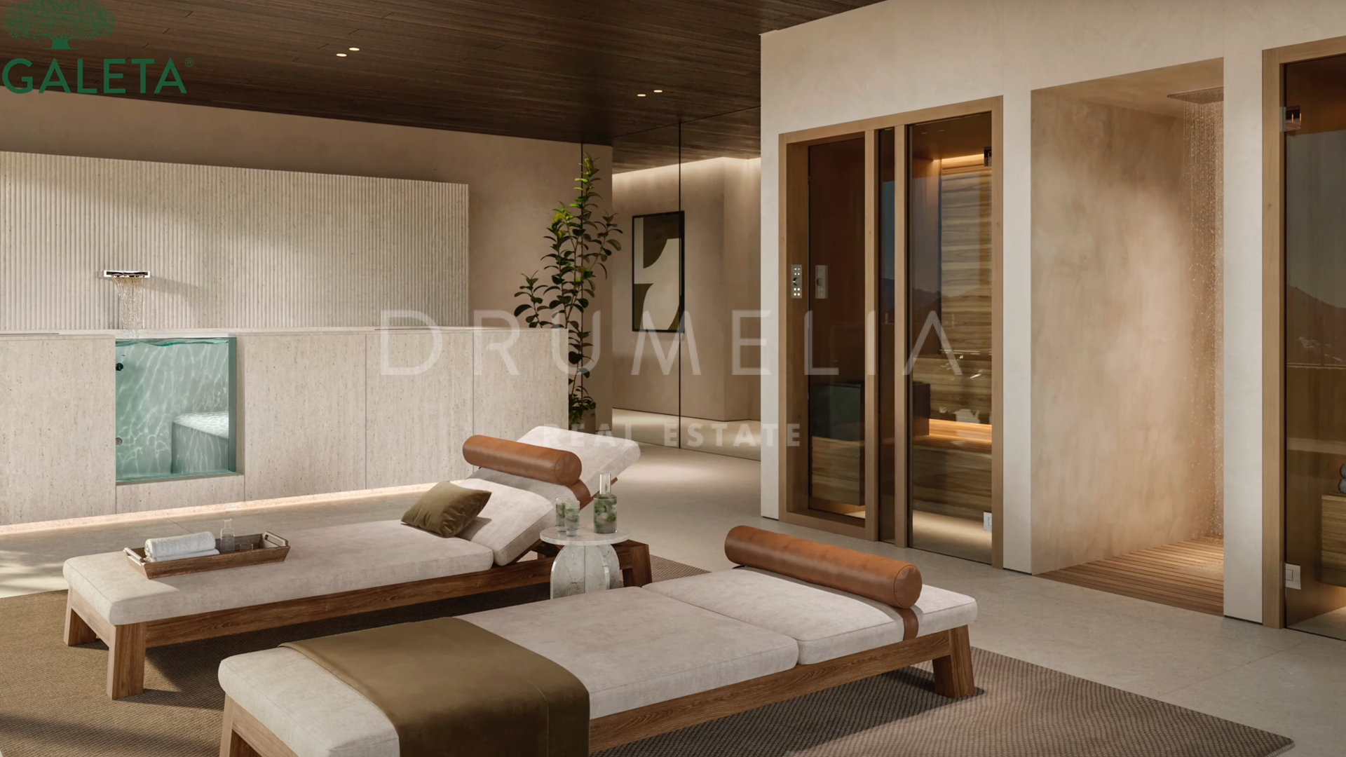 The villa features 7 bedrooms and 7+3 bathrooms, including a spectacular master suite with private terrace, dressing room, and panoramic sea views. Living areas flow seamlessly onto terraces with a heated pool, jacuzzi, and relaxing chill-out zones. A rooftop spa with hammam, sauna, and jacuzzi, plus a gym with glass walls opening to the landscape, elevate the wellness experience.
