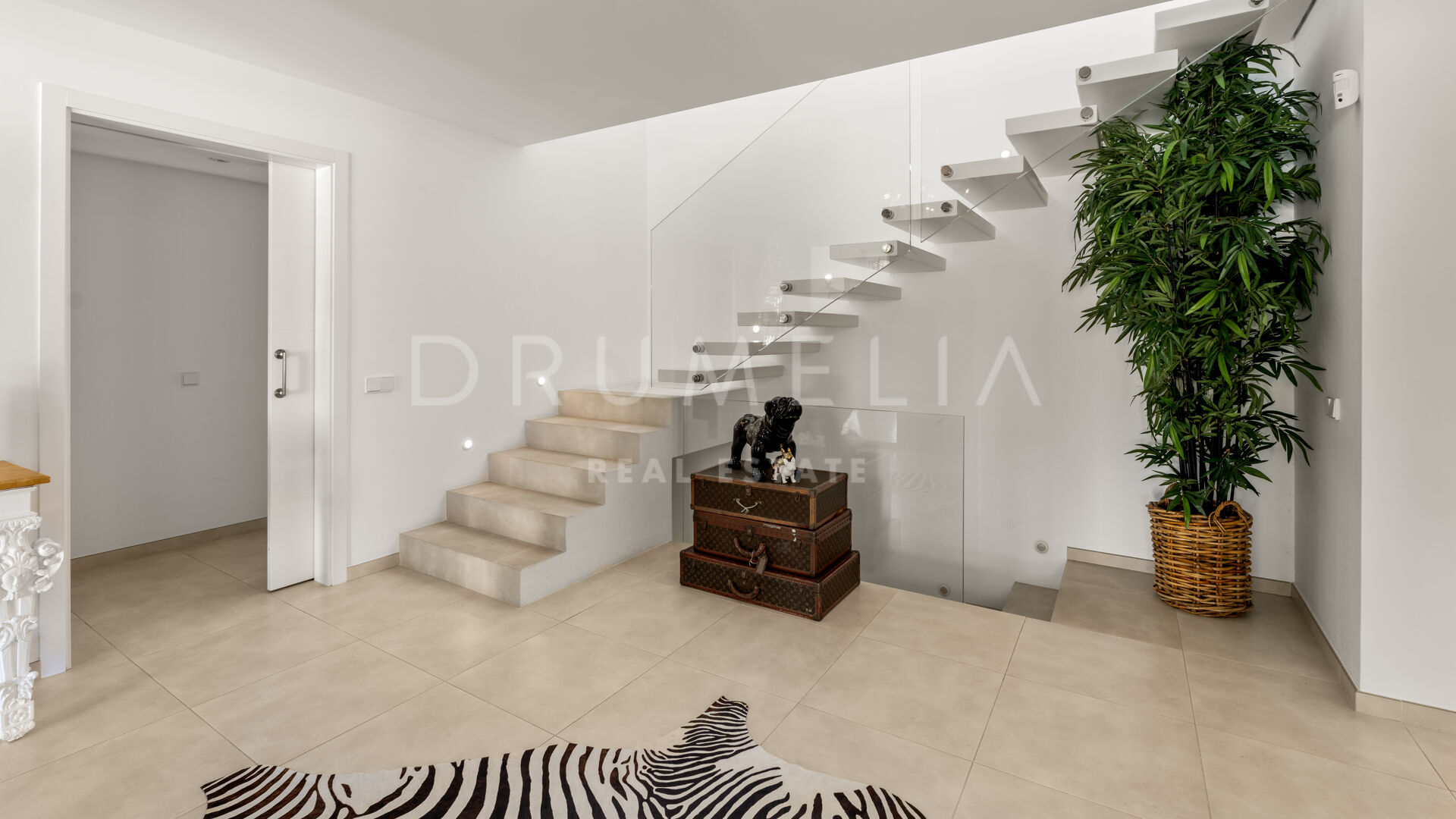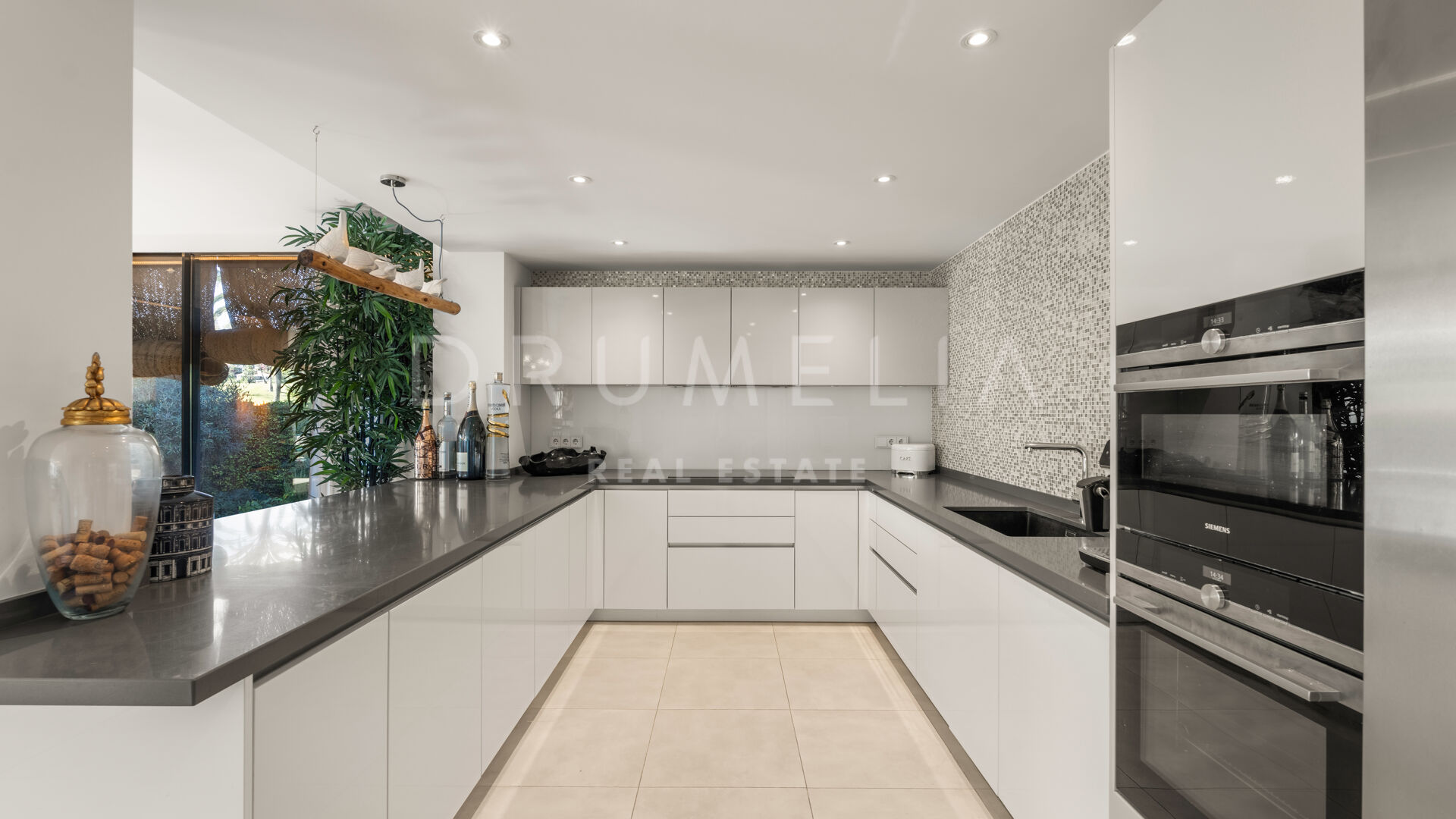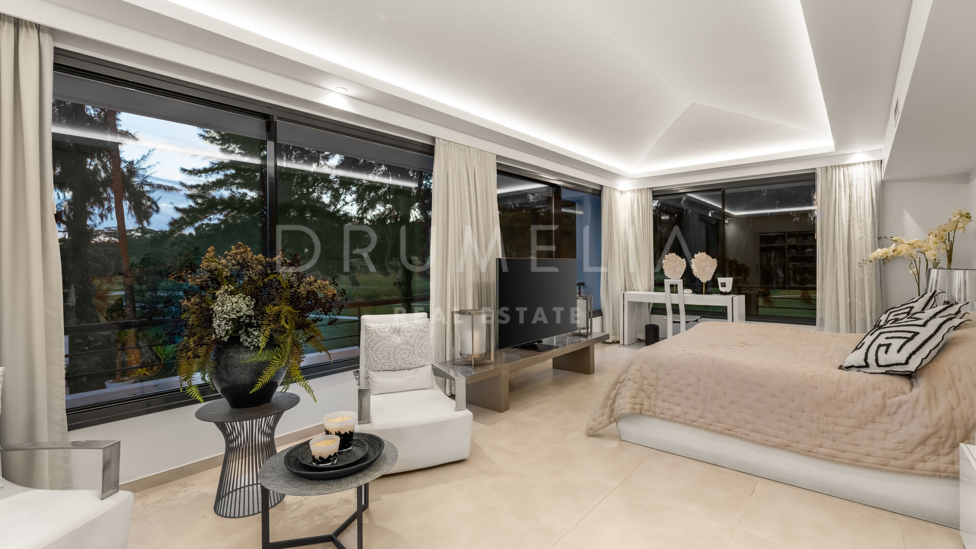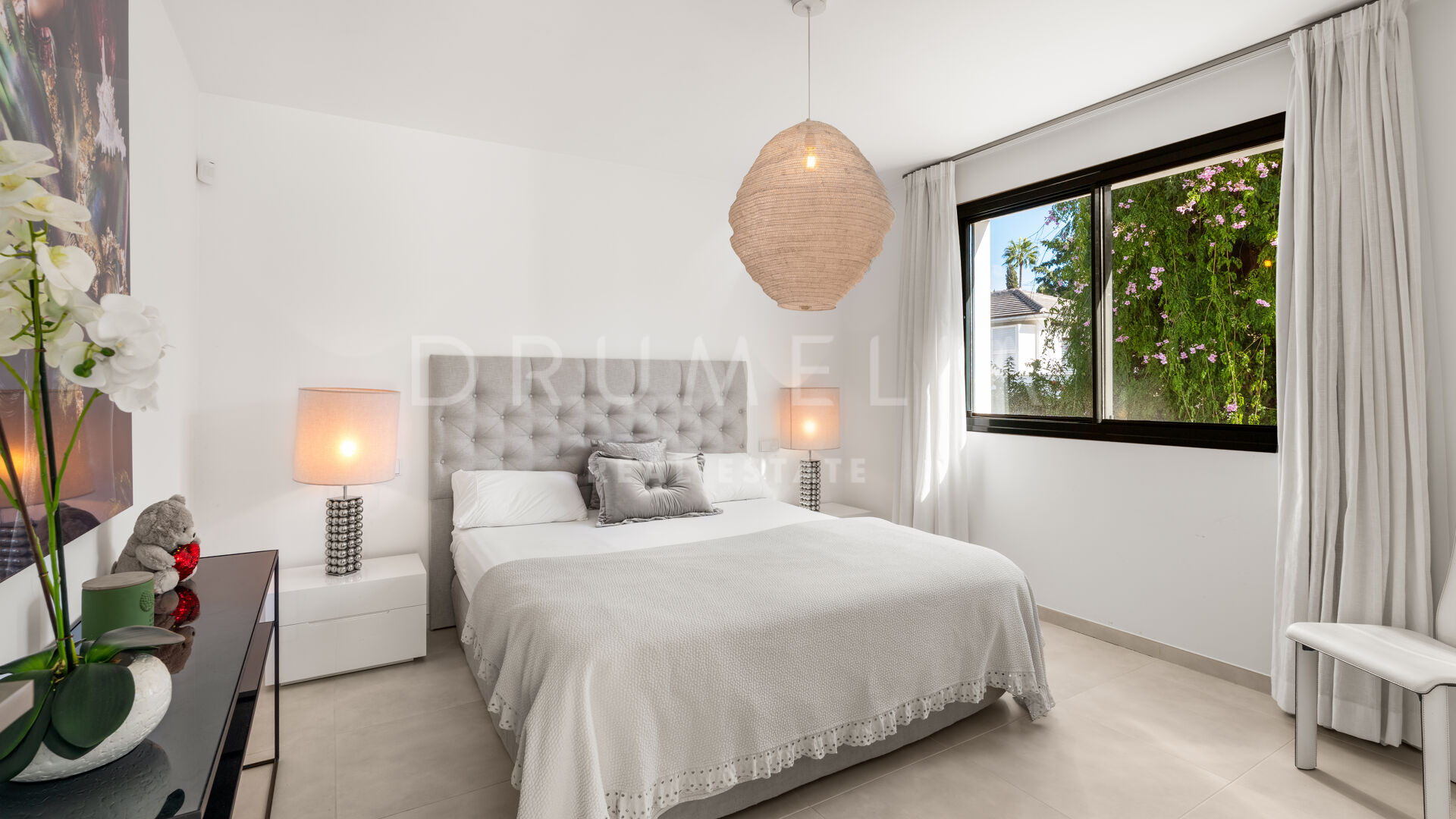 Exquisitely presented, it comes for sale in excellent condition with a guest apartment and features making sure you live luxuriously (fireplace, marble floors, air-conditioning, double glazing, dressing room, fitted wardrobes, glass doors and balustrades, alarm, BBQ, separate guest toilet, garage, etc.). The colour scheme is purely monochrome, with a subtle mix of harmonious tonal shades. The neutral tones are combined with touches of wood and cozy Scandinavian accents that create the most pleasant and comfortable atmosphere.