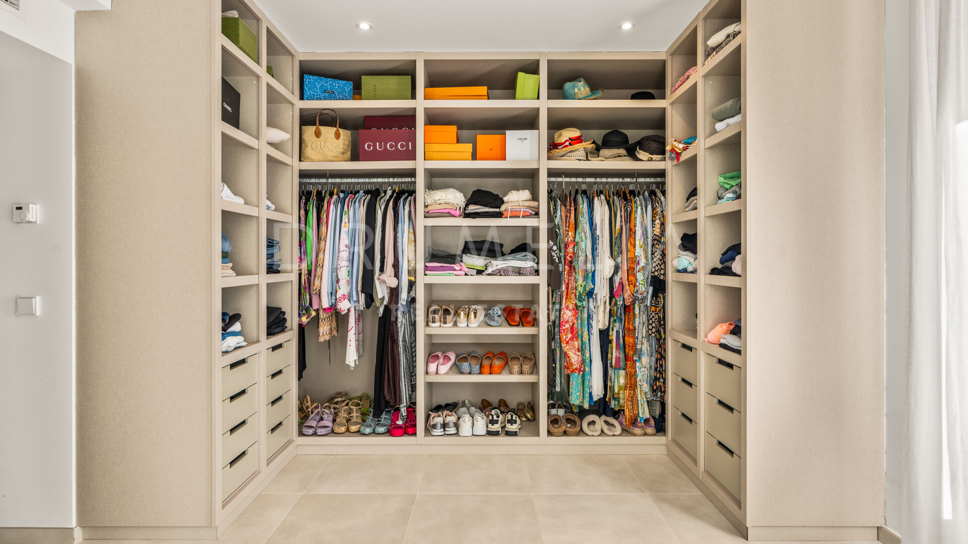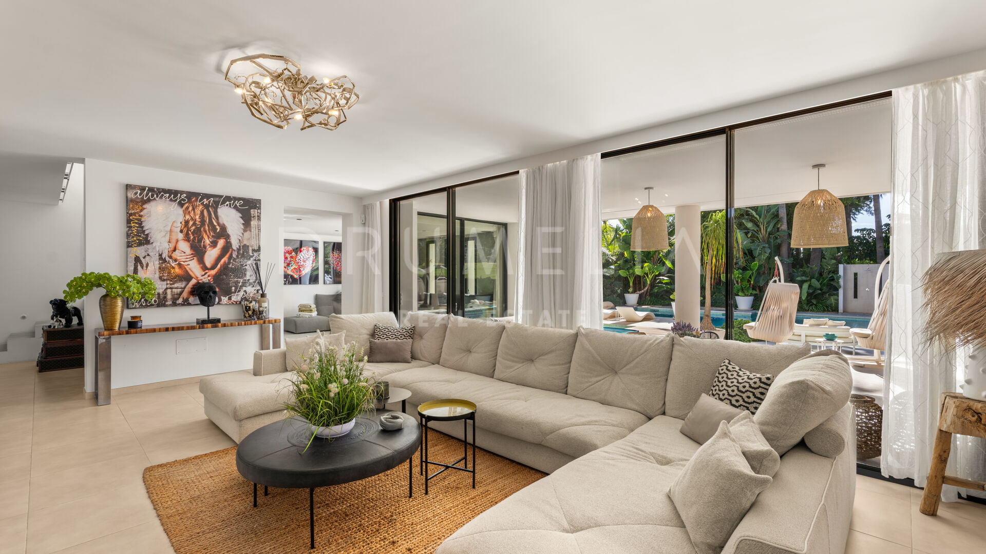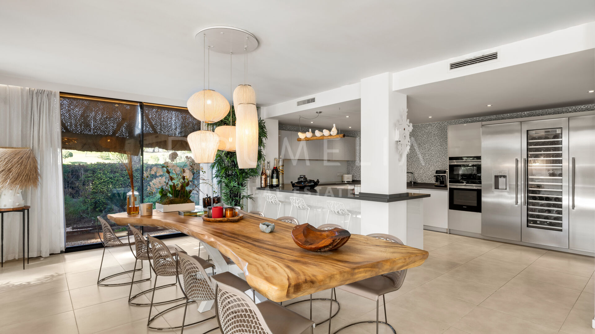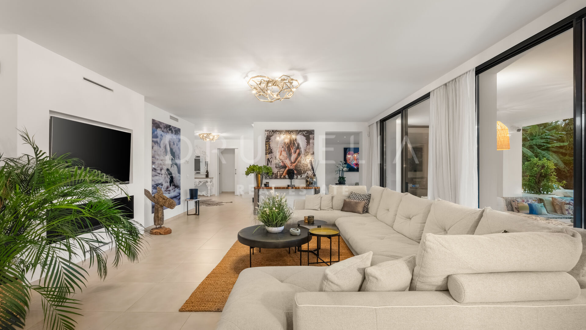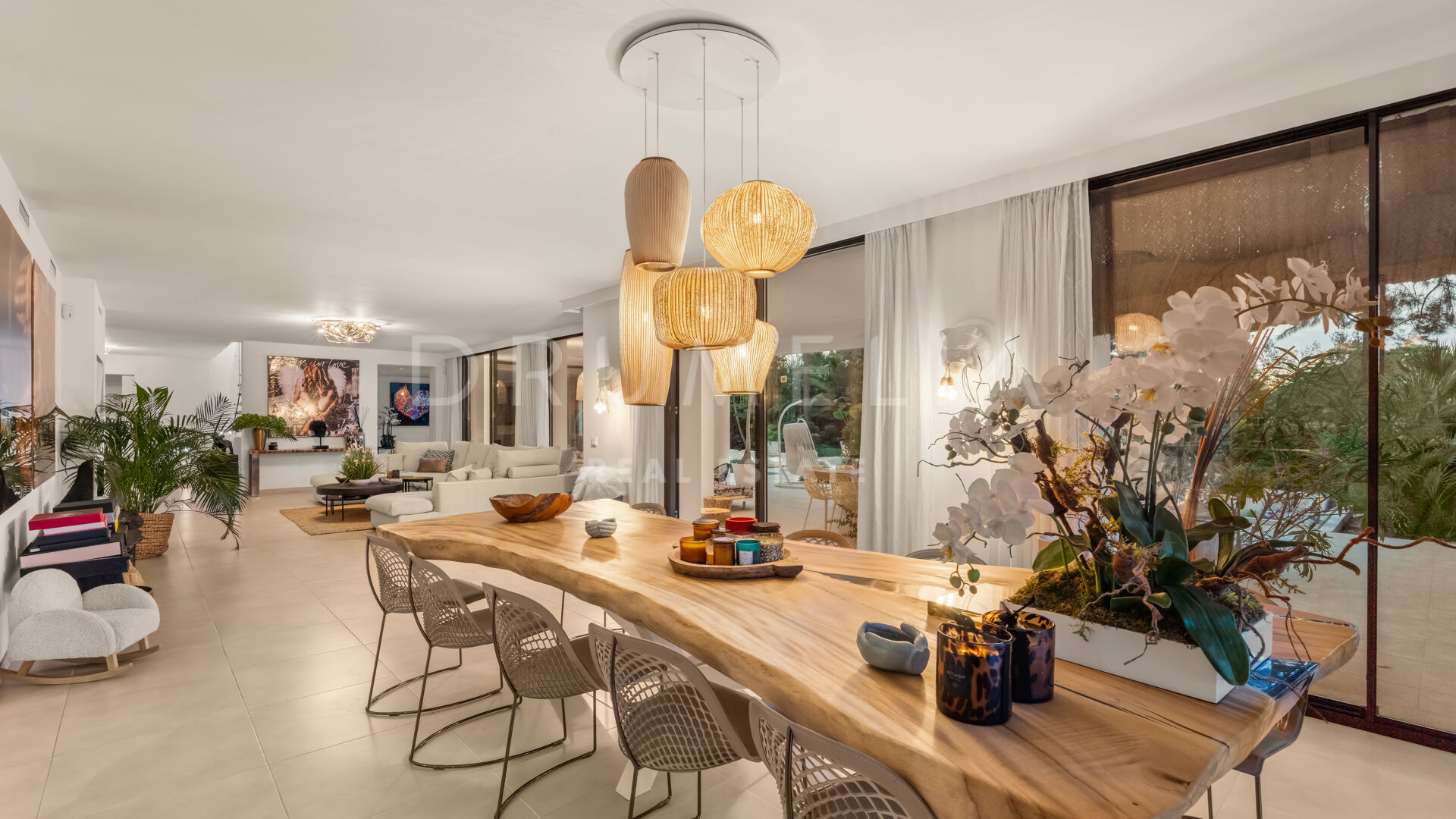 Exquisitely presented, it comes for sale in excellent condition with a guest apartment and features making sure you live luxuriously (fireplace, marble floors, air-conditioning, double glazing, dressing room, fitted wardrobes, glass doors and balustrades, alarm, BBQ, separate guest toilet, garage, etc.). The colour scheme is purely monochrome, with a subtle mix of harmonious tonal shades. The neutral tones are combined with touches of wood and cozy Scandinavian accents that create the most pleasant and comfortable atmosphere.