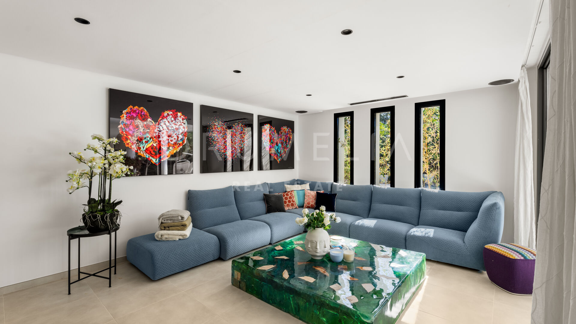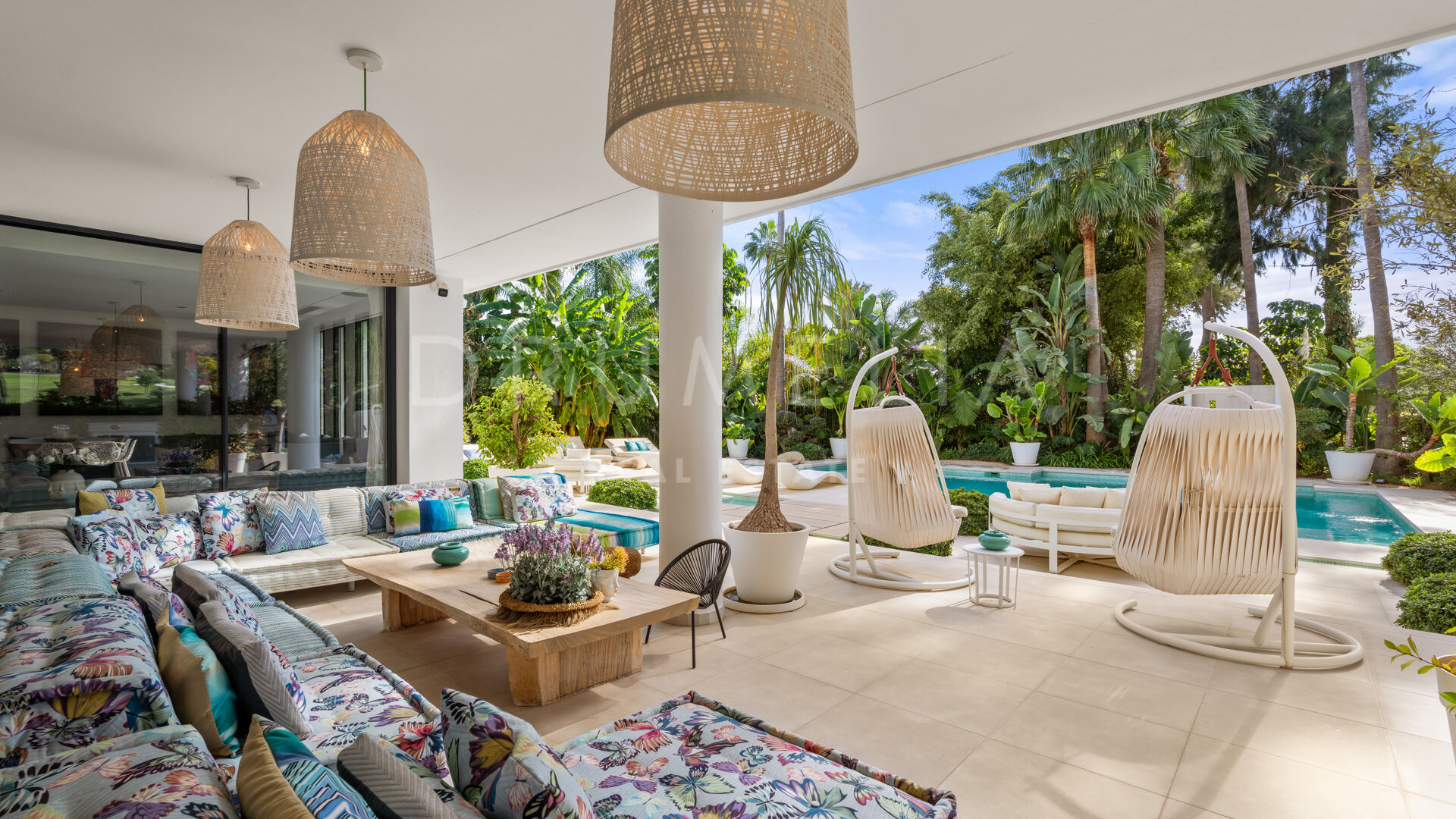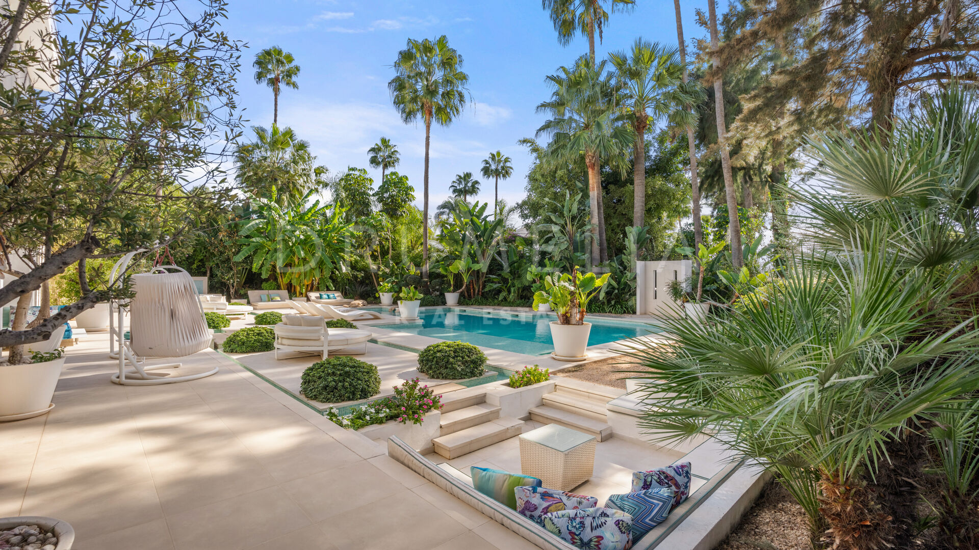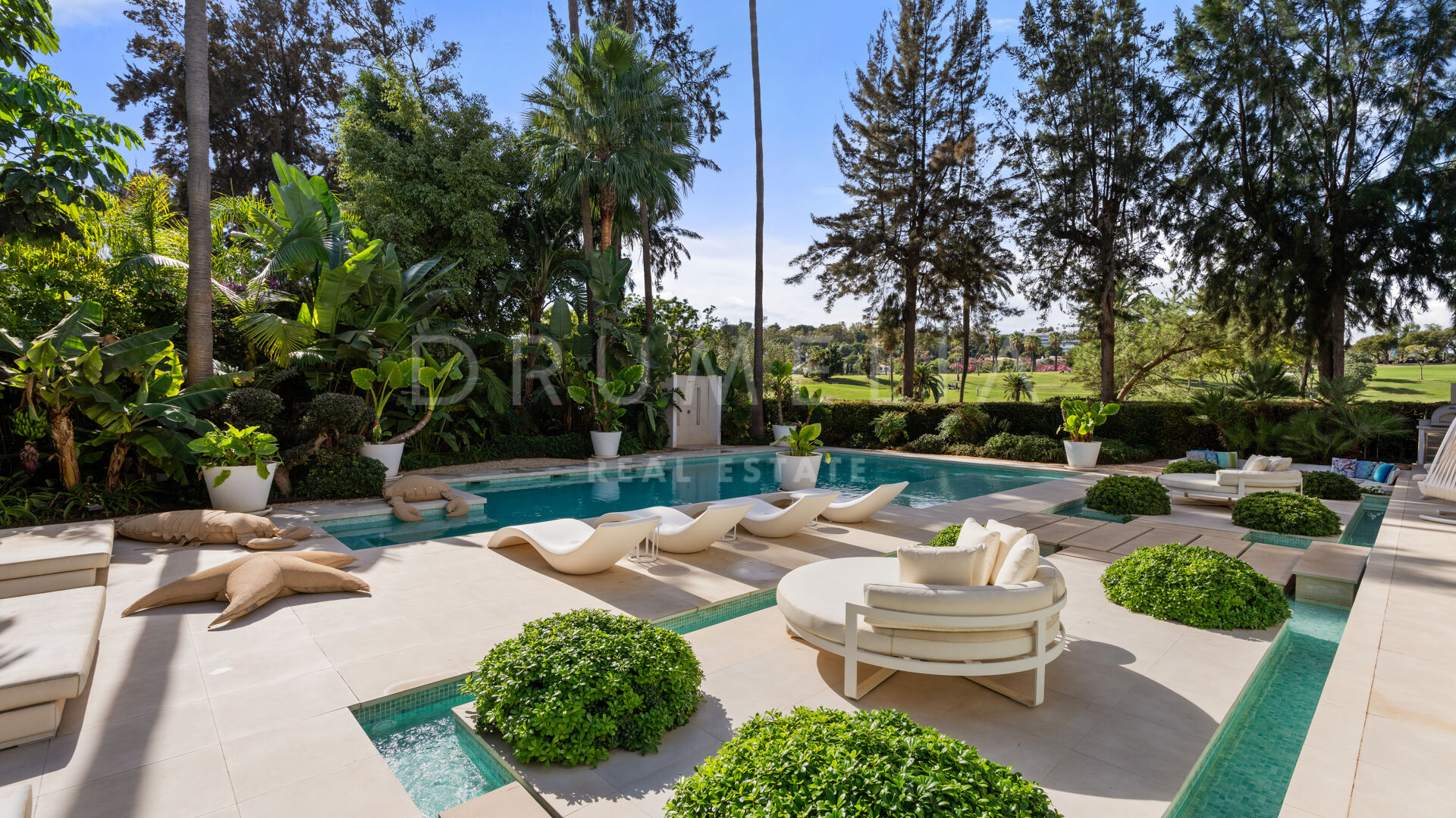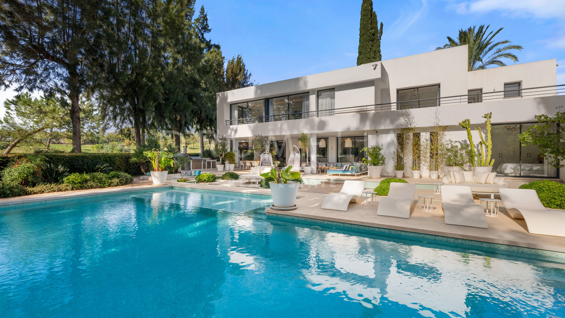 Set in a prime location and with the most luxurious amenities around, this high-end villa can be a magnificent holiday or permanent home for a family looking for a healthy modern Mediterranean lifestyle. It is surrounded with prestigious golf courses and similar luxury properties of Nueva Andalucía. This beautiful area in the Golf Valley is a golfer’s dream and therefore highly sought-after. It is situated within a very short distance to other golf courses, international schools, beaches, restaurants, organic cafes and all amenities of lively Nueva Andalucía, fabulous Puerto Banus, San Pedro and Marbella Centre.