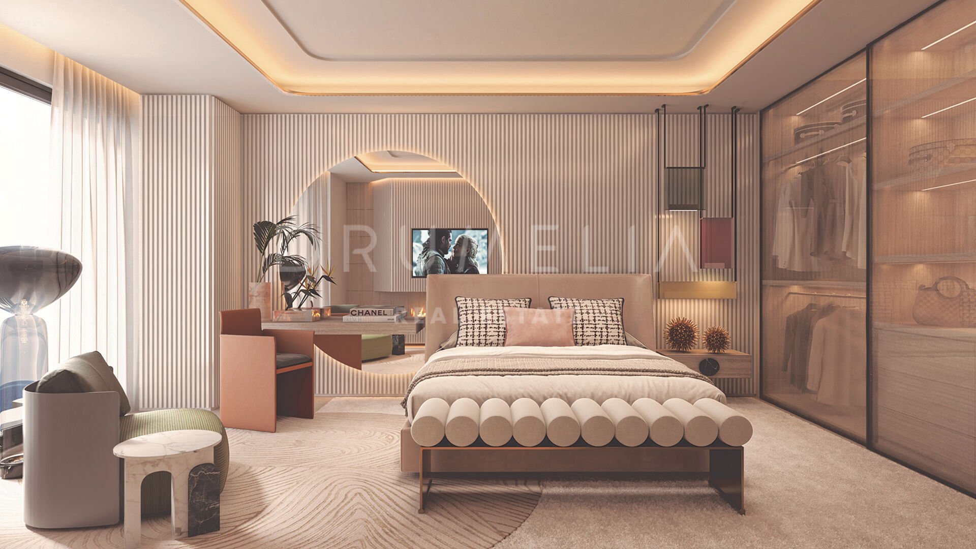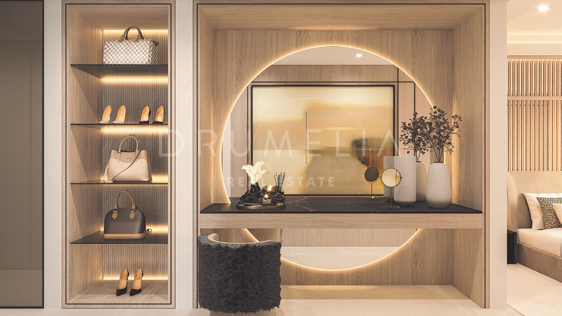 The spacious and bright 339-m² Semi-Detached Villa for sale will be created with extraordinary attention to details, the highest quality and finishes of the top brands. It features 4 bedrooms and 5 bathrooms, 1 guest toilets, a fully equipped open plan kitchen, an elegant lounge with bio-fireplace and a dining room. It admires the picture-perfect open sea views towards Africa through the floor-to-ceiling glass windows and panoramic doors that shower the property’s interior with copious amounts of sunshine and day light. Vast and beautifully staged indoor spaces lead towards an inviting terrace of 182m².