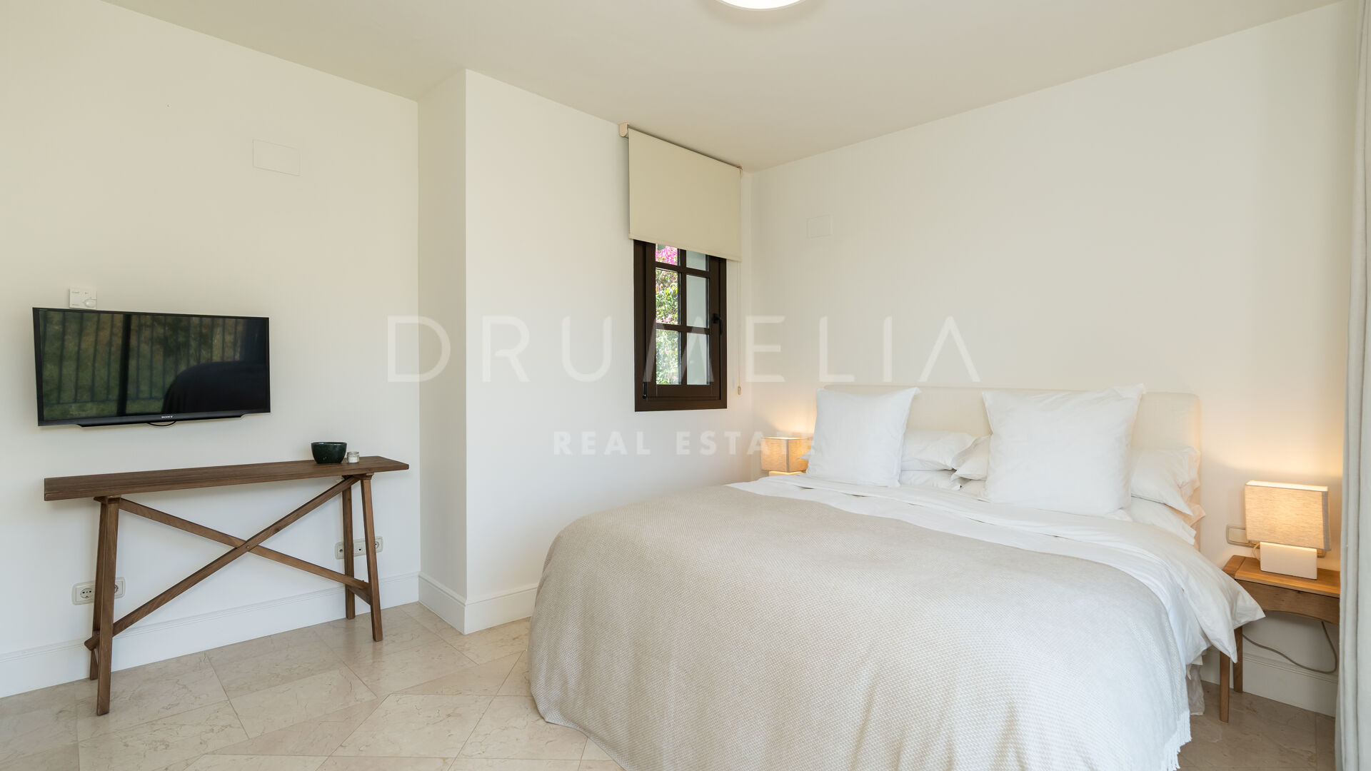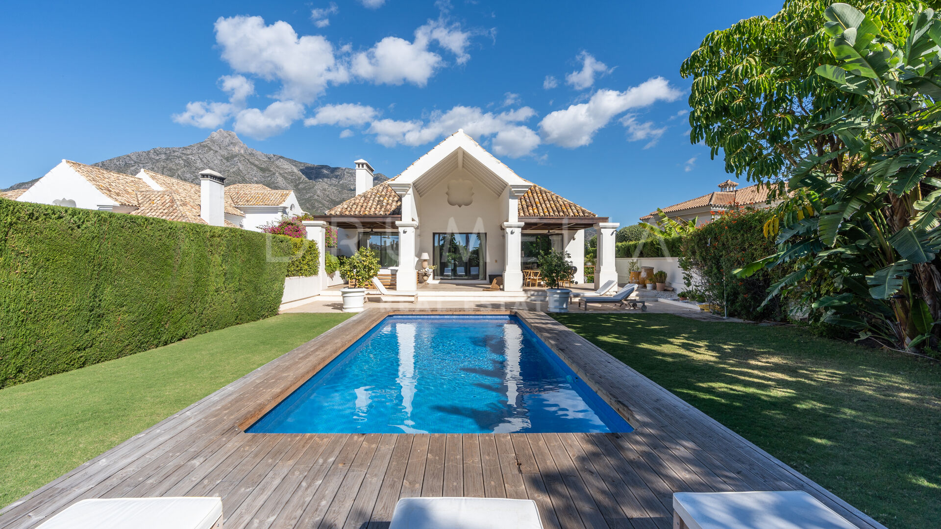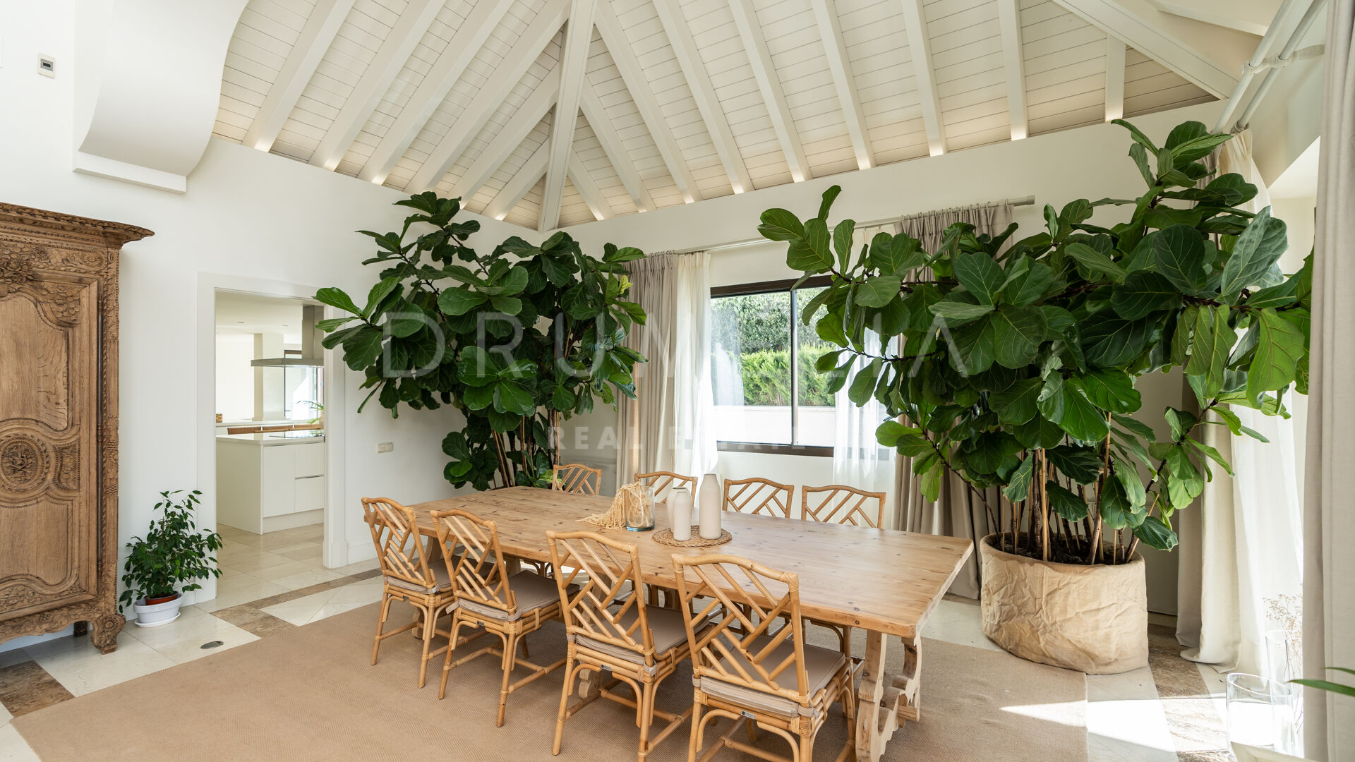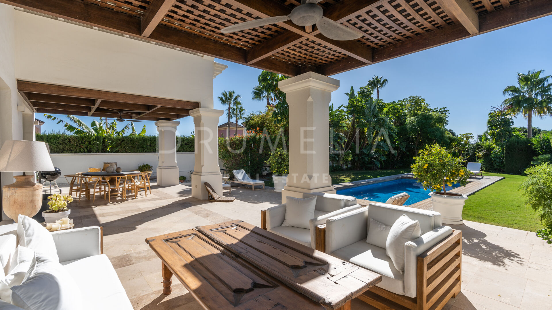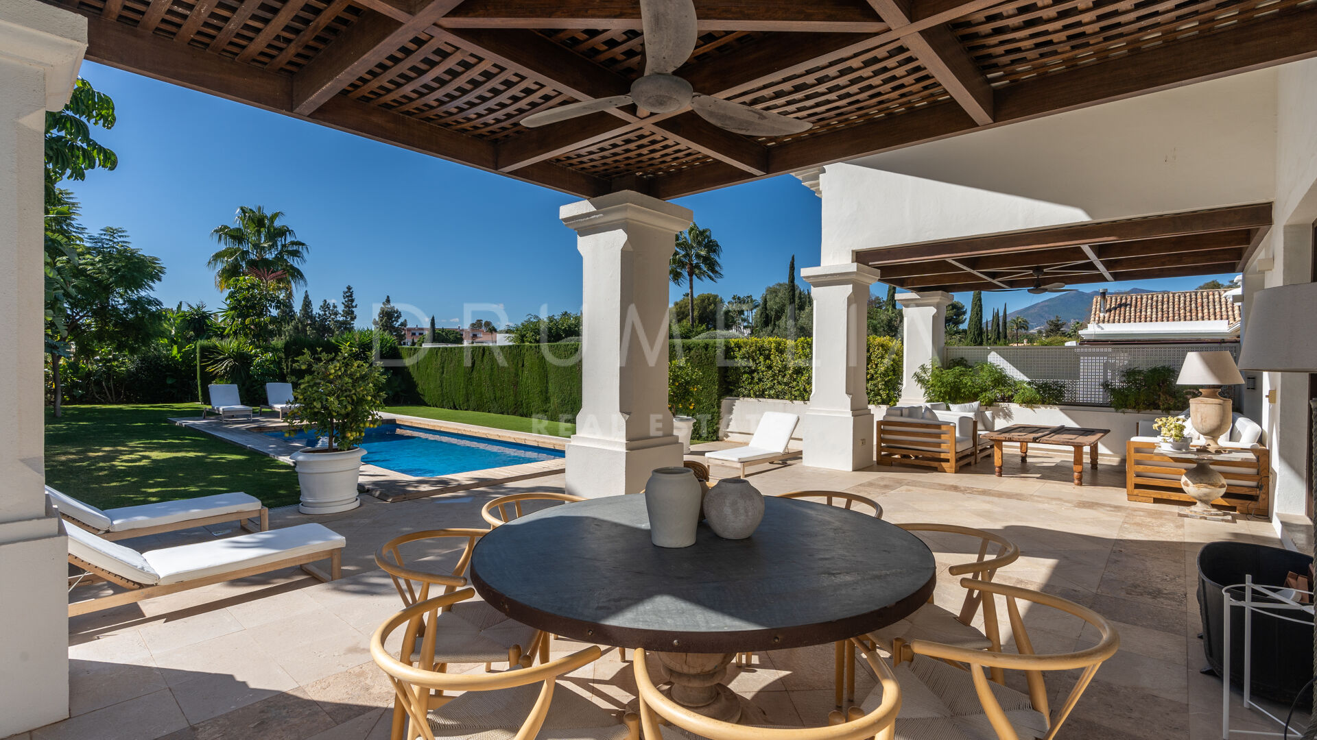 Bringing an overwhelming sense of luxury and harmony, the villa offers a blend of indoor and outdoor living, providing everything you need for the world-famous Mediterranean way of life! Stepping outside, you will find a private oasis complete with an inviting swimming pool with decked sunbathing area surrounded with the landscaped subtropical garden and green lawns. The sunny and covered terraces with charming wooden ceiling offer perfect setting for outdoor relaxation and entertaining, enjoying the climate which is considered the best in continental Europe. This spectacular villa is perfect for those seeking a luxurious Mediterranean lifestyle in a peaceful and quiet prime location just minutes from all amenities of Marbella’s Golden Mile.