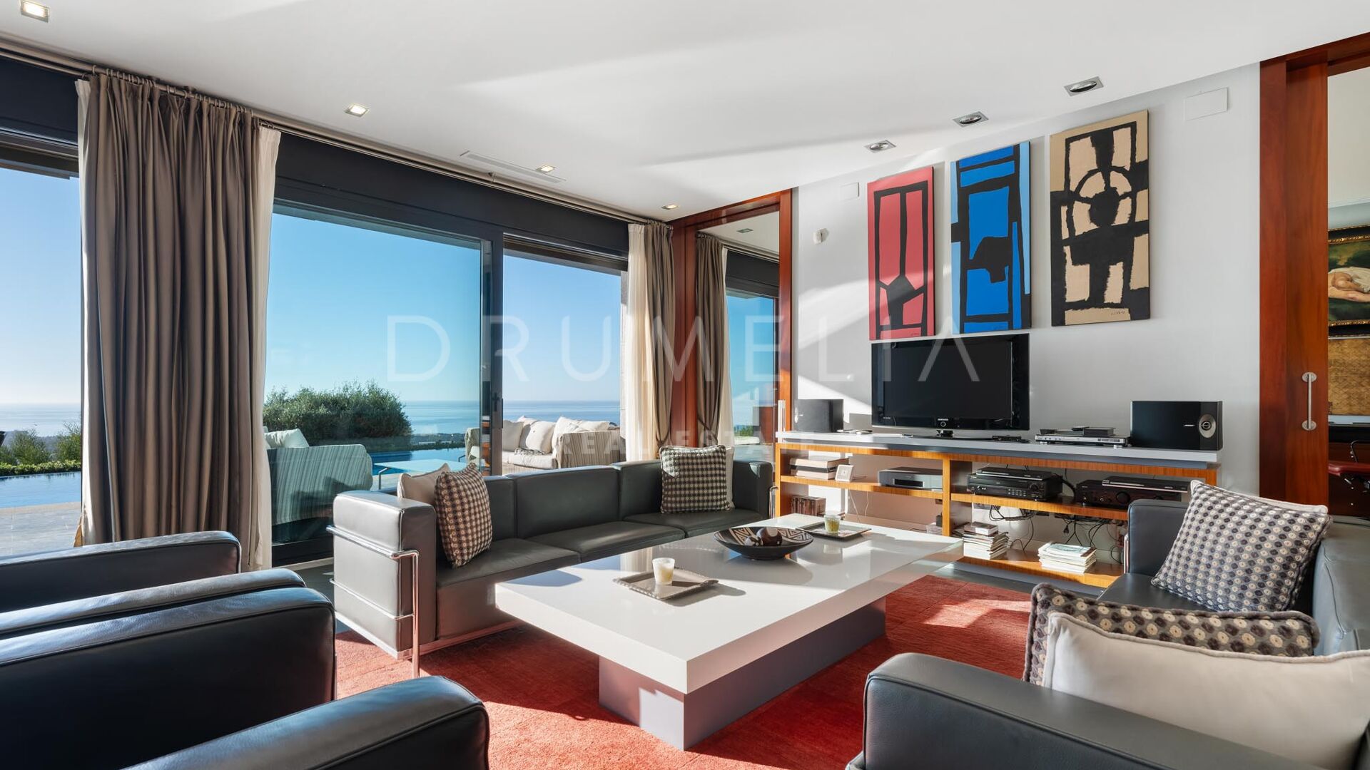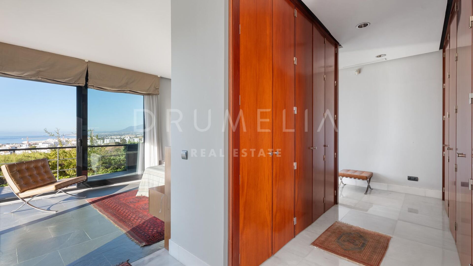 This elegant villa is located in the elevated area of Los Altos de los Monteros, Marbella East,