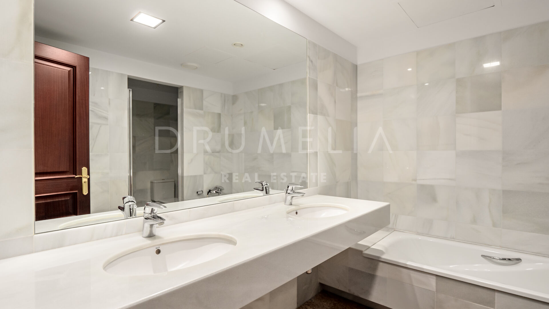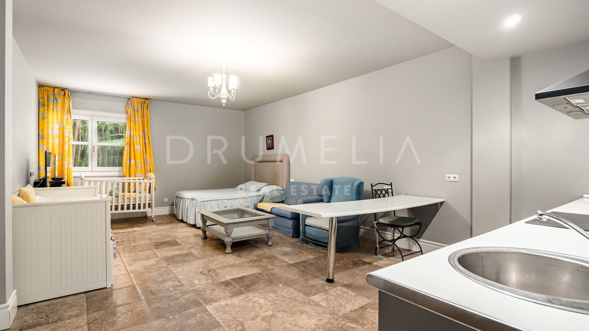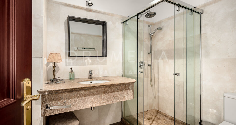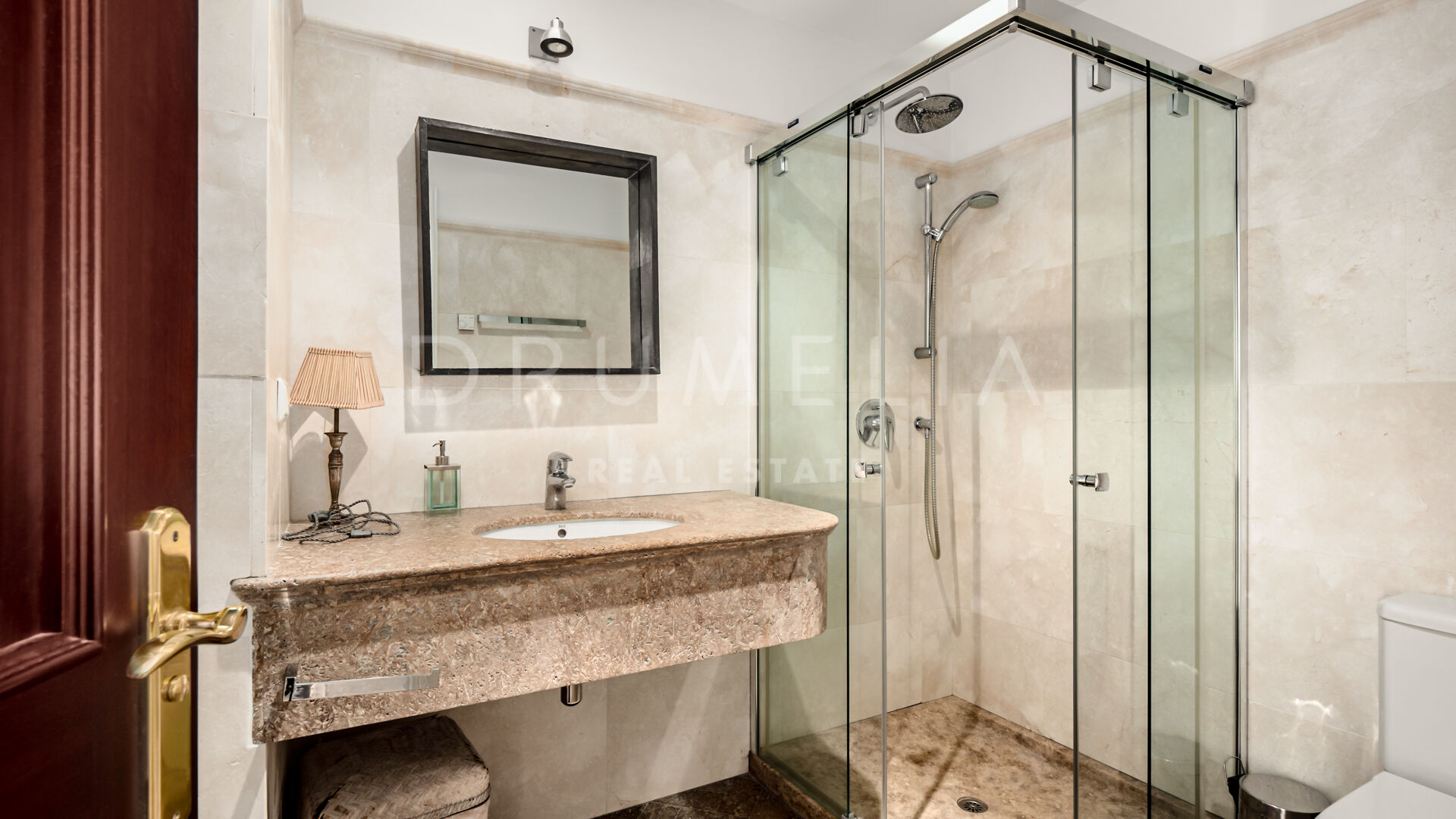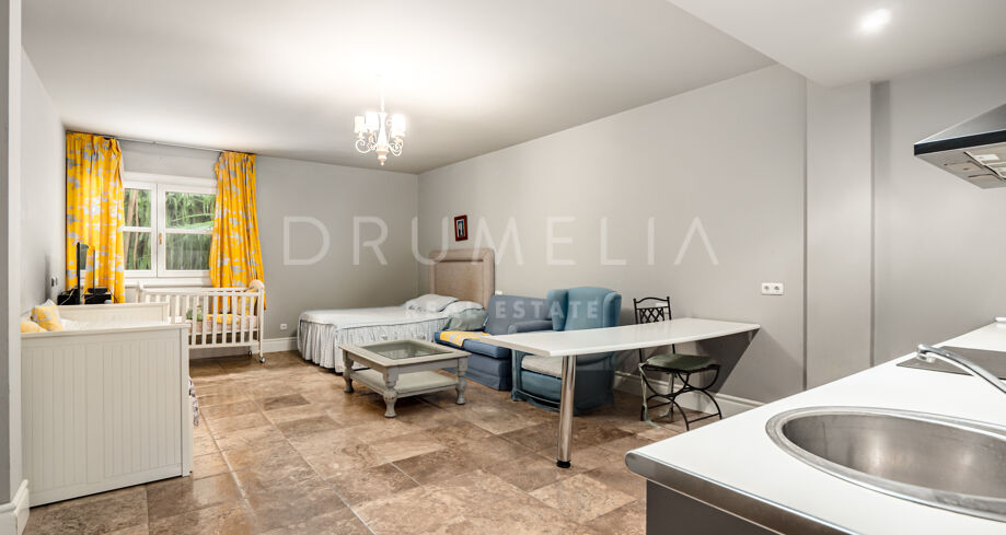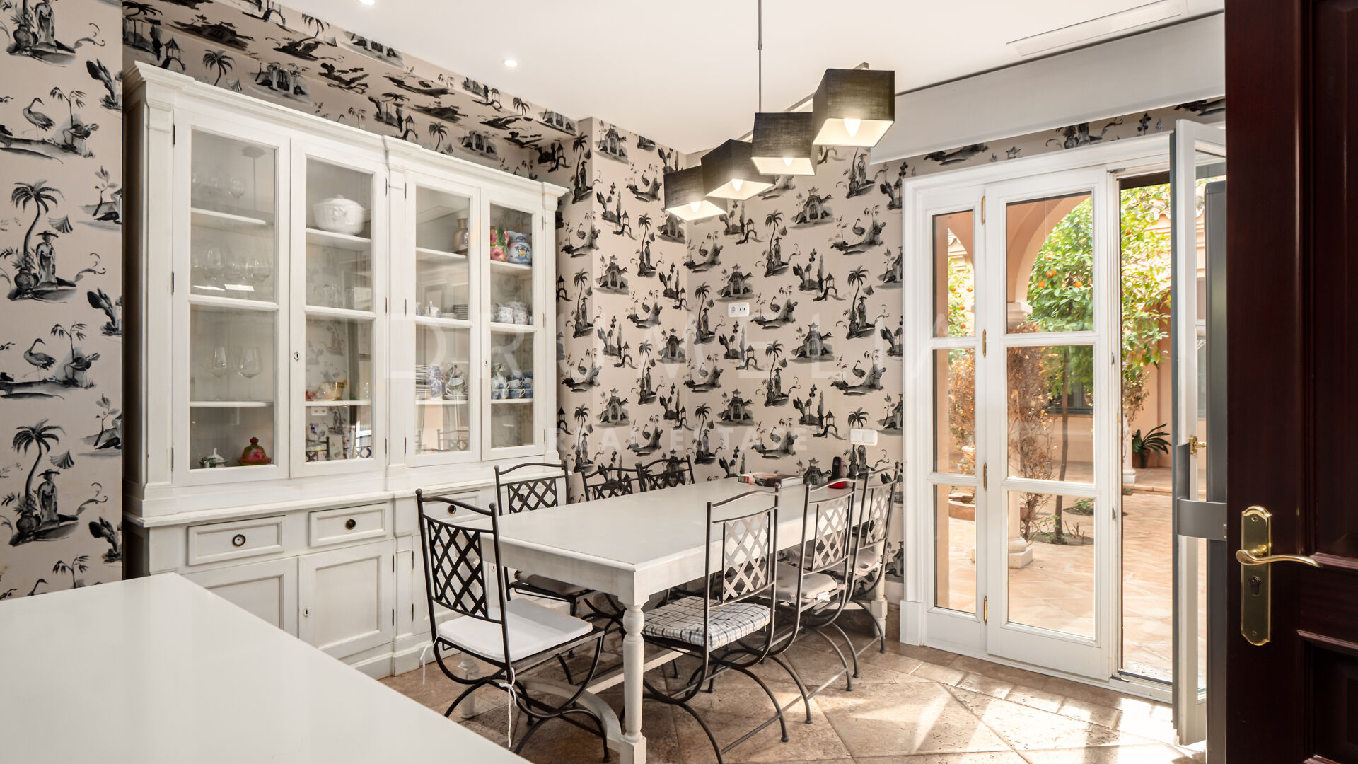 The spectacular mansion features an entrance hall, a timelessly elegant living room with a fireplace and a separate dining room, a fully fitted modern-style, black and white kitchen with a breakfast area, a pantry and laundry area, an office/library with another classic fireplace, a family room, 8 serene bedrooms (6 with en-suite bathrooms), 8 luxurious bathrooms and 2 guest toilets. The living areas of the house lead to the private balconies and wonderful terraces of 166 m² where you have enough space to relax, have BBQ and dine al fresco.