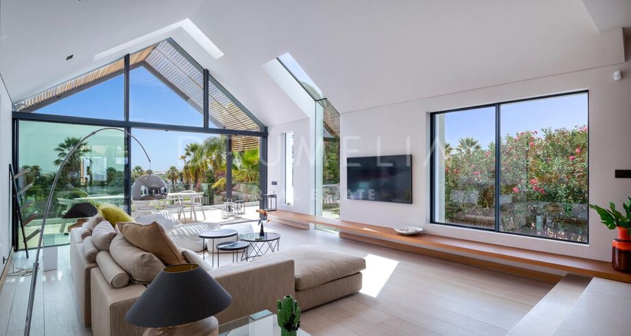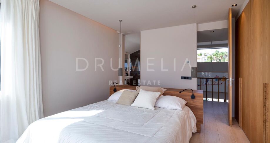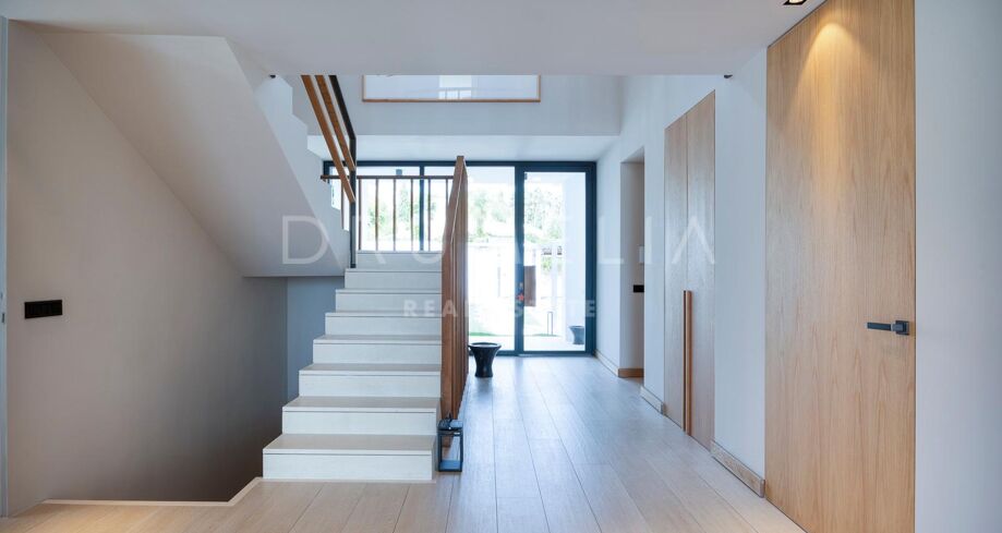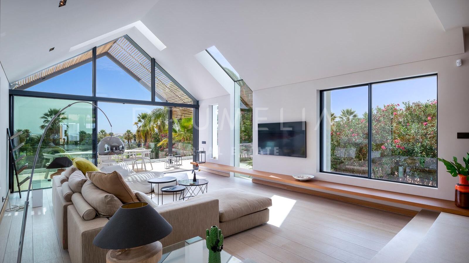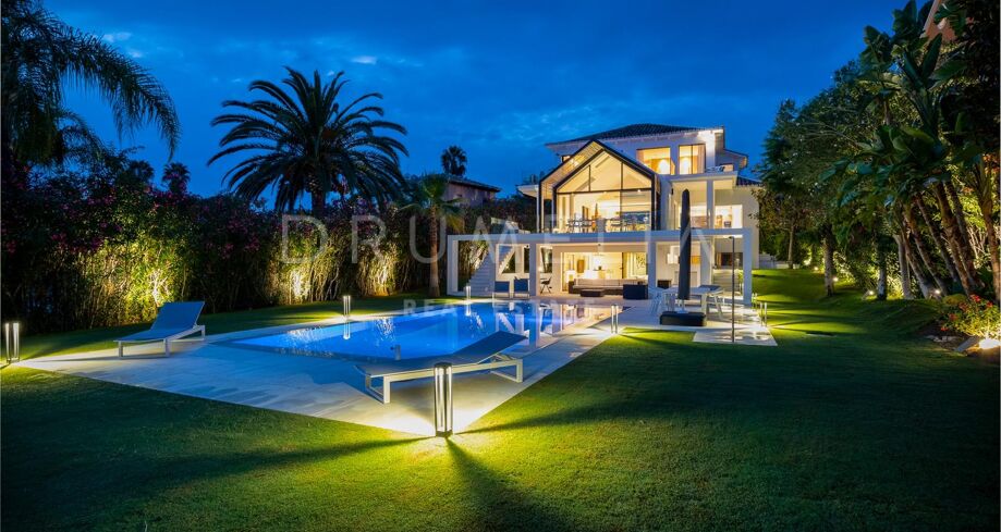 This modern luxury villa for sale is located in the prestigious Los Naranjos, in the heart of the famous Golf Valley of Nueva Andalucía, one of the most attractive and popular areas of Marbella, close to all amenities and a very short drive to glorious Puerto Banus.