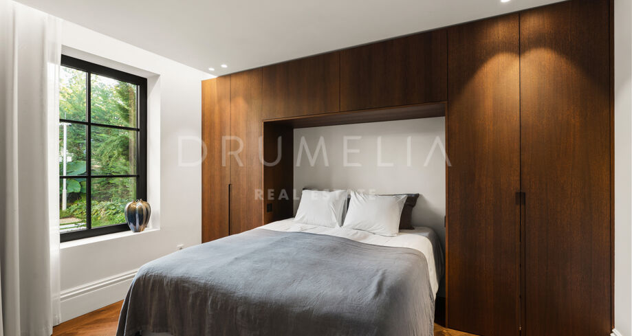 The property sits on a flat, west-facing plot of 1,072 m² and offers 582 m² built. Recently renovated, it combines contemporary design with a functional family layout.