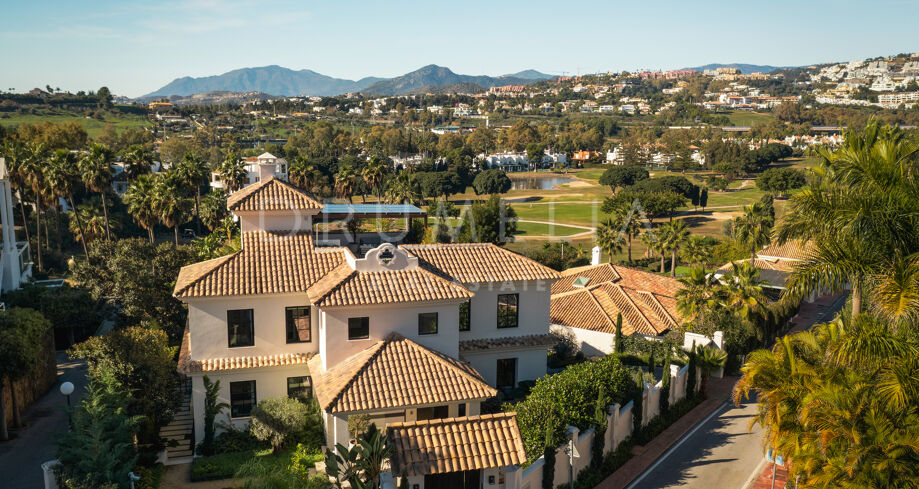Situated in Los Naranjos, Nueva Andalucía, Marbella, this villa is set within a gated community close to golf courses and key amenities.