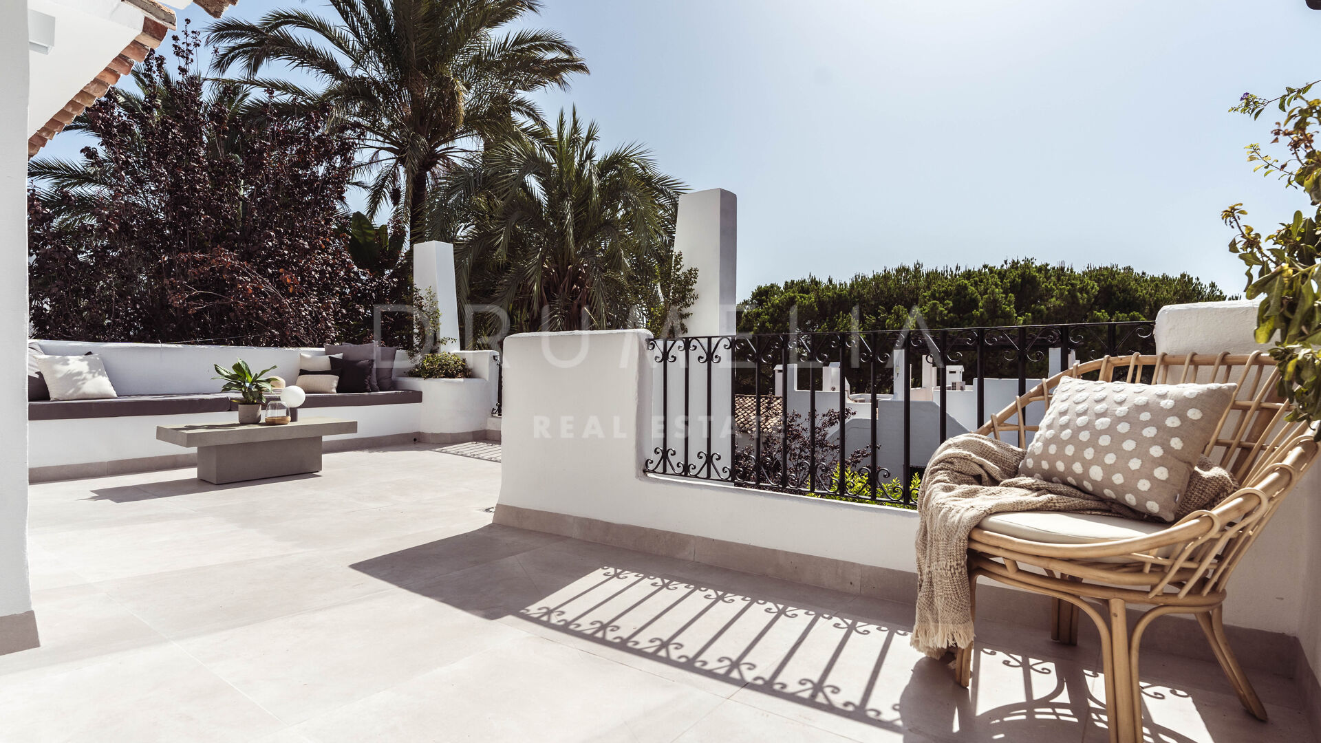 Located in the exclusive gated community of Sierra Club in Nueva Andalucía, this 130 m² penthouse with a 95 m² terrace combines modern luxury with a prime Marbella address. Its design maximises light and space, offering refined interiors and generous outdoor living.