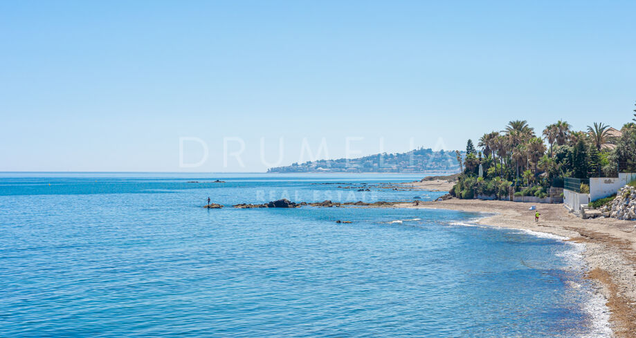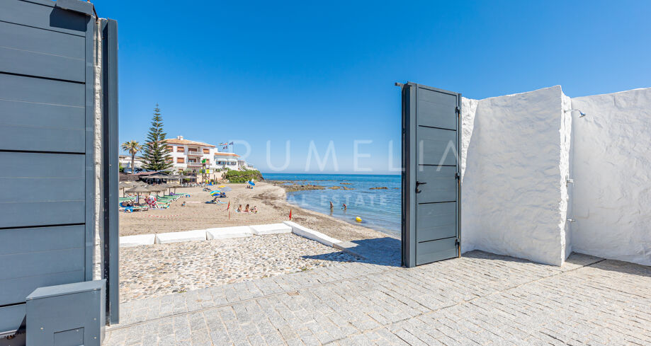 Bright sun. Swaying palms. Blue silk of the sea. Fresh breeze.Clear blue skies. White sand. White beach house. It all can be yours …This is an ideal holiday or permanent home on the Costa del Sol, blessed with scenic beauty, unique geographical position and the best climate in continental Europe. Luxury never comes cheap but worth every penny of it!