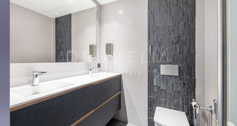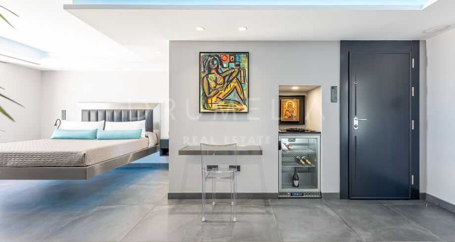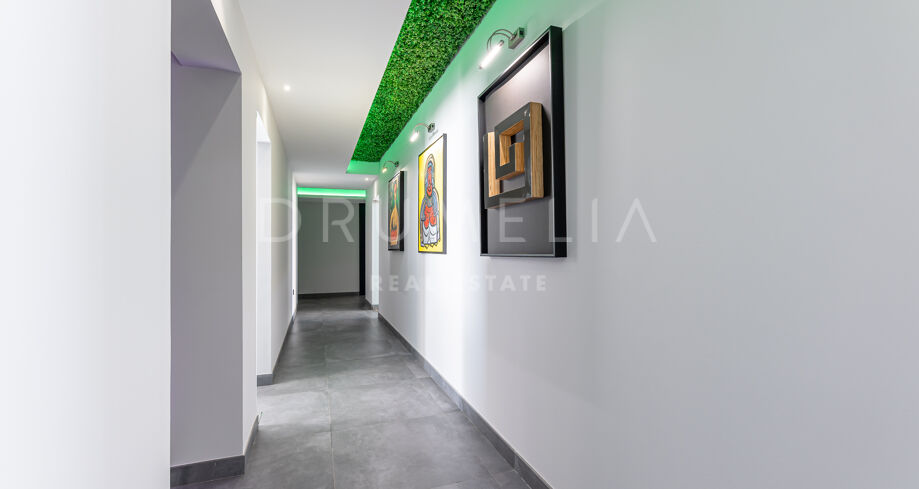 This energy-efficient and eco-friendly property comes in excellent condition, with cutting-edge technology systems throughout for maximum security and comfort (solar panels, air-conditioning, underfloor cooling and heating system, Dolby stereo surround system, sophisticated lighting, security shutters, alarm, double glazing, etc.). Think modern luxury. Think impeccable taste. Think “green” and sustainable. Presented in bold and striking modern style, the home is offered for sale with designer fixtures and appliances, high-end furniture and a valuable art collection that could potentially be excluded and the price negotiated.