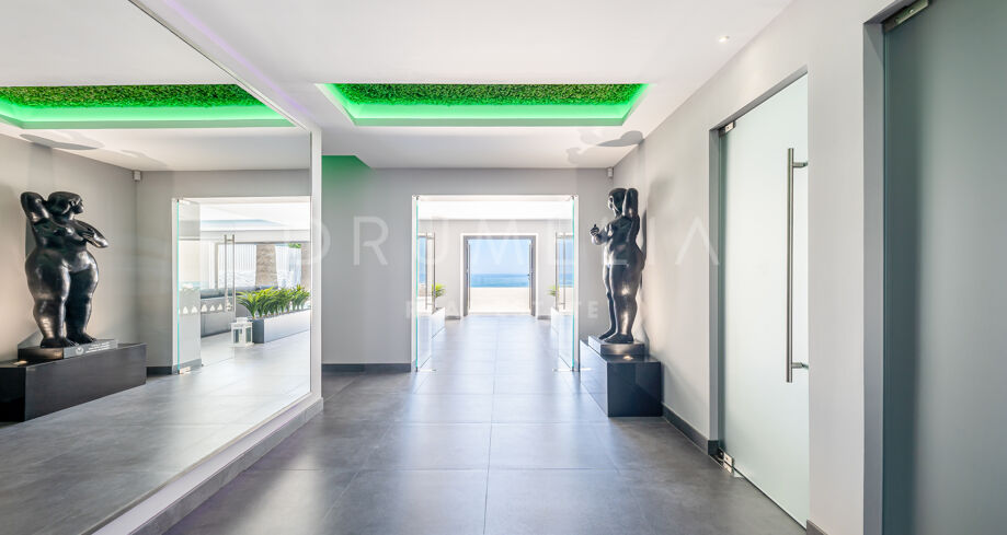 The spectacular frontline beach villa for sale on the Costa del Sol boasts breath-taking panoramic sea views from almost every corner, and direct access to the beach, which has no trappings of modernity such as resort skyscrapers and busy urban holiday hotels. Welcome to the world where privacy, discretion and serenity come true!