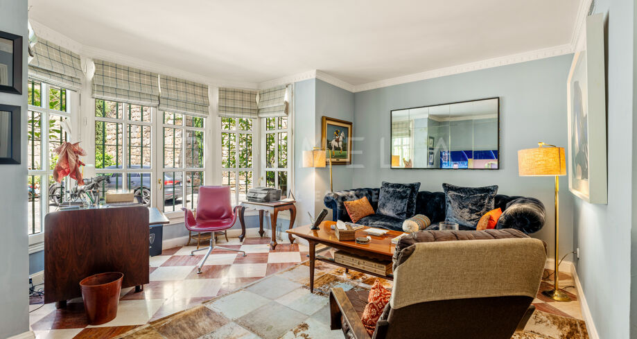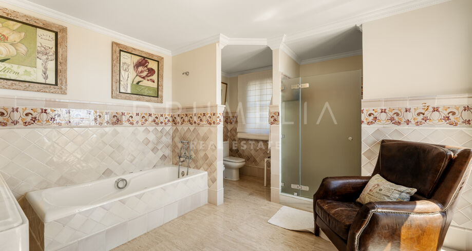 This charming residence is set within the exclusive Marbella Club Golf Resort in Benahavís, offering a peaceful retreat surrounded by nature and scenic views. The home welcomes you with warm, light-filled interiors and a layout that invites both relaxation and functionality. Spacious living areas flow seamlessly from one to the next, with large windows framing lush greenery and open skies. The kitchen is generous in scale and filled with natural light, with direct access to outdoor terraces that stretch toward the rolling hills.