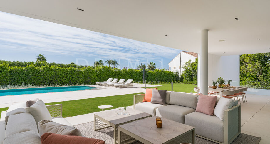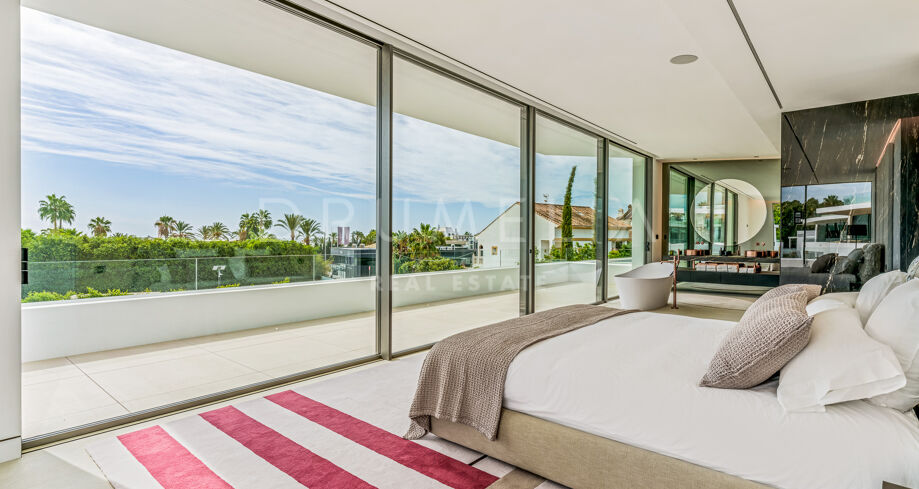 If you are looking for a new magnificent modern villa on the private plot with the sea views in a key location in Marbella, then this 5-bedroom house for sale on the Golden Mile, is for you. The best word to describe the legendary Golden Mile is luxury. There, you will find some of the best 5* hotels in the world, exclusive leisure facilities open from dusk till dawn, beaches and nicest seafront promenade, designer boutiques and jewellers, manicured golf-courses and famous tennis clubs, Michelin-starred establishments, trendy bars, chiringuitos and organic cafés with gourmet treats. The demand for this location is much higher than the supply. Marbella’s top address, the Golden Mile is also one of the most luxurious residential areas of the entire Mediterranean region with established and mature real estate market. Buying a house on Marbella’s Golden Mile remains an a sound property investment as growing international elite becomes ever more enamoured with its glamorous setting and luxury properties.