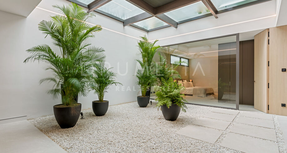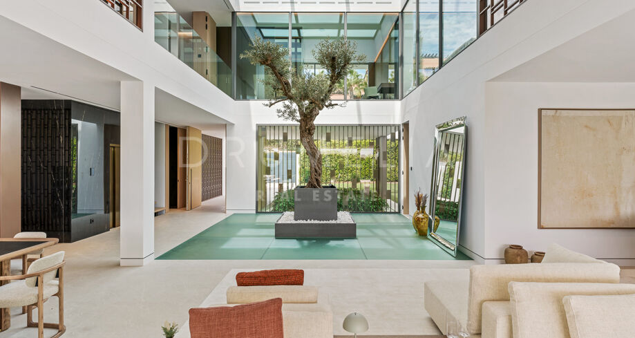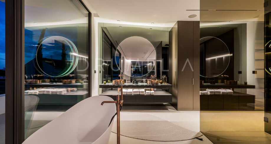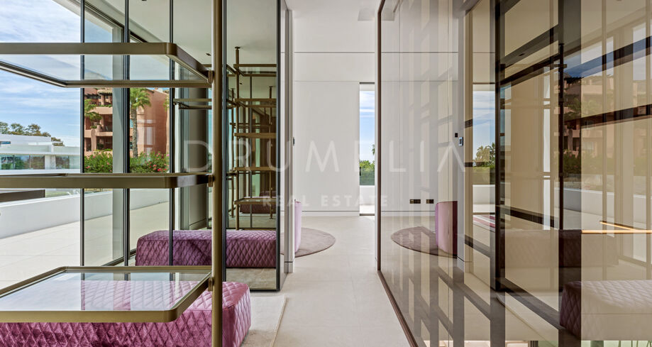 Set to be ready by autumn 2023, the high-end house has a truly privileged location, a stone’s throw away from all amenities and just 300 m from the sandy beaches and wonderful Promenade. The emblematic symbol of Marbella, La Concha Mountain is a beautiful background of the picture-perfect surroundings. Charming Marbella Old Town, Golf Valley of Nueva Andalucia and Puerto Banus with all its glitz are a few minutes’ away.