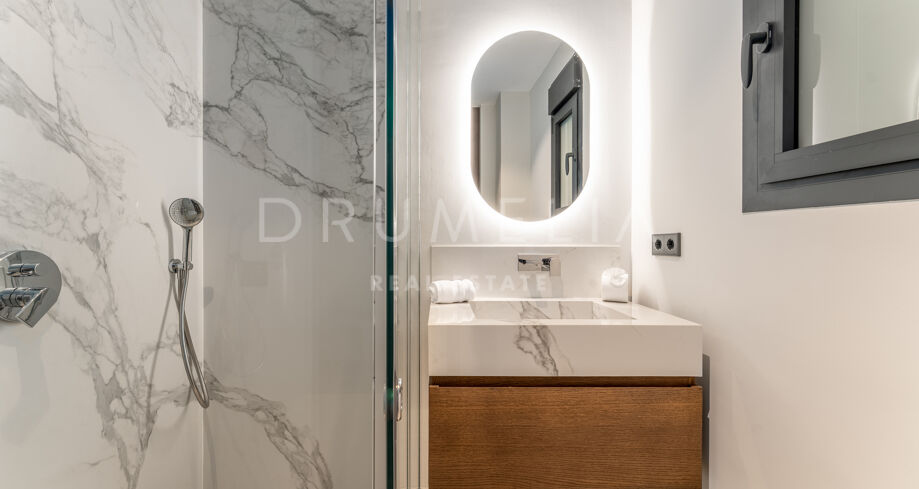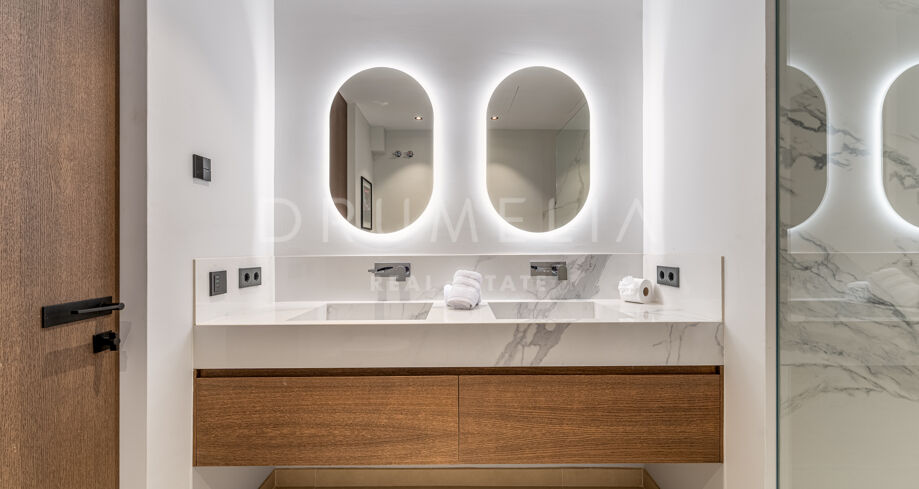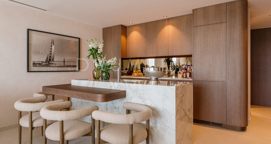 The apartment features two elegant terraces, perfect for relaxing or entertaining. Enjoy alfresco dining with a front-row seat to the glamorous Puerto Banús lifestyle. The open-plan living space is designed to maximize natural light and breathtaking views, while the modern kitchen is equipped with top-of-the-line appliances.