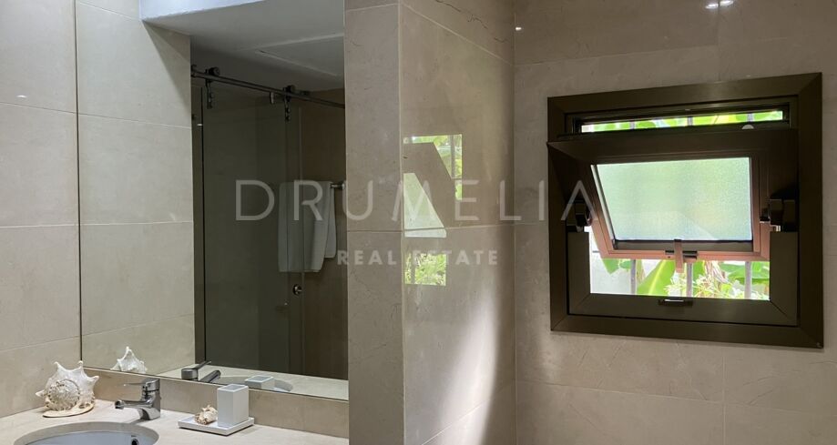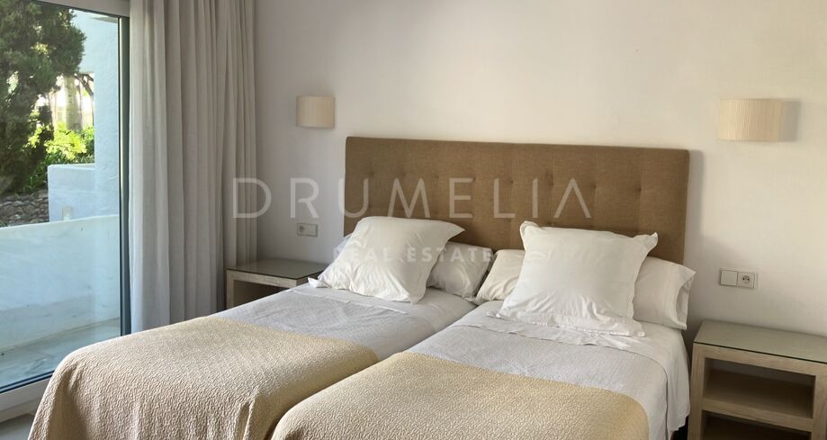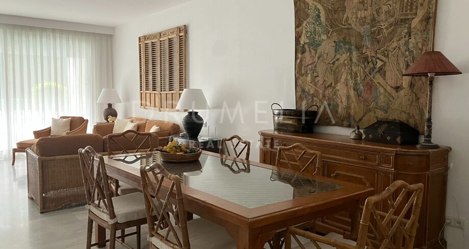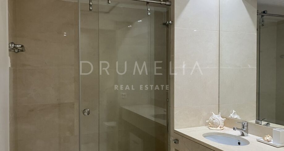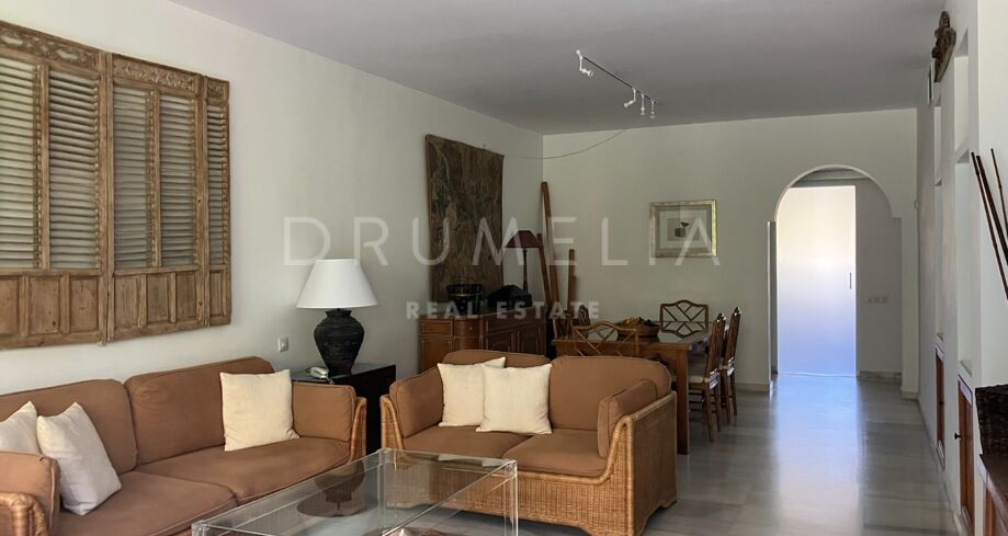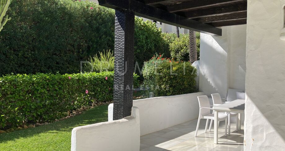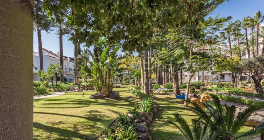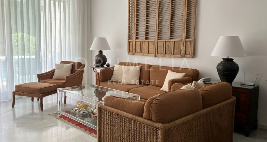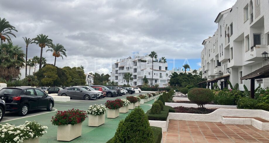 This ground-floor exterior apartment enjoys a privileged position within a well-established residential complex, just steps from the beach and Puerto Banús marina.