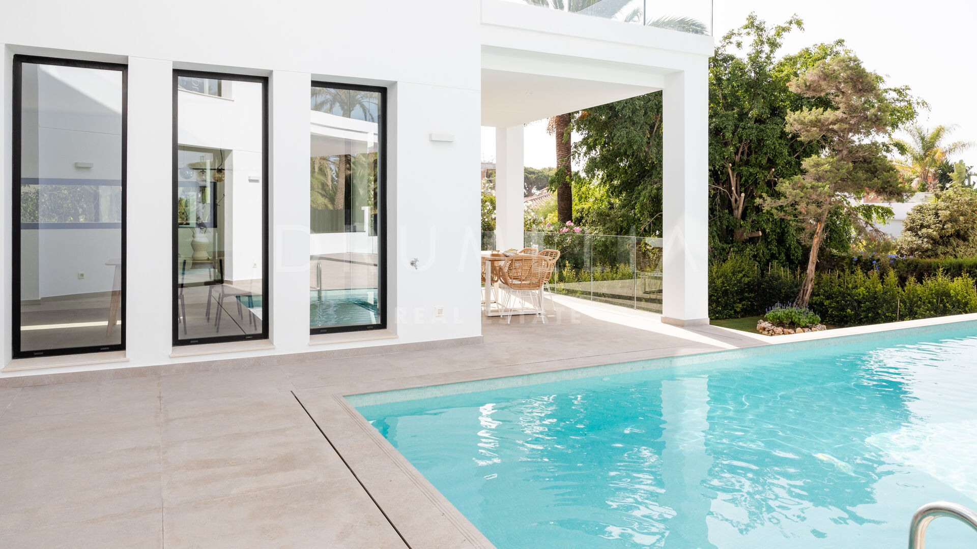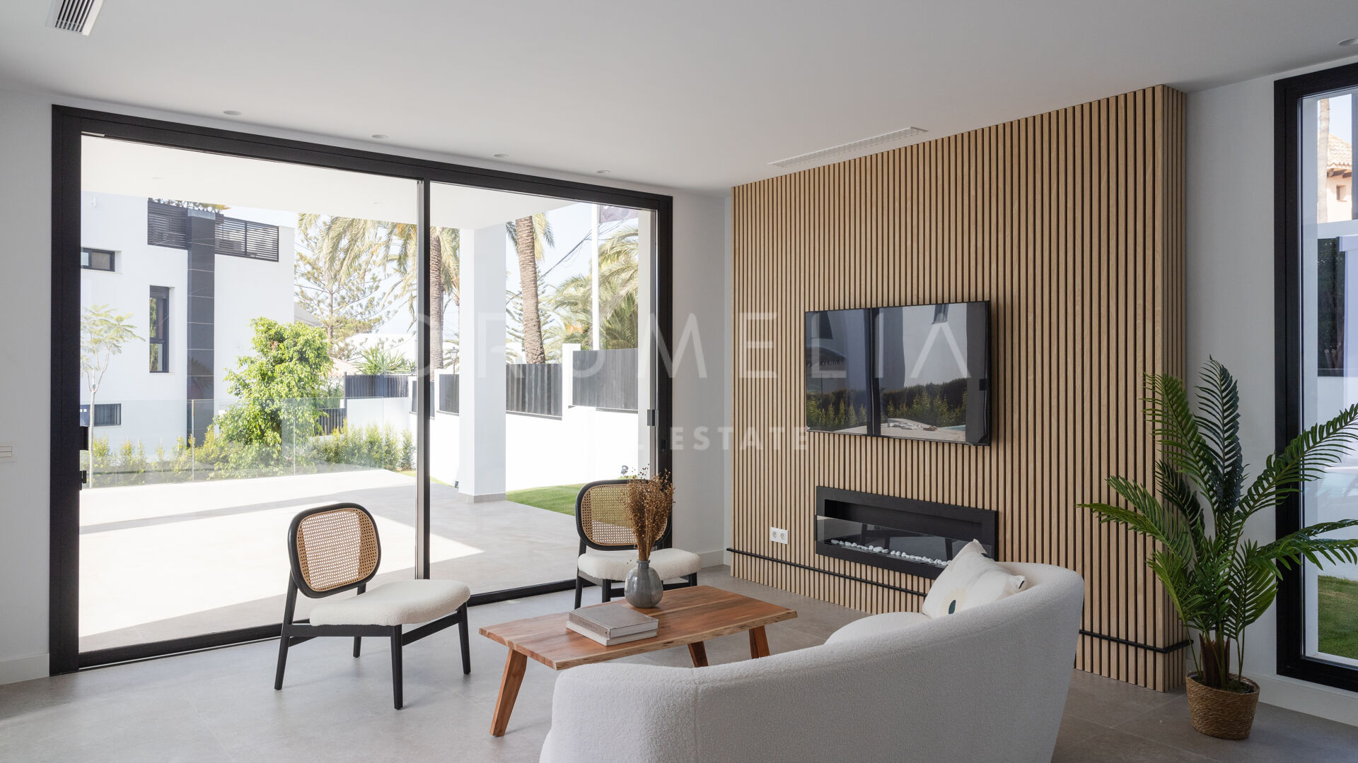 A stunning brand-new modern villa for sale in the charming beachside area of Marbesa, Marbella East. It offers privacy, elegant design and easy access to the beach and all amenities.
