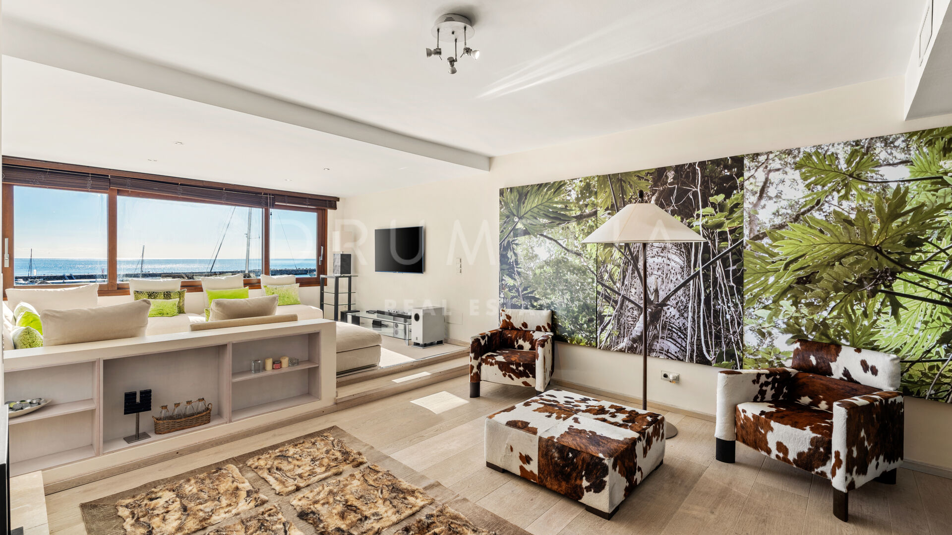 This south-facing apartment in Marina Banús offers a privileged setting in the heart of Puerto Banús, Marbella. Its position allows for clear sea views and panoramic outlooks over the iconic marina, while providing immediate access to the beach, restaurants, boutiques, and all essential services.