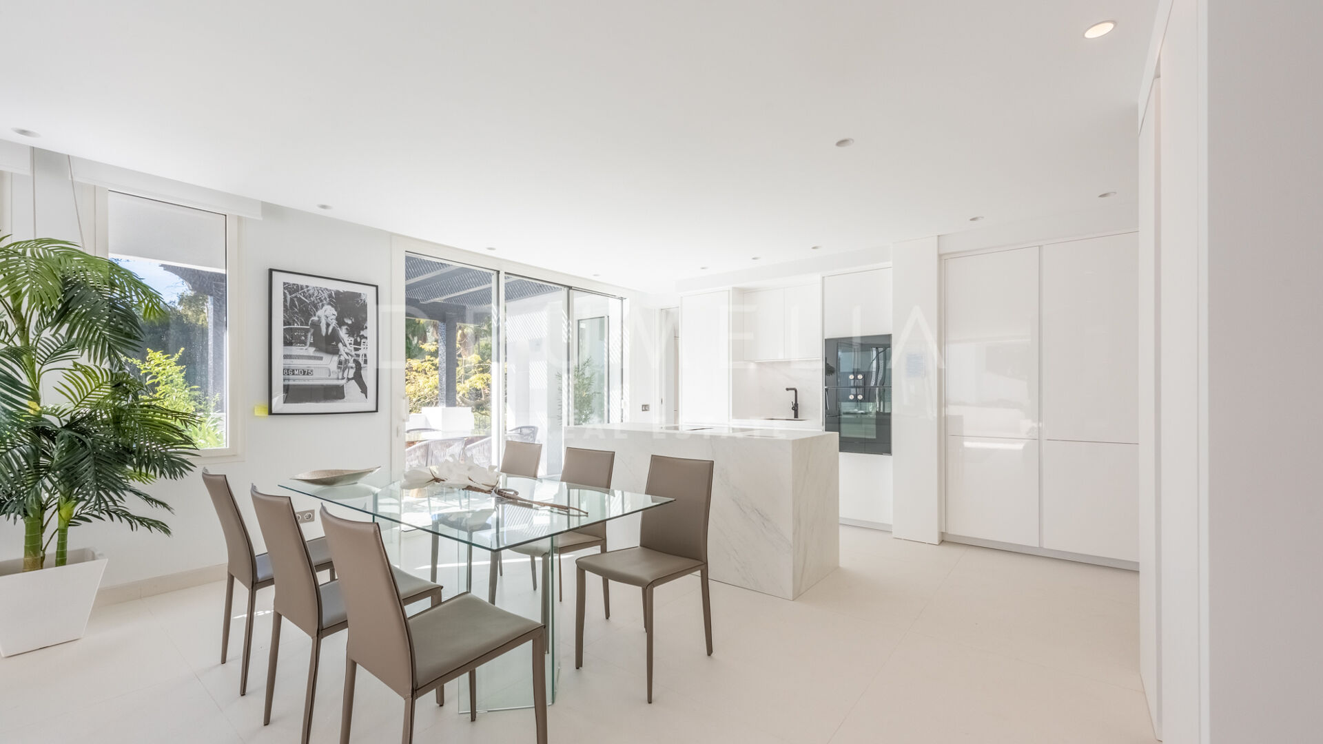 Fully renovated in 2022, it combines contemporary design, clean lines, and abundant natural light. The floor-to-ceiling windows enhance ventilation and the connection with the outdoors. The open-plan living room integrates a modern kitchen equipped with Gaggenau appliances.