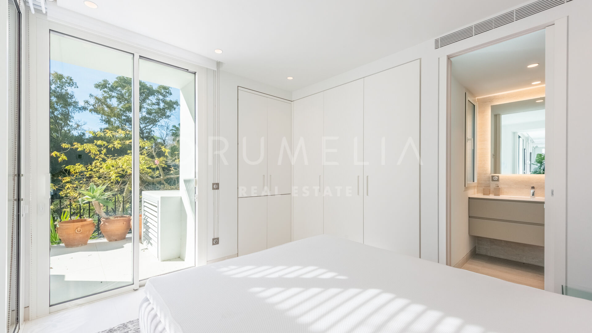 The indoor–outdoor lifestyle is enhanced by two terraces: a covered west-facing terrace, ideal for enjoying the sun and tranquillity, and a larger main terrace connected to the living room. The main bedroom with en-suite also has access to this terrace. Two additional double bedrooms, each with its own bathroom, complete the layout. The community offers concierge service and 24-hour security, landscaped tropical gardens, and a swimming pool. A garage space and an underground storage room are included.