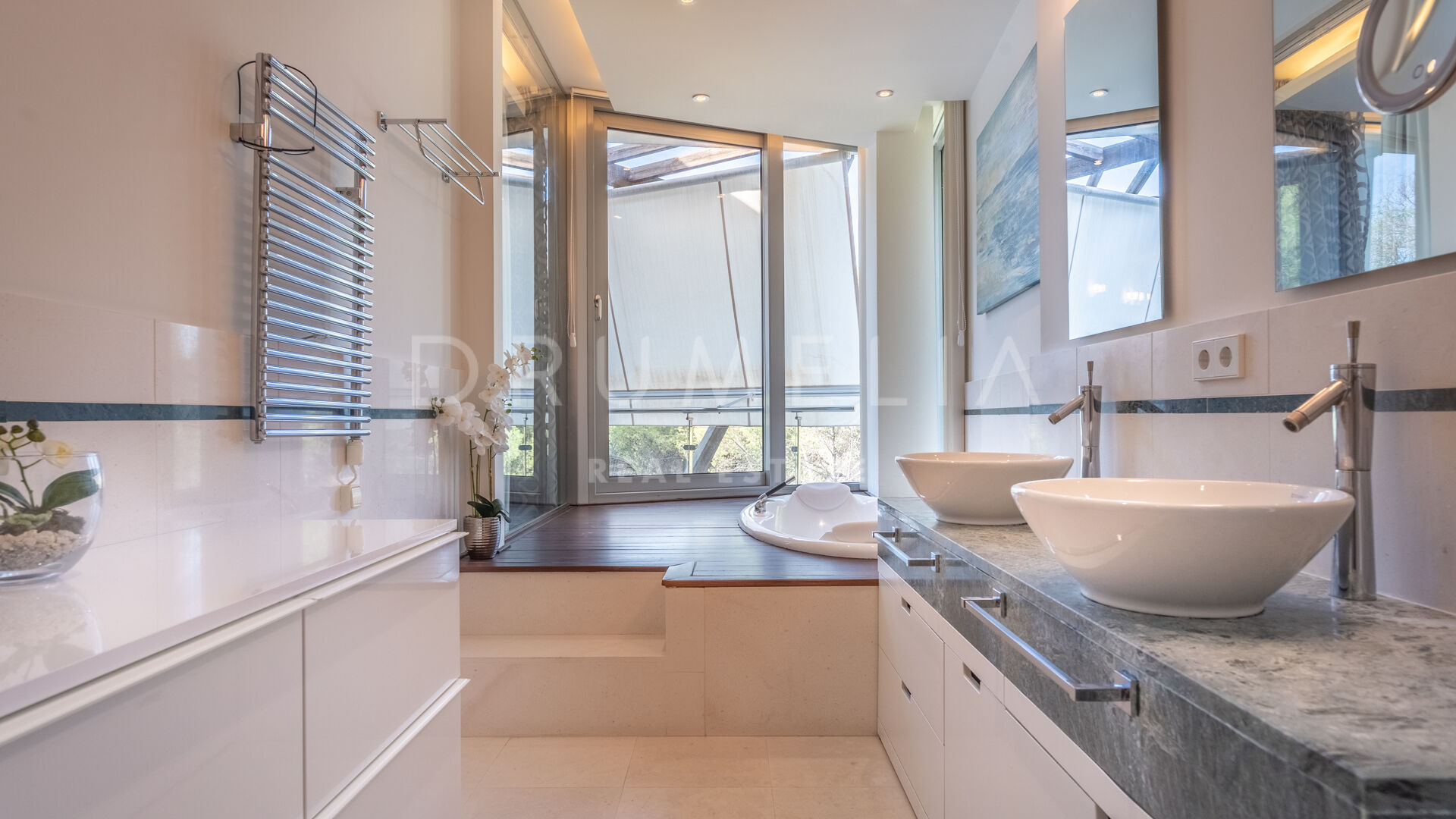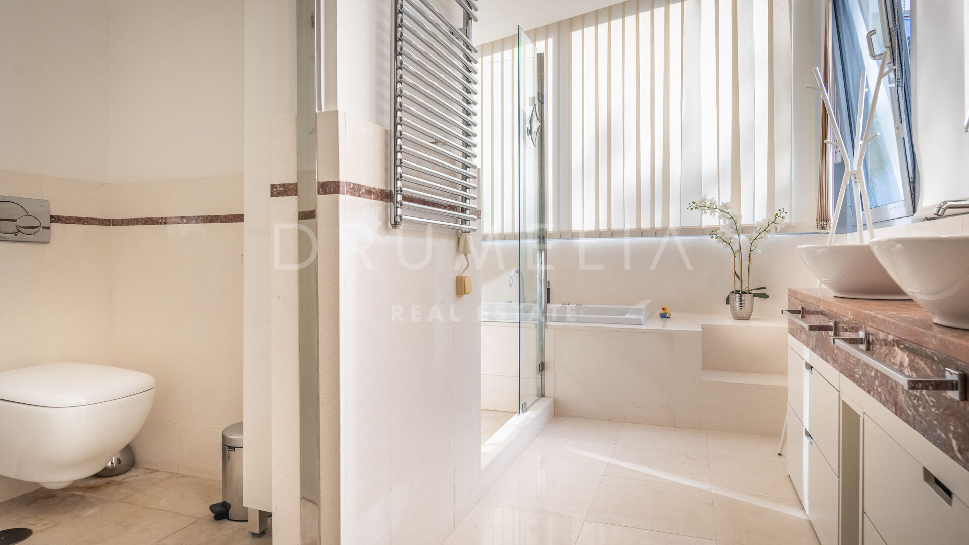 Perfectly situated adjacent to the protected pine forests and natural parkland of Nagüeles, this townhouse is just a short drive from Marbella’s vibrant center, Puerto Banús, and a variety of world-class golf courses. The development is nestled in the exclusive Sierra Blanca area, one of the most prestigious addresses in Mediterranean Spain, offering breathtaking views of the sea and mountains.
