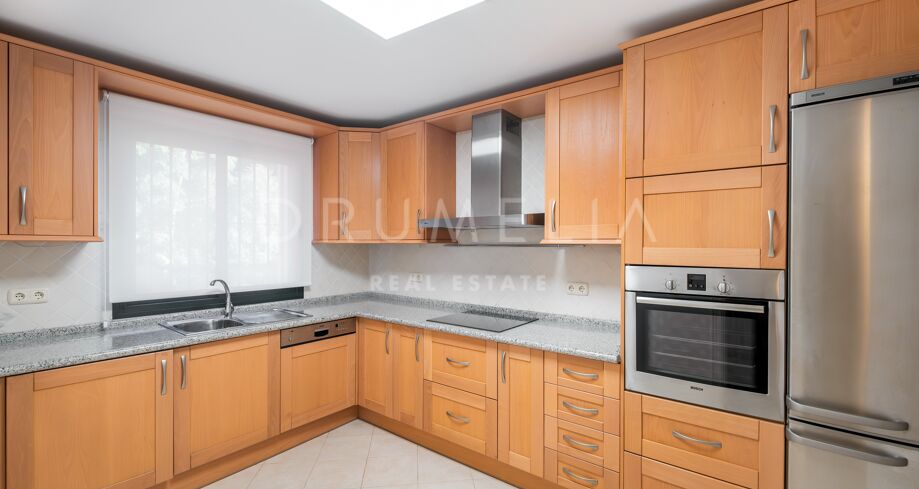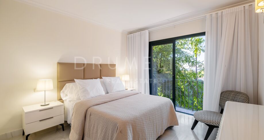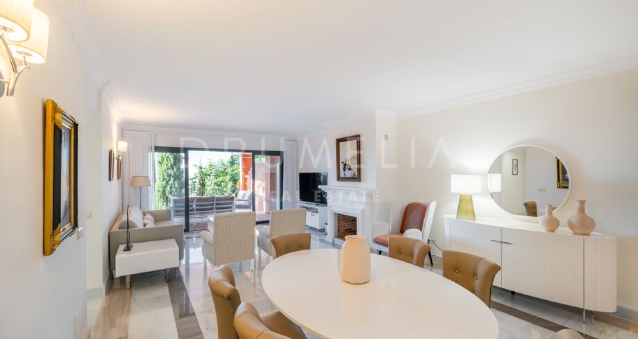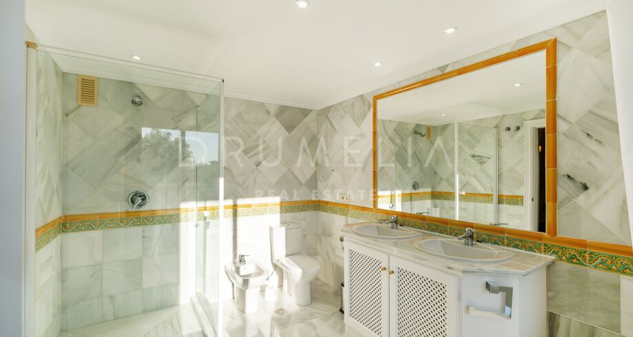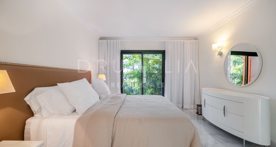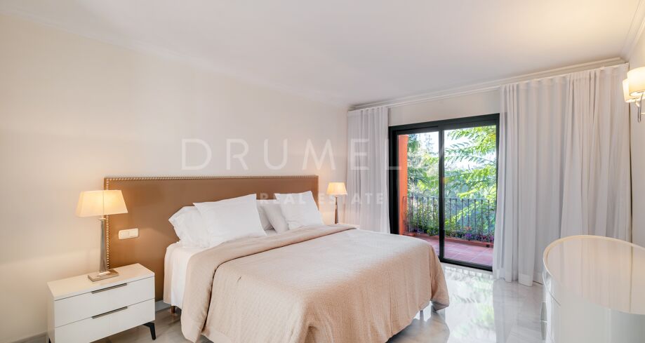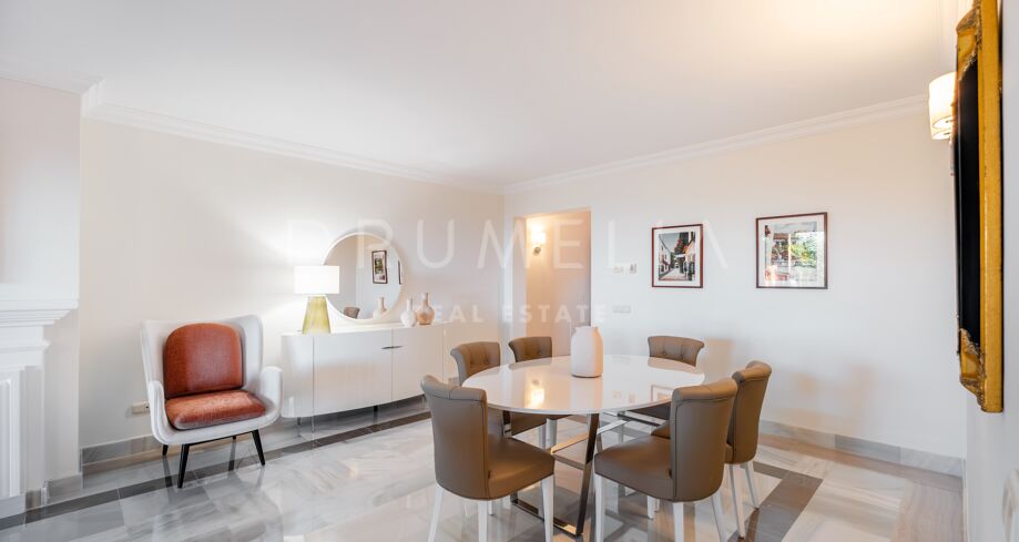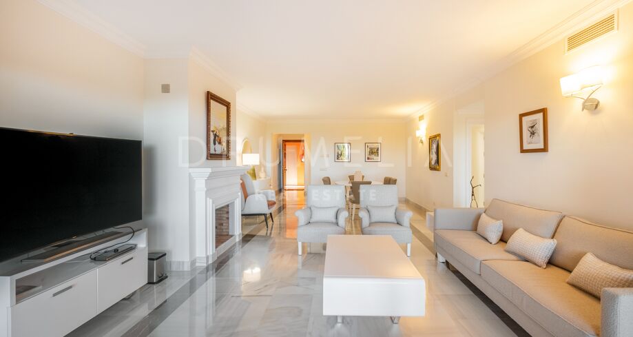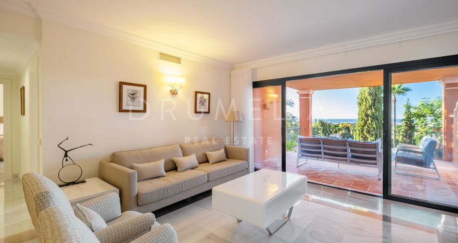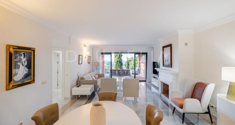 This luxury Benahavís apartment has been updated and decorated to enhance its timeless appeal. Sold fully furnished and key-ready, it offers immediate enjoyment in one of Monte Halcones’ most established residential complexes, built on gently sloping hills and within easy reach of Marbella.