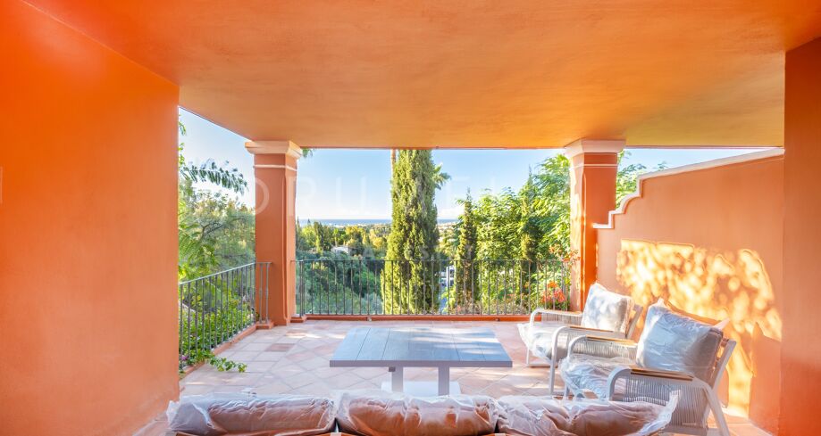 This elegant apartment in Monte Halcones, Benahavís offers beautiful Mediterranean and Marbella coastline views from a private south-west facing corner position. Located within the prestigious El Real de Monte Halcones, this key-ready residence combines space, light and timeless design in a peaceful elevated setting.